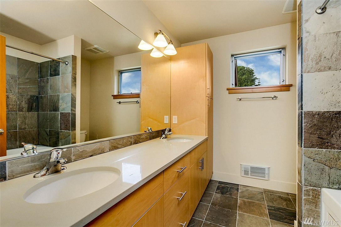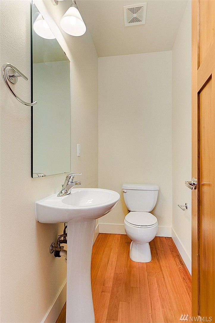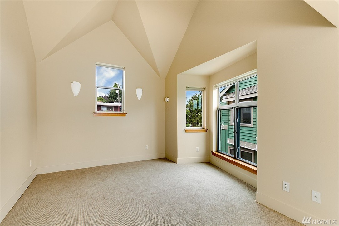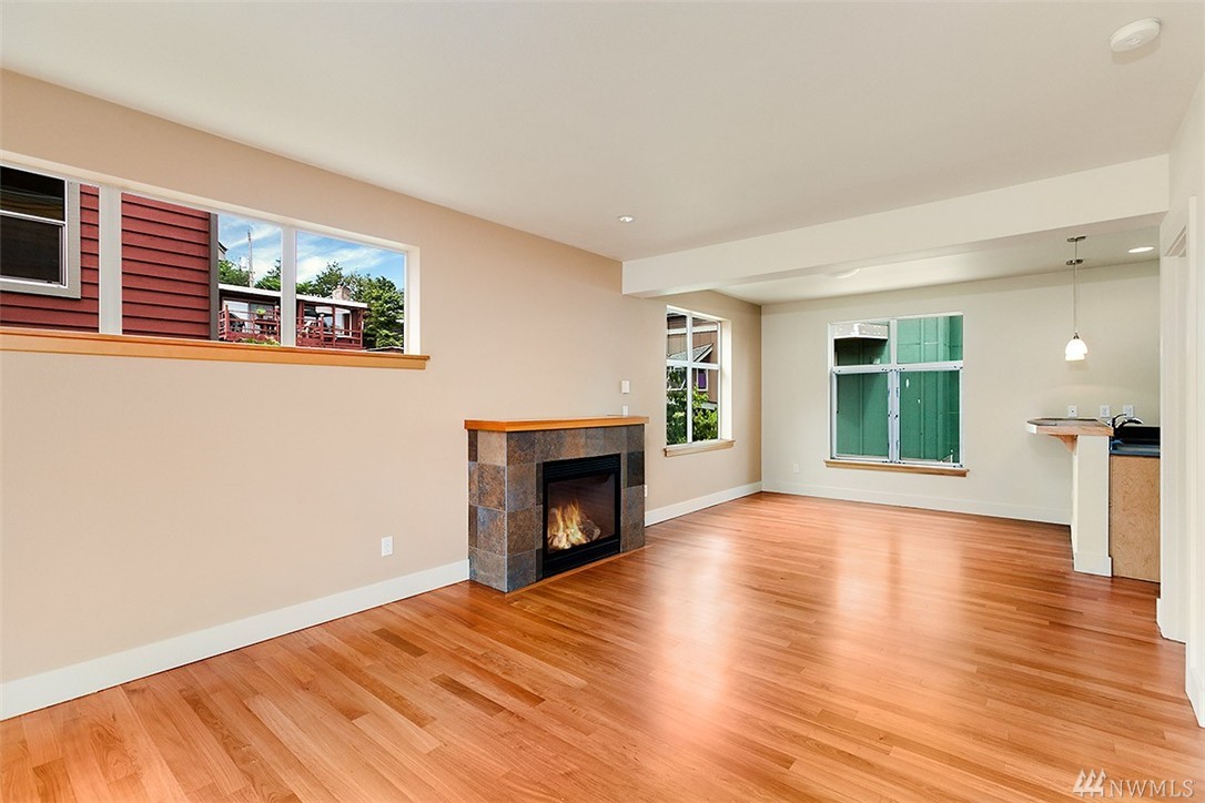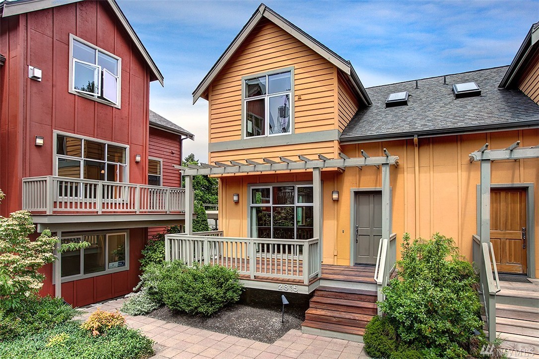 Nestled next to city greenbelt. This home features beautiful natural materials, Patagonia Cherry hardwood floors, maple cabinetry, Asian Fir doors. New Berber carpet. Brand new SS kitchen w/gas cooking. Quartz countertops. Cathedral ceilings. Skylights & tall windows bring natural light into interior spaces. Furnace rated gas fireplace heats entire main floor. Appealing Ironwood deck focuses on lush landscaped common courtyard spaces. Cedar beveled siding. Mins to Mt.Baker Sound Transit station.