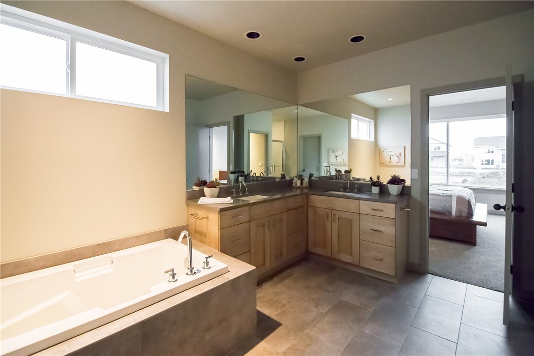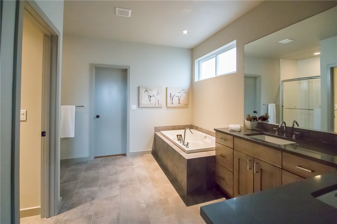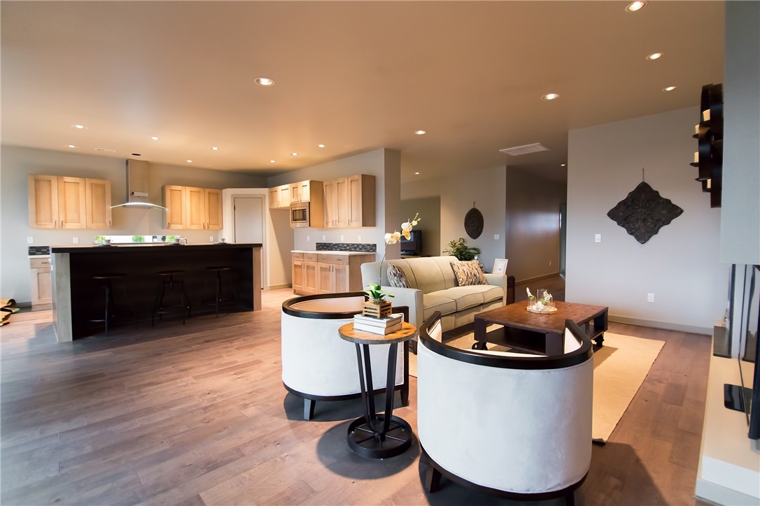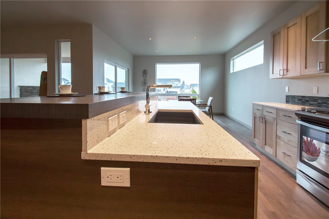 New Kestrel Point 3 bed, 2.75 bath plus flex room home. Unique contemporary design features wood floors, gas fireplace & 9’ ceilings. Kitchen w/ solid quartz counter tops, under mount sink, custom soft close cabinets, gas range & oven w/ hood, pantry & eating bar. Large master suite w/ two under mount sinks, solid quartz counters, soaking tub, tiled floor & walk-in shower & walk-in closet. Stucco exterior & covered outdoor living space w/ gas stone fireplace. Fully landscaped & vinyl back fence.