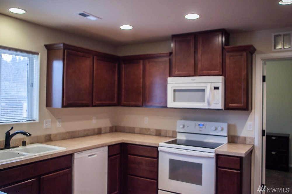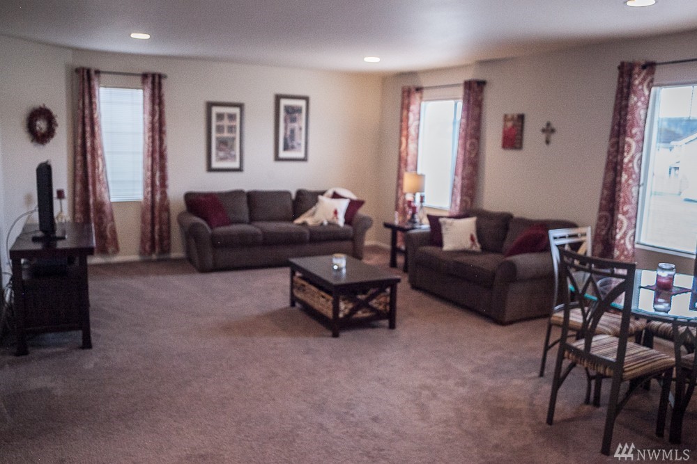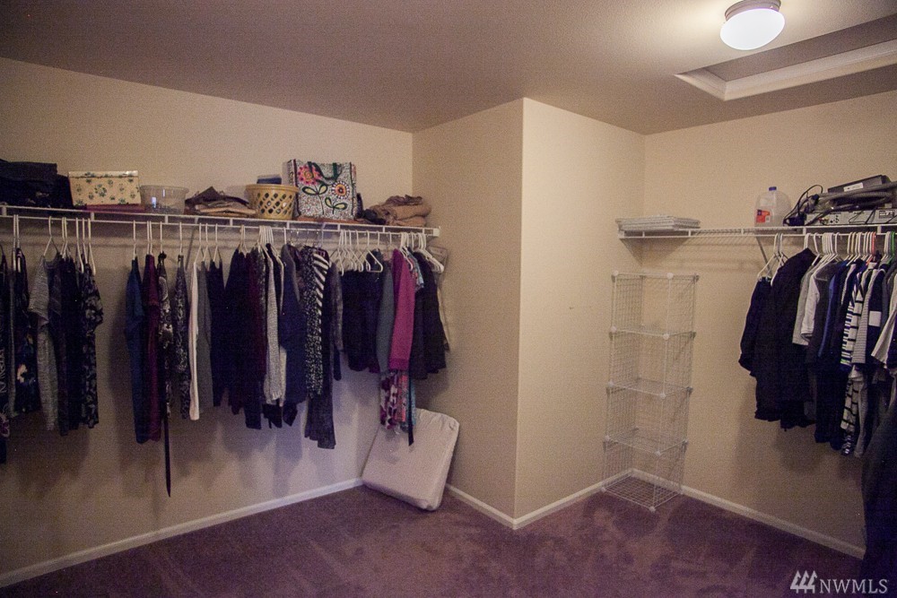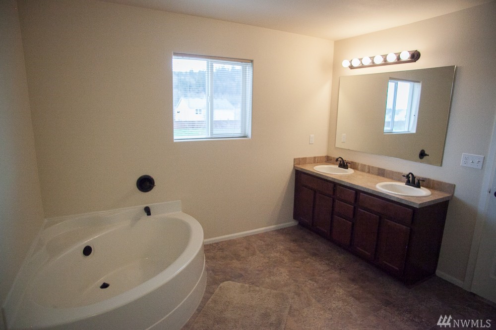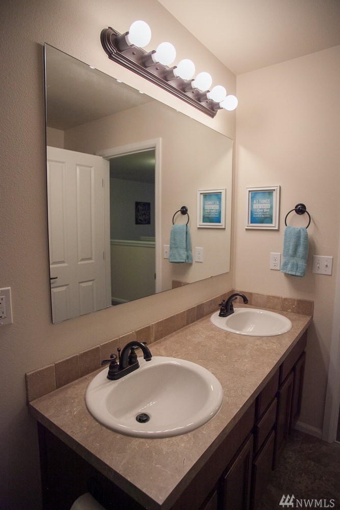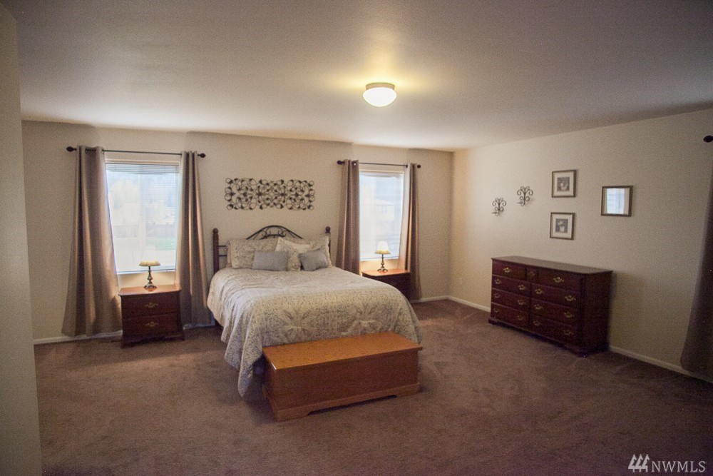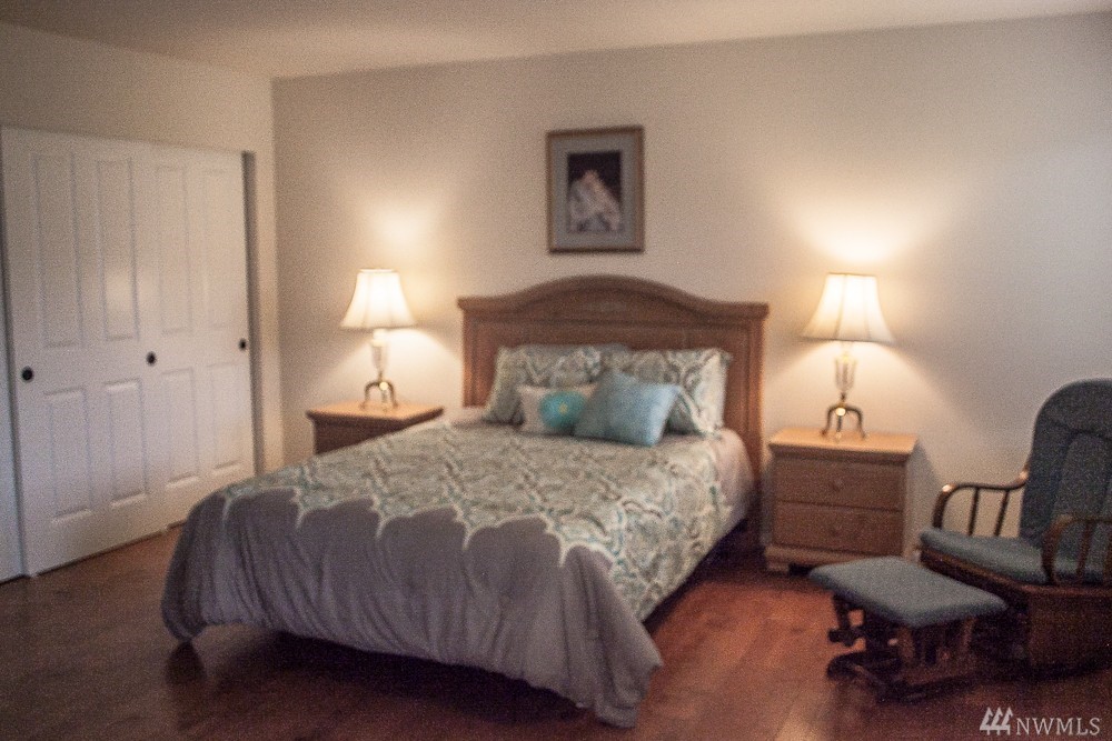 Custom built 5 bedroom 3357 sqft home. Move in Ready – 2 HOMES IN ONE. Downstairs generous master suite, French doors, 3/4 bath/ADA shower/Toilet and Hardwood flooring. Large Utility room with door to deck, stunning view of Mt. Rainier. Upstairs 2nd large master, 5 pc ensuite with soaking tub and huge walk-in closet, 3 more bedrooms, family room, full bath & utility room. Wheelchair ramp in garage. Just 10 minutes from Sounder train station & next door to High Cedars Golf.
