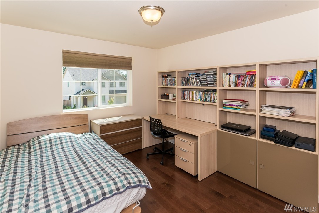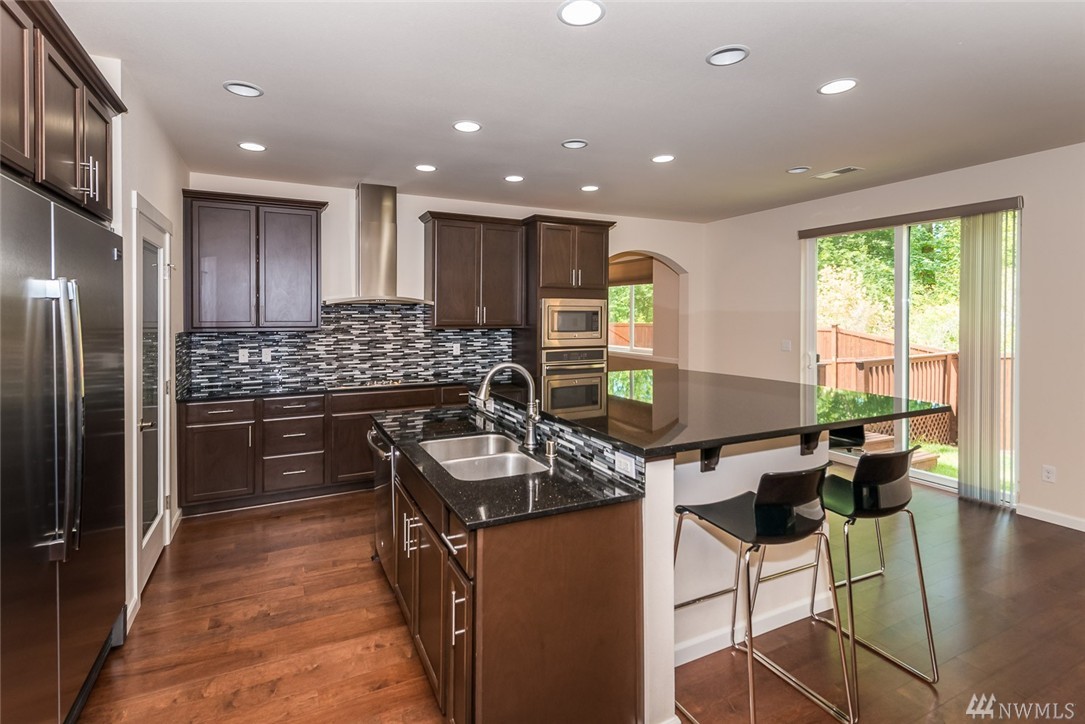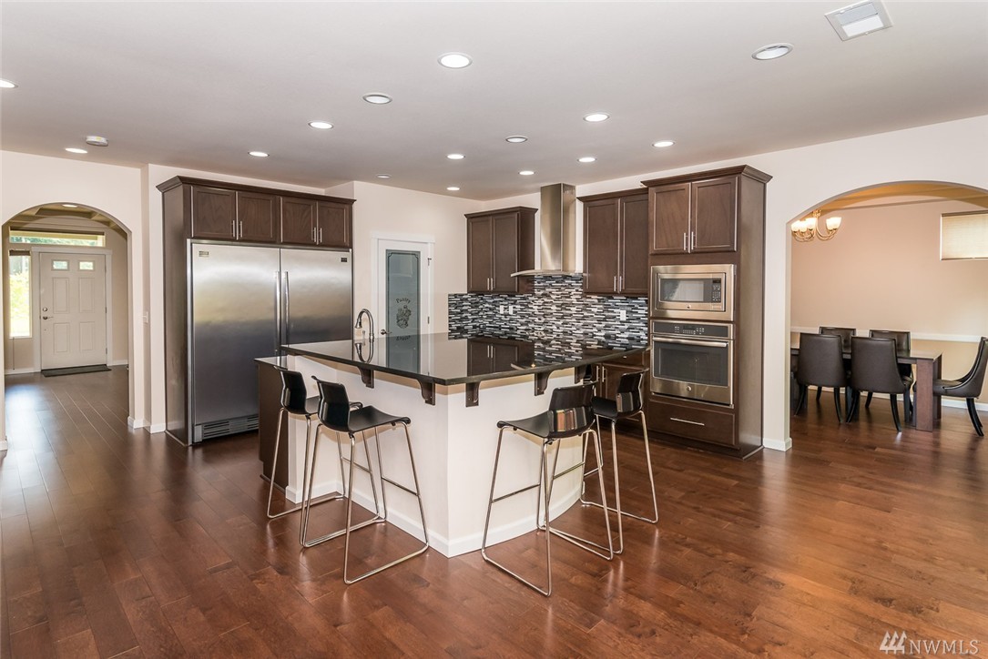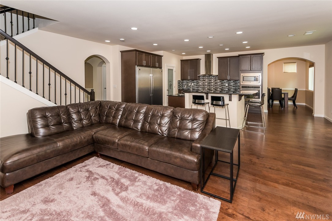 All the space you dream of in this upgraded 5 bed, 3114 SF home built in 2014. Allergy problems, no more. Entire home has hardwood floors. Lightly lived in, not a single picture was hung. Kitchen is the highlight of this home w/ 6’x6’ quartz island, walk-in pantry & SS appliances including Frigidaire Professional 6’wide refrigerator. Dining room with Butler’s Pantry. 5 beds PLUS office & Bonus Room. Extra deep finished garage. Relax on your large back yard patio that borders private green belt.