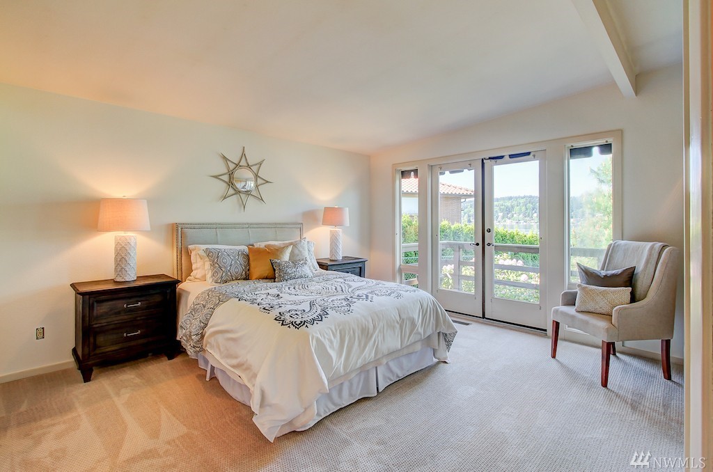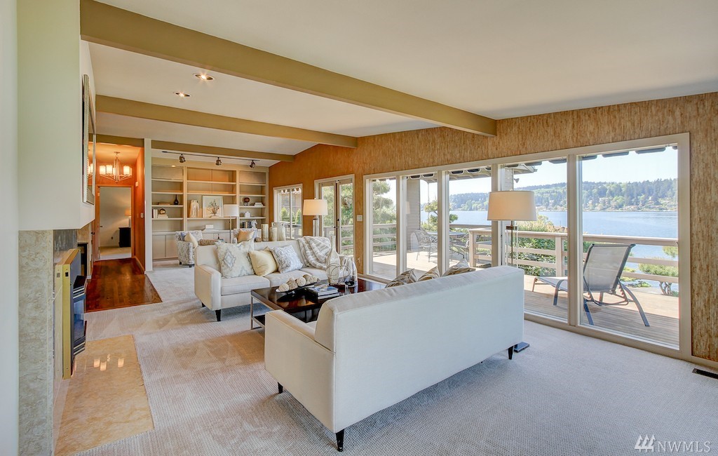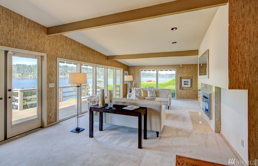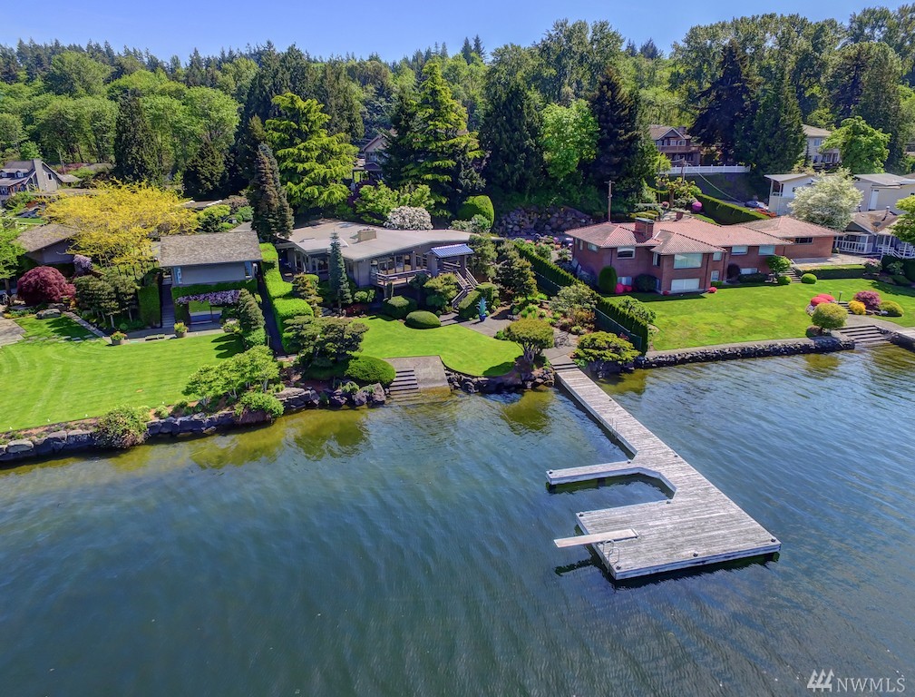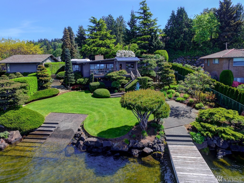 Rare, private South & West facing no-bank Lake Washington Waterfront property w/ ample natural light, high ceilings, open floor plan. Manicured grounds w/ abundant color& foliage. Expansive deck, wraparound view. Very substantial dock w/ boat slip, perfect for lakeside enjoyment. Kitchen w/ top of the line appliances. 3BR/4Bth make for versatile living. Huge two-car garage. Excellent close-in location just south of popular Newcastle Beach. Glistening waters of Lake Washington are all yours!