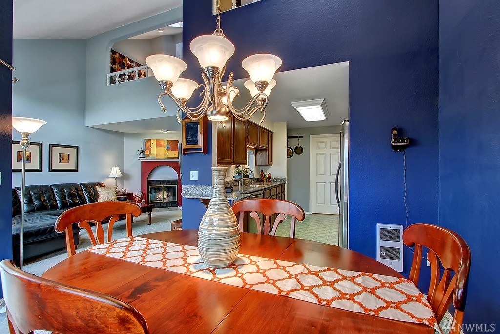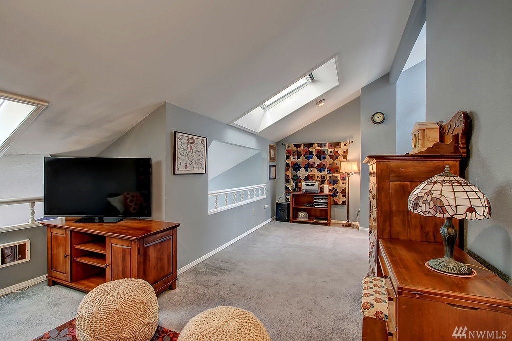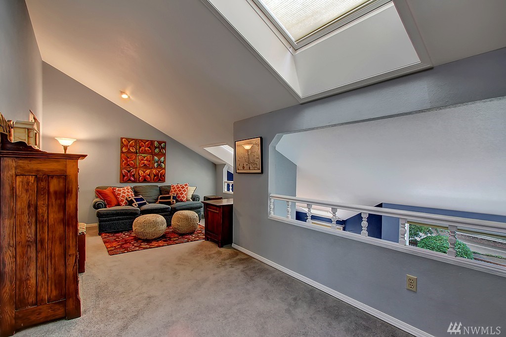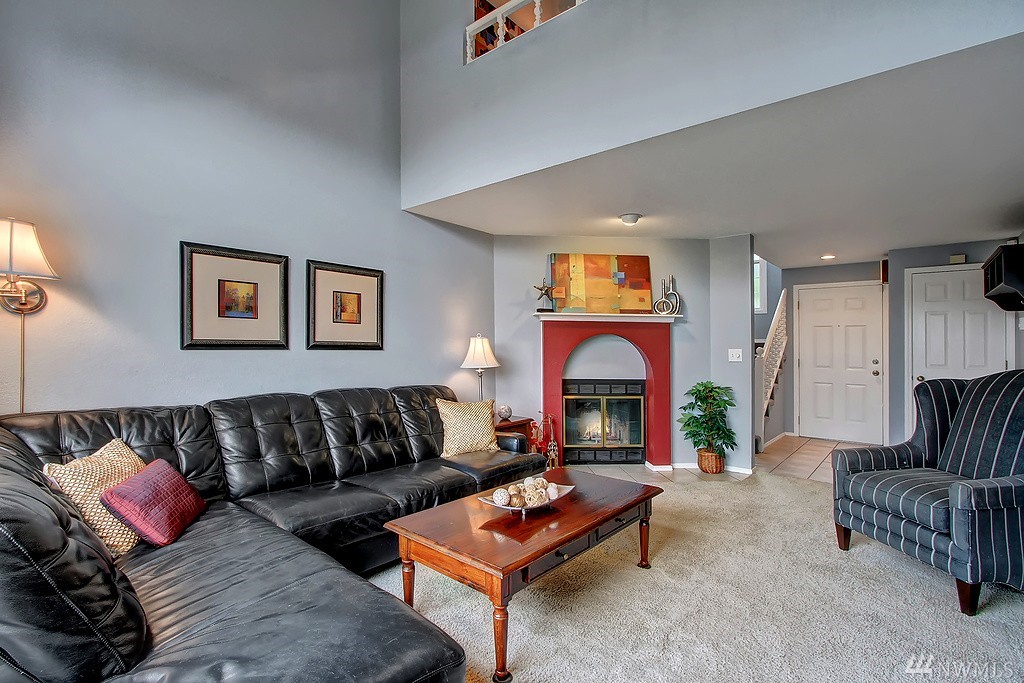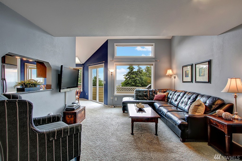 All encompassing Mt. Rainer & Valley views provide the backdrop for this open-concept town home tucked away in a quiet, meticulously maintained community. Vaulted ceilings, skylights & updated windows bathe this home w/ natural light. Features include bonus loft space, 2 master suites, view deck off dining room, & an enclosed back yard that opens to grassy common grounds. 1 attached & 1 detached garage. Convenient to airport, freeways, bus line & backs up to Valley Ridge Park & Sports Complex.