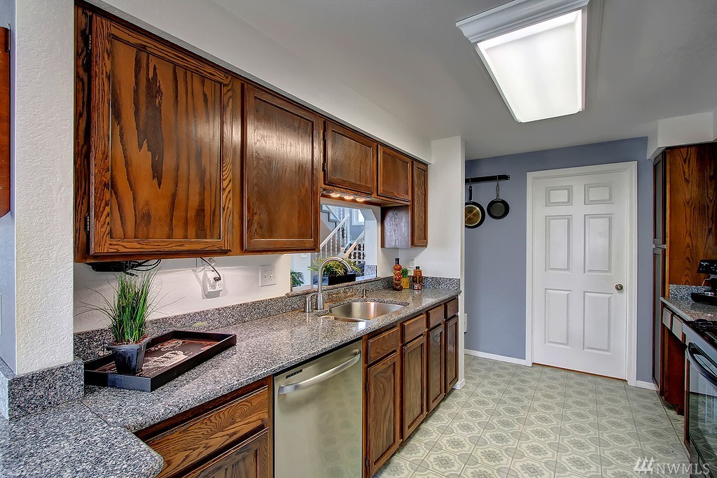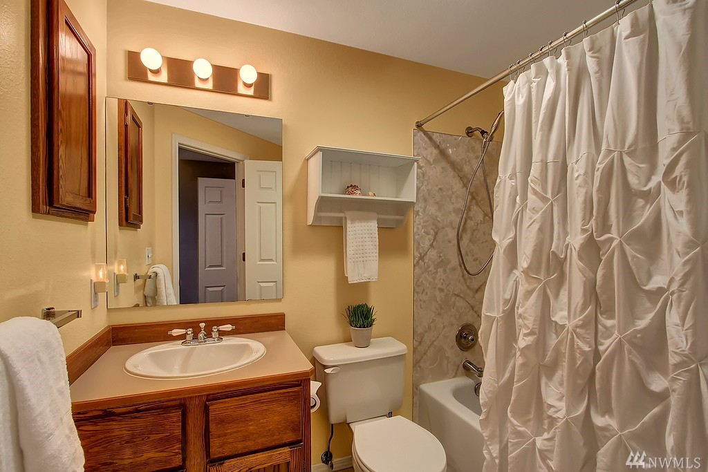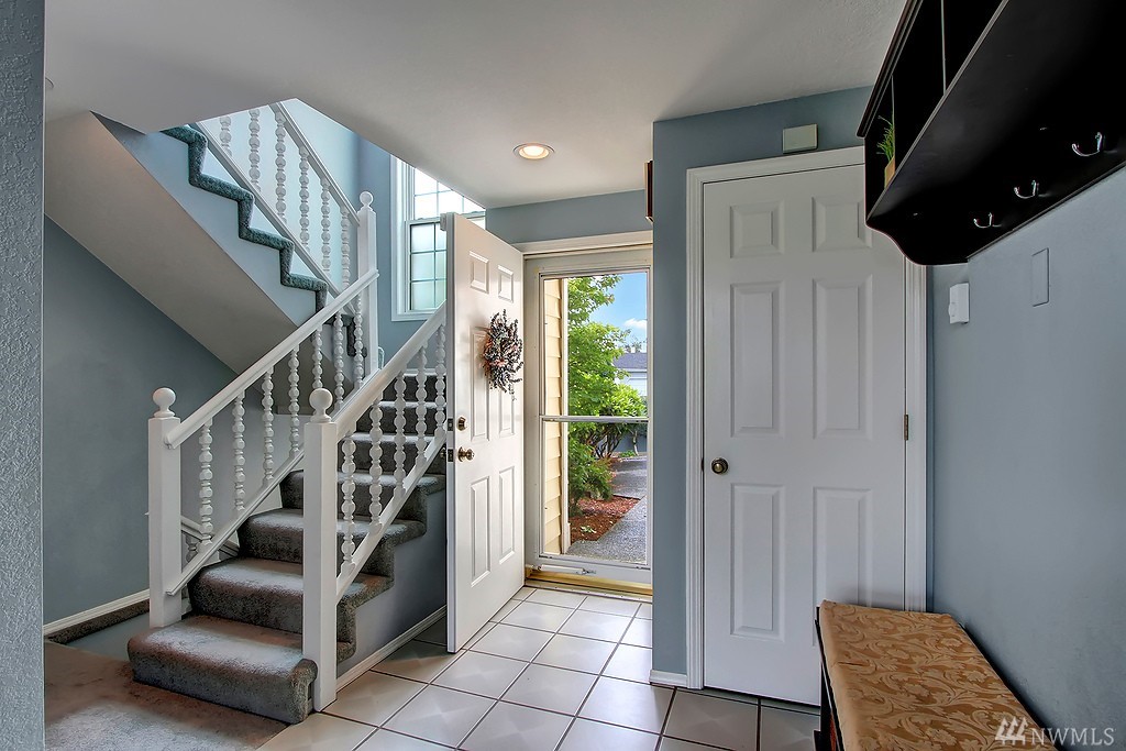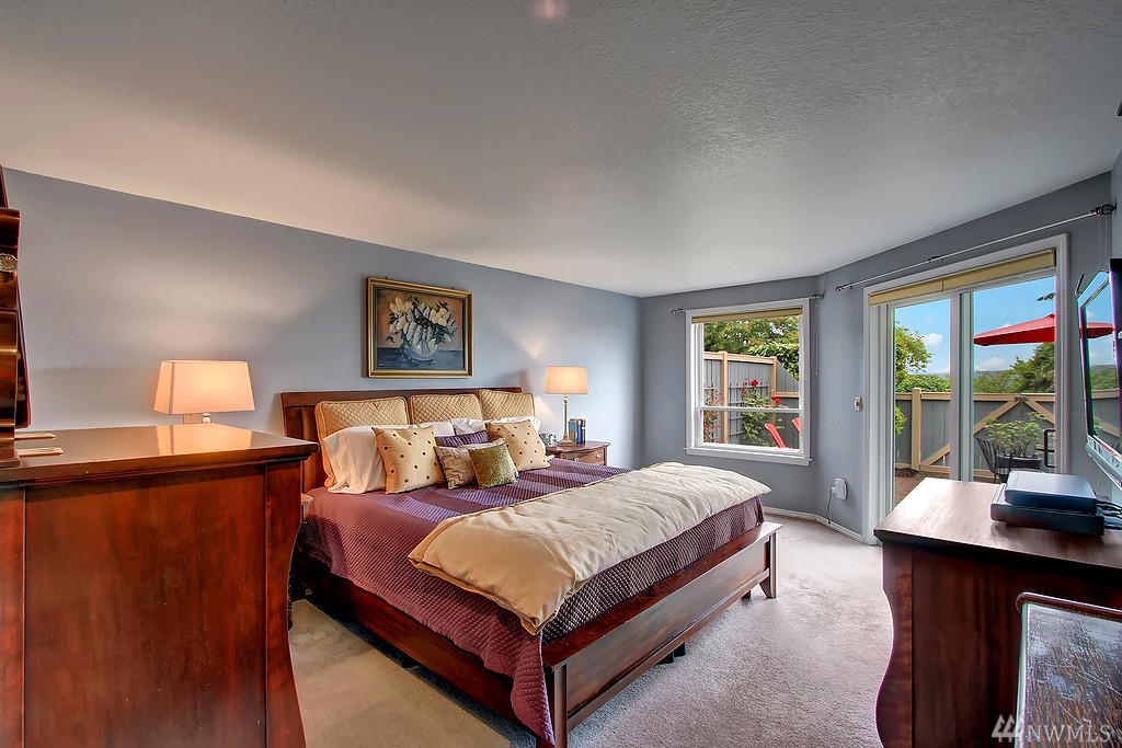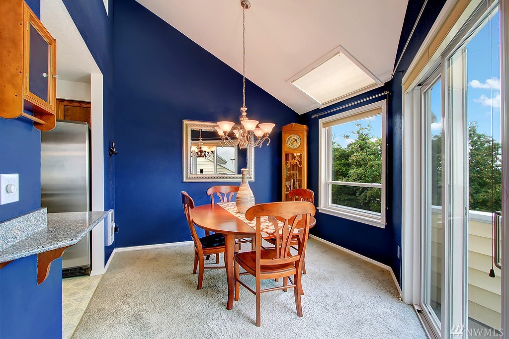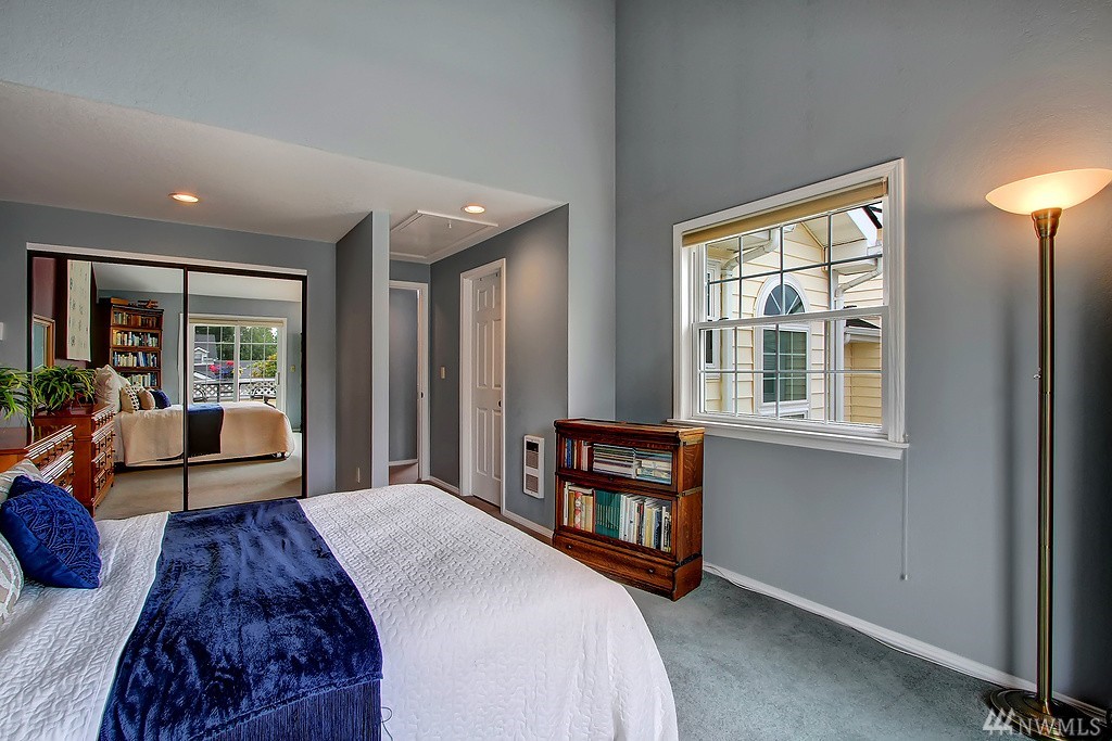 All encompassing Mt. Rainer & Valley views provide the backdrop for this open-concept town home tucked away in a quiet, meticulously maintained community. Vaulted ceilings, skylights & updated windows bathe this home w/ natural light. Features include bonus loft space, 2 master suites, view deck off dining room, & an enclosed back yard that opens to grassy common grounds. 1 attached & 1 detached garage. Convenient to airport, freeways, bus line & backs up to Valley Ridge Park & Sports Complex.