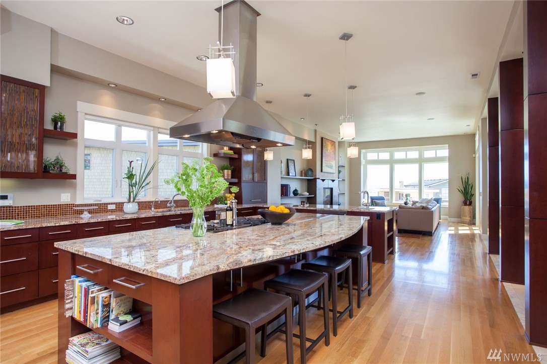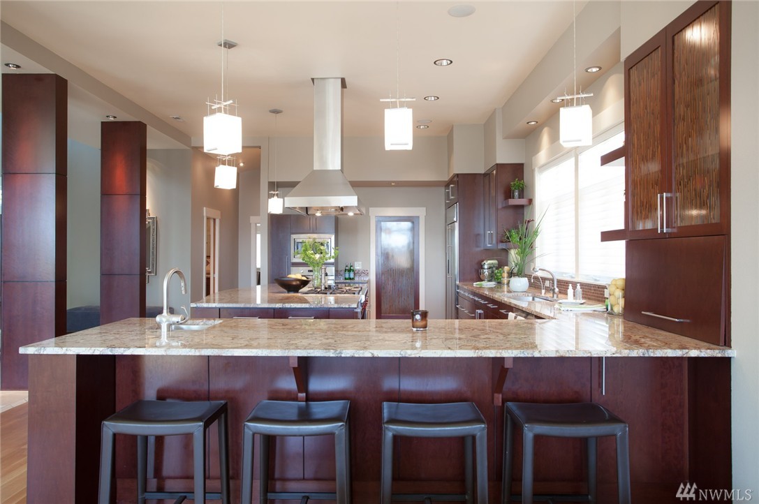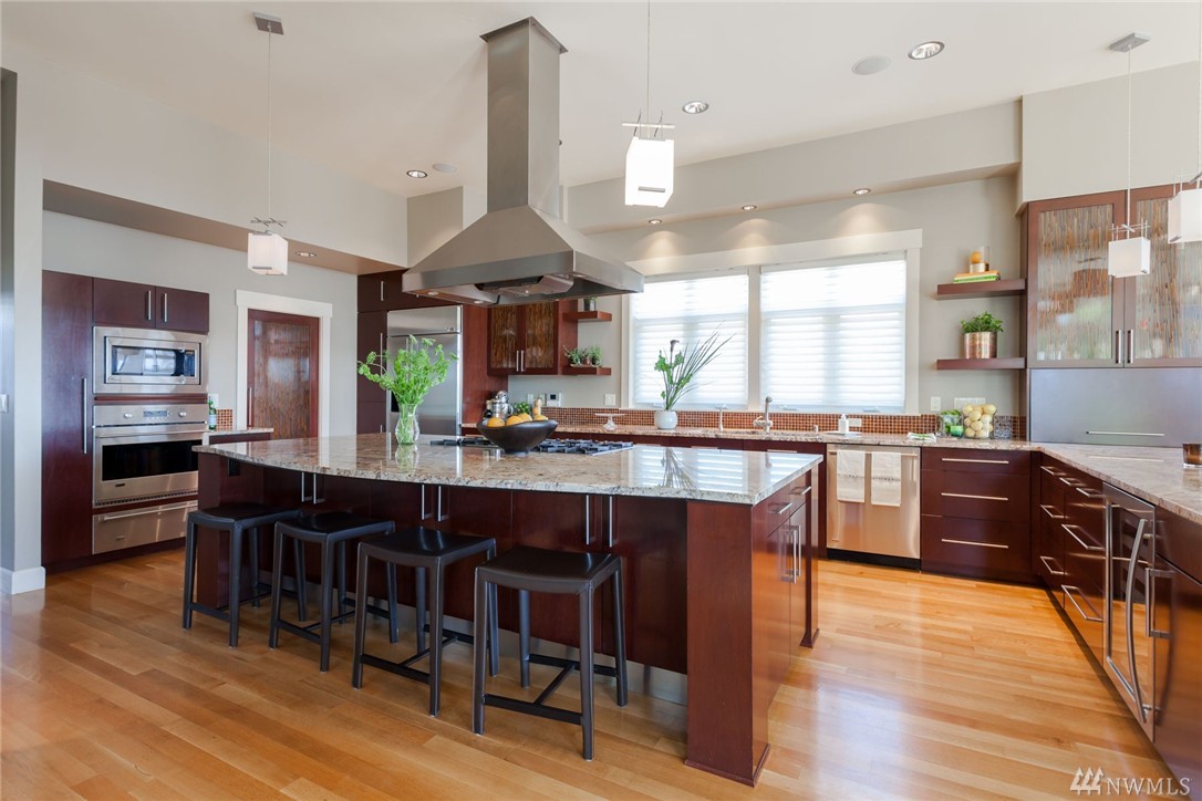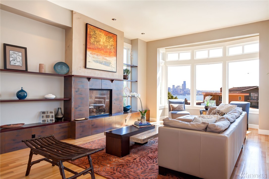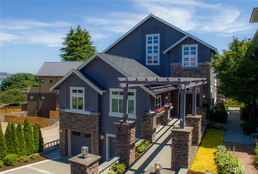 Stately view craftsman at the precipice of North Admiral in West Seattle; adjacent to Hamilton Viewpoint Park, this impressive 4100 sqft 4 bedroom (easy 5th) + den, 3 bath gorgeous home is perched atop the most impressive views of Elliott Bay, Mt. Rainier & all of Downtown Seattle! A true chef's kitchen with 11' slab granite island, enviable master bedroom, view closet and en-suite with 5 piece master spa, media room and true features of luxury all throughout this beautiful & meticulous home.