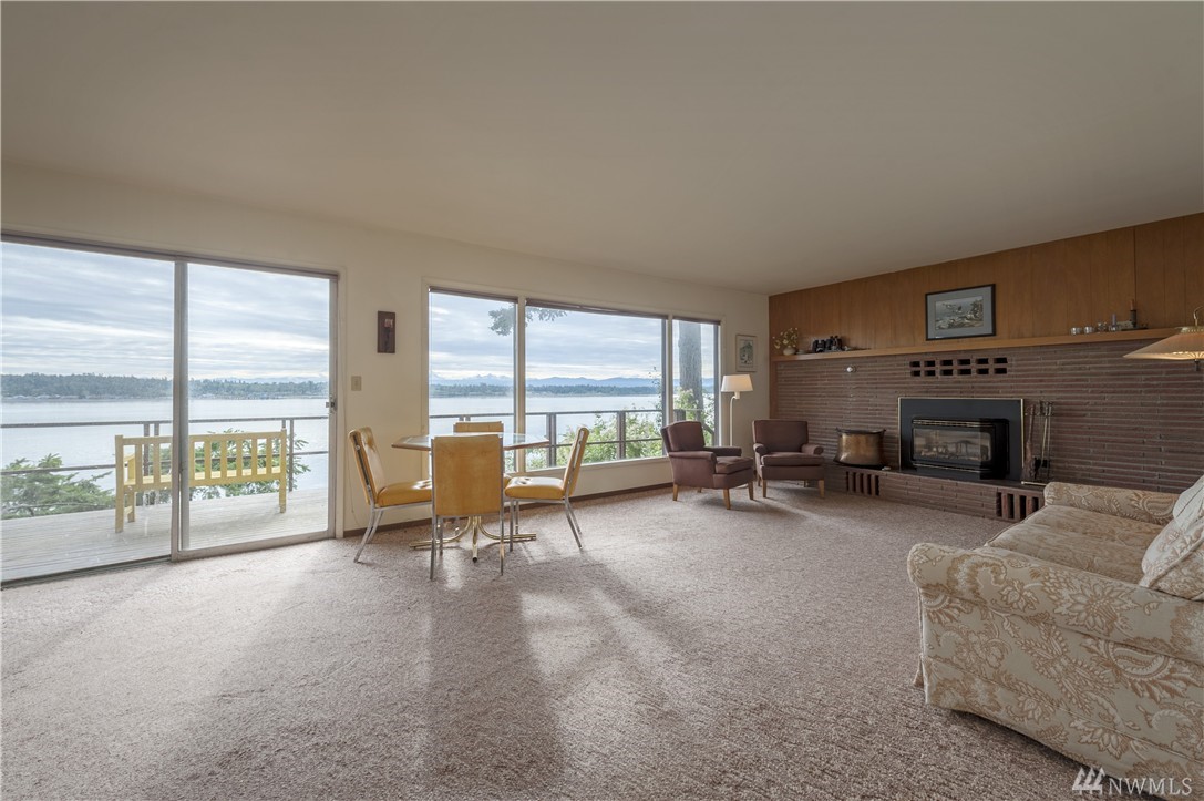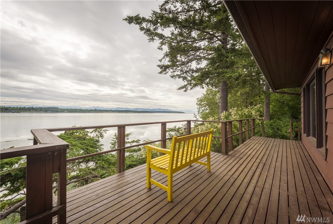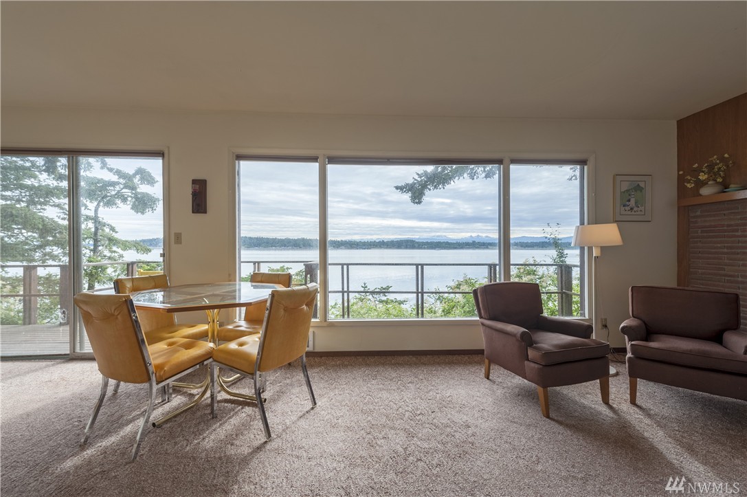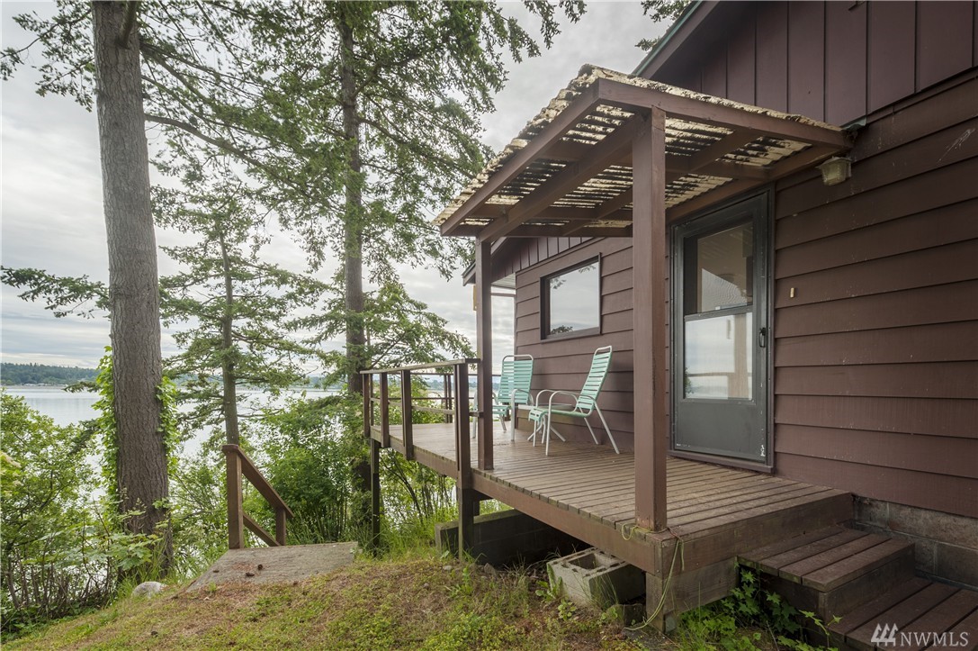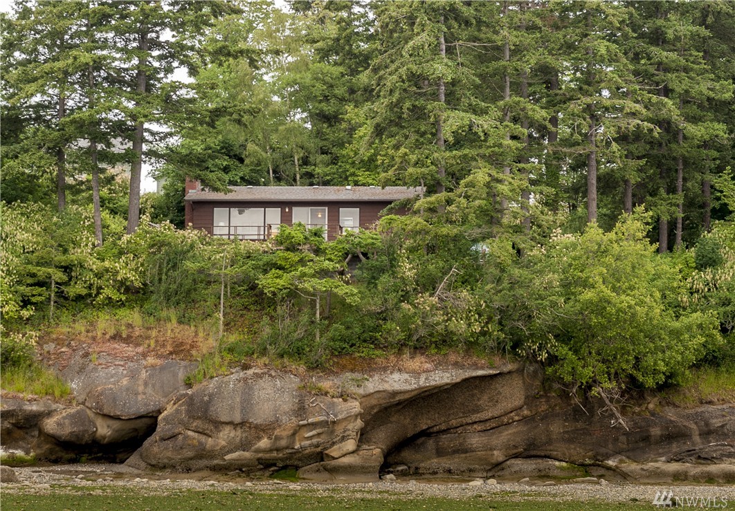 Here is your chance to create a beautiful space in this mid-century waterfront rambler. This two bedroom home sits on two parcels offering a park like setting right on the water. Big evergreens sprinkled along the waterfront, expansive water views that include Hales Passage, Mt. Baker & the Canadian mountains. Lying in wait under the carpet are hardwood floors,& the rest of the home, while turnkey, could be updated VERY easily to create a fresh and modern look. Gorgeous beach & a great location!