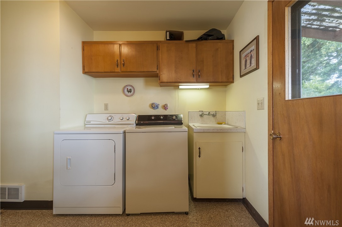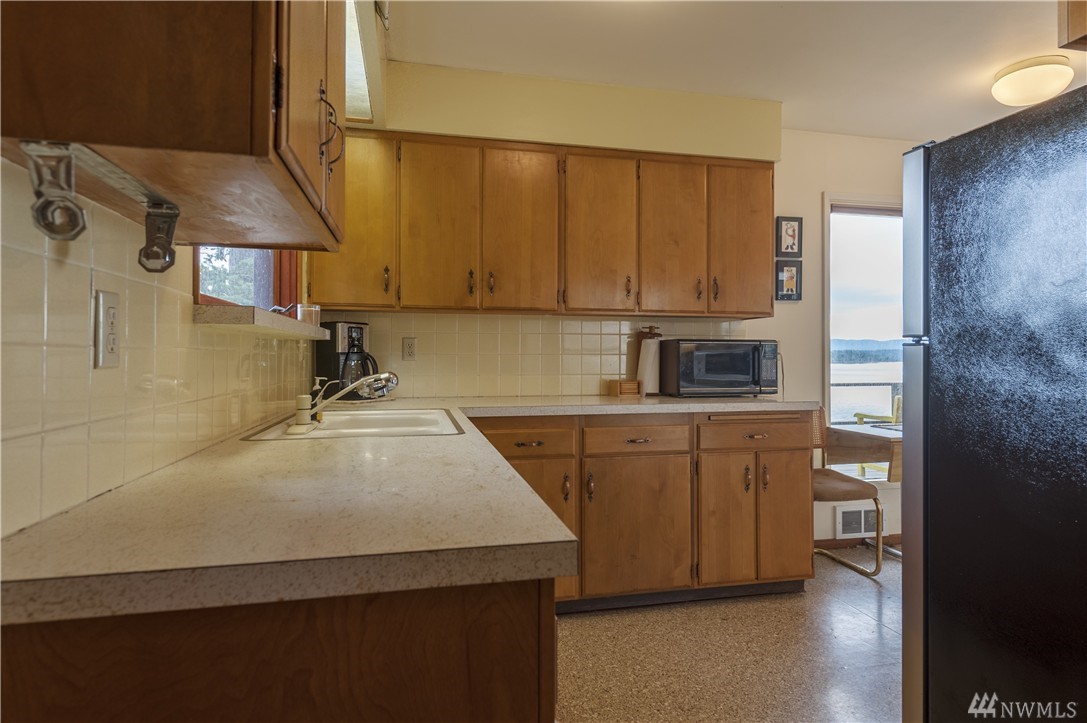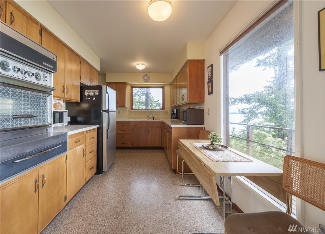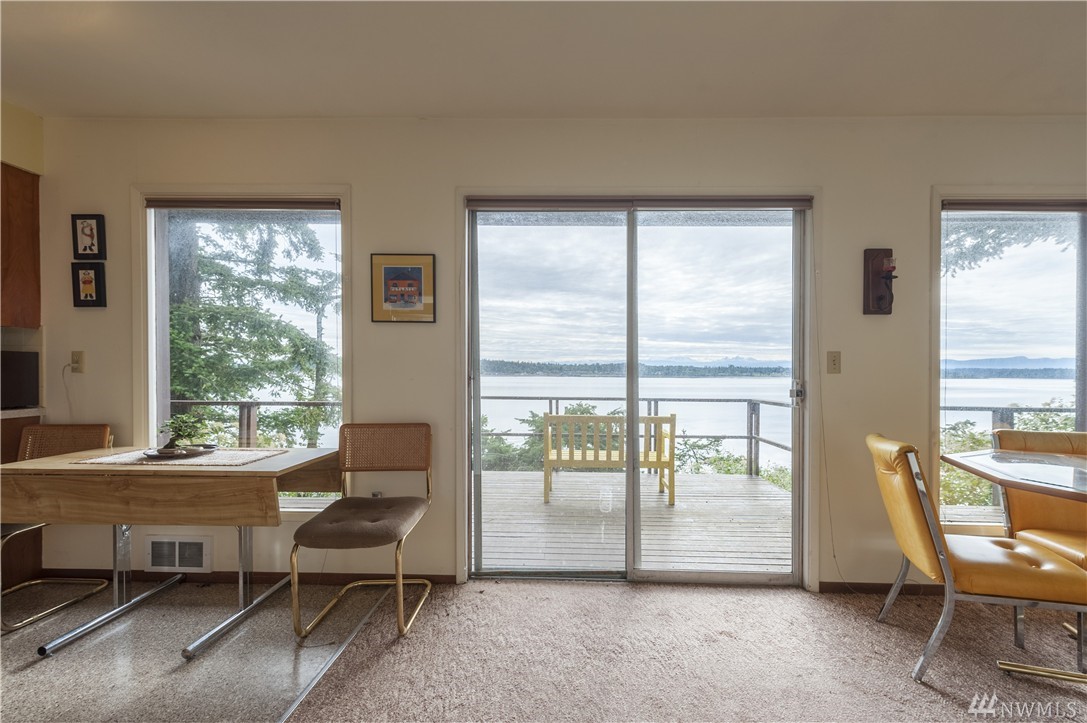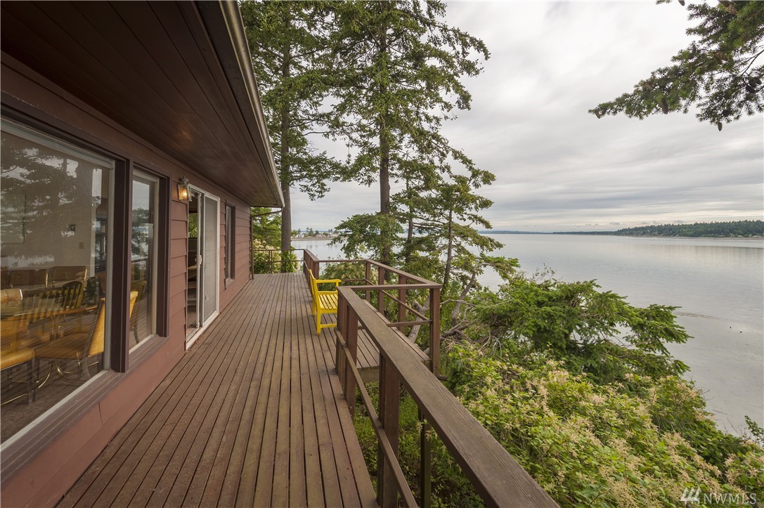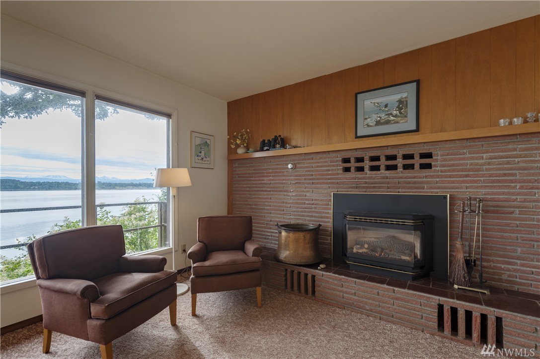 Here is your chance to create a beautiful space in this mid-century waterfront rambler. This two bedroom home sits on two parcels offering a park like setting right on the water. Big evergreens sprinkled along the waterfront, expansive water views that include Hales Passage, Mt. Baker & the Canadian mountains. Lying in wait under the carpet are hardwood floors,& the rest of the home, while turnkey, could be updated VERY easily to create a fresh and modern look. Gorgeous beach & a great location!