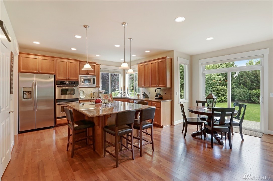 Classic Burnstead Home with complete pride of ownership. Home features 4 bedrms, 3.25 baths, den & bonus room with 3,600 square feet of well designed living space. Gleaming hardwood floors & 2-story entry welcome you home. Great room concept is perfect for entertaining & daily living with gourmet kitchen, casual dining area & huge family room. Huge cul-de-sac lot is beautifully landscaped, fully fenced, has views of the Cascade Mountains & is one of the largest lots in the neighborhood.