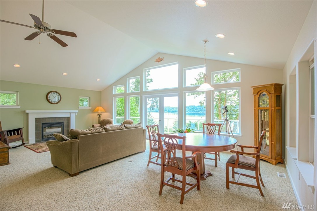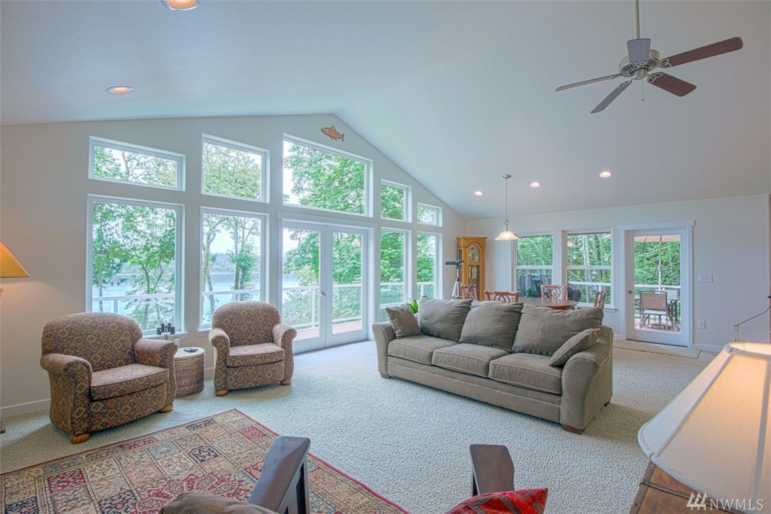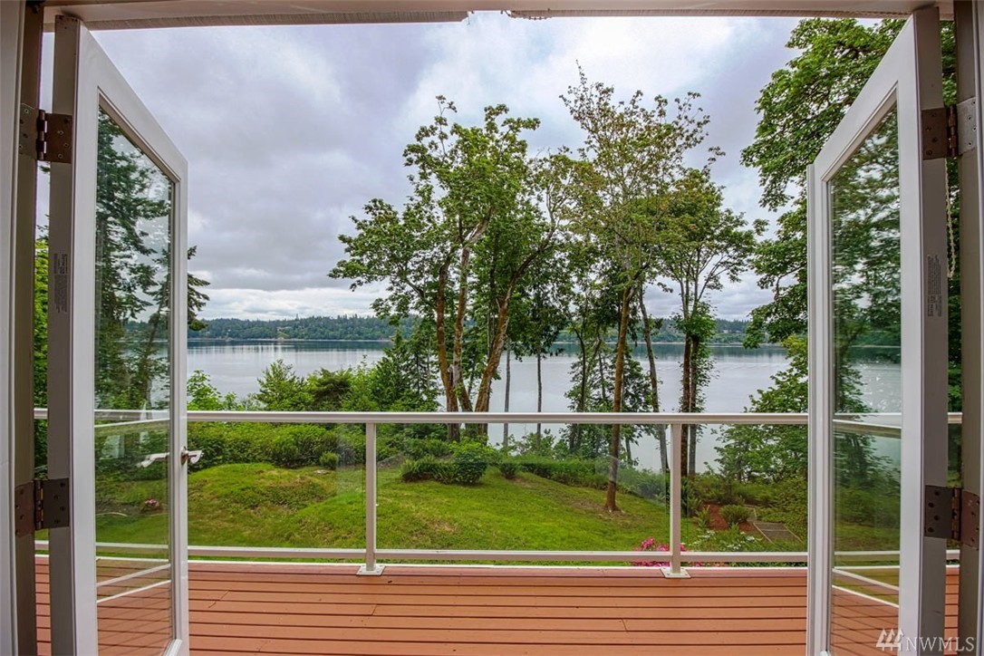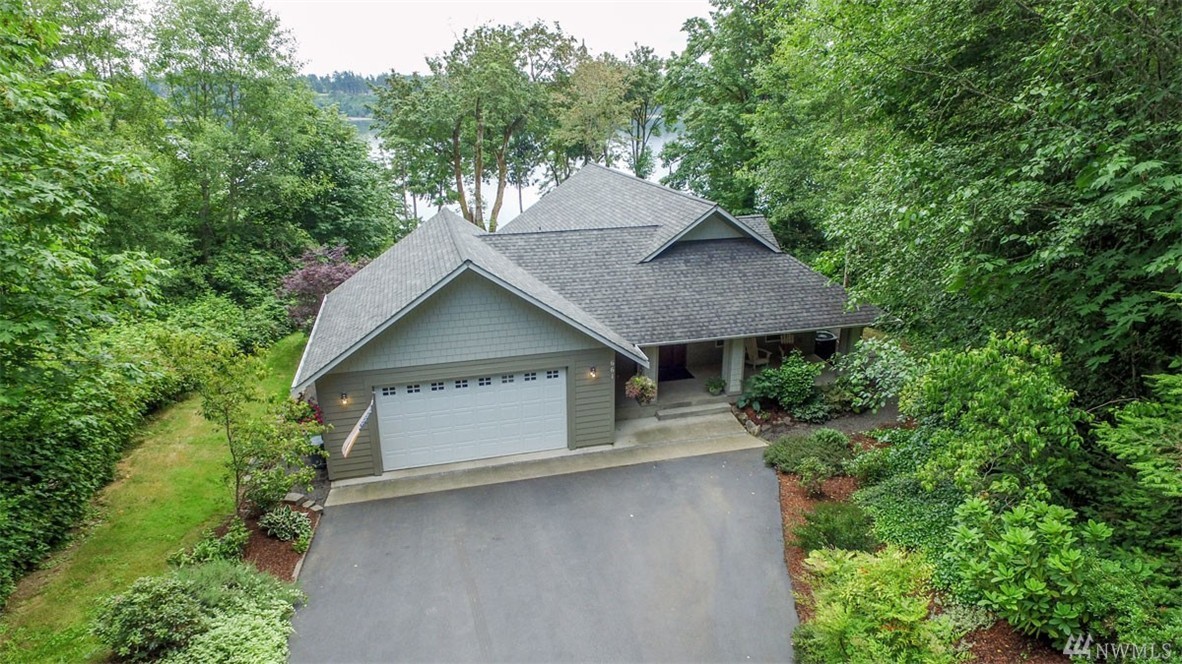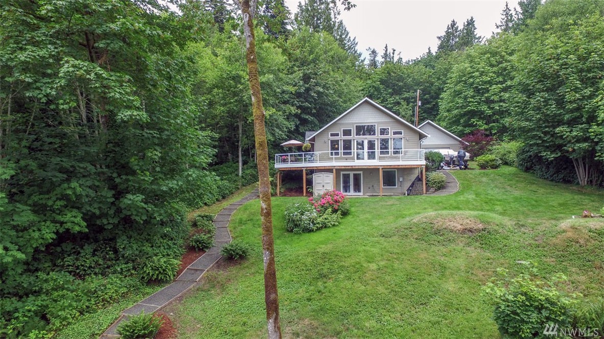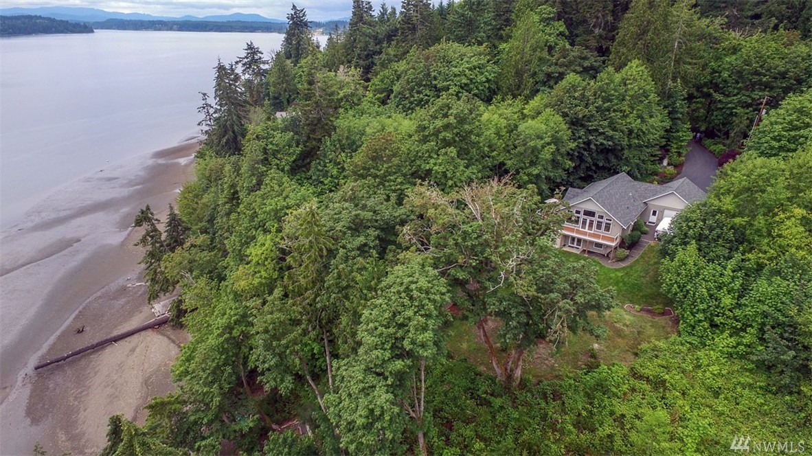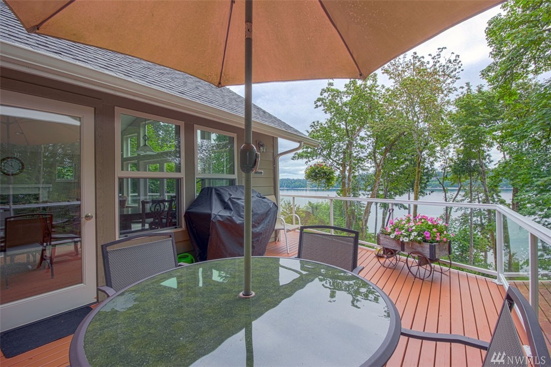 Beautiful, like new home in peaceful setting on Totten Inlet with SE exposure, features 2 bedrooms + den. Private master suite with French doors leads to back yard. Kitchen boasts quartz counters and oversized island. Open floor plan with spectacular view of the sound through wall of windows on the main floor with French doors leading to full length view deck. Property includes easy path to beach. 160 feet of waterfront, and 200 feet of tidelands. 2 car garage has pass through to back yard.