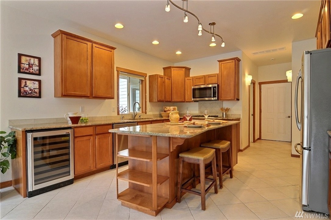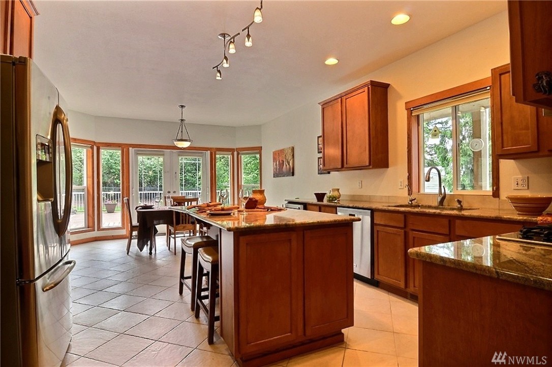 Open concept living in Tahoma school district. Oversize master on main w/5 piece bath, new SS kitchen appliances, slab granite counters & wine fridge. Main flr office, huge upper bonus, vaulted ceilings, spacious mud/laundry. Secluded property w/large 2000 SF deck w/outside speaker system & gazebo. Oversize 3 car garage & detached 4 car garage with 24x24 shop on 1.85 acres has room for it all. Air conditioning, automatic sprinkler system, directly wired generator, 2 Tuff shed units, gated drive.
