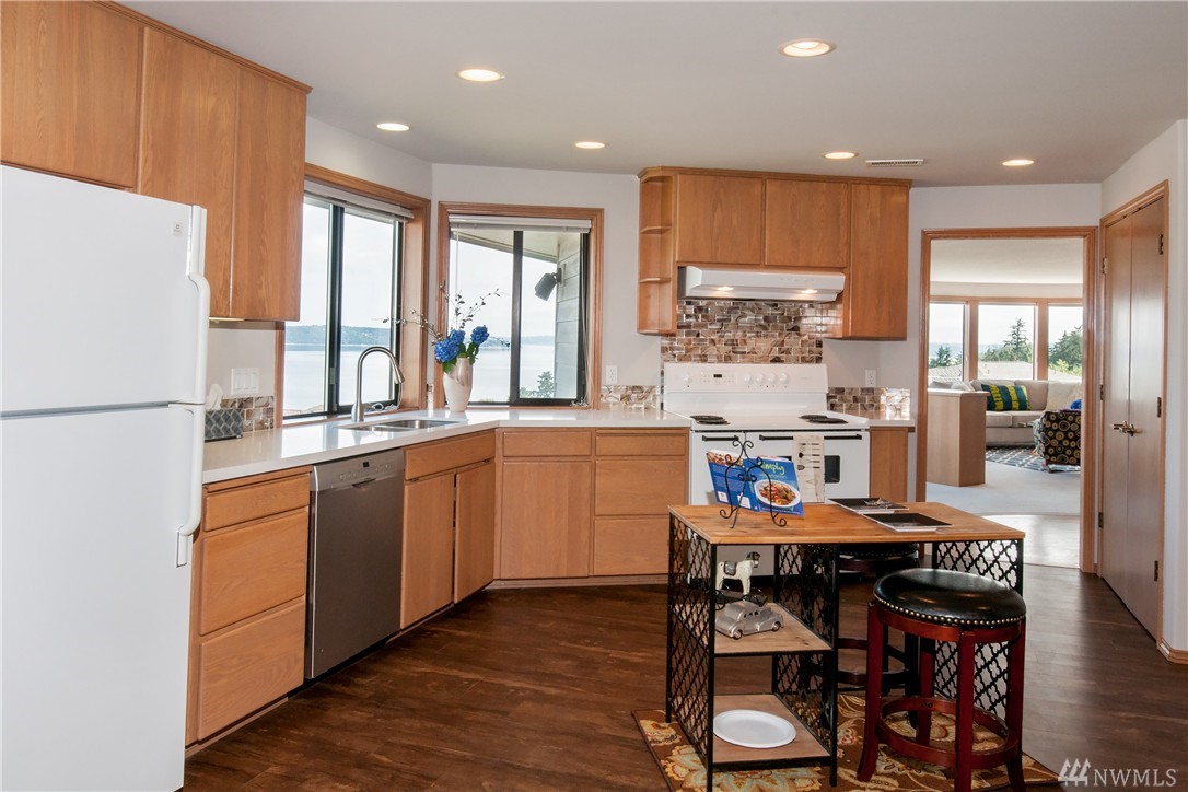 Best view lot in Bayview Estates! Original owner, custom built daylight rambler, very well maintained. Living room w/ floor to ceiling windows showcasing view, open to formal dining. Master on main w/ more views, 5 piece bath, and large walk-in closet. Additional bedroom on main, and 2 more beds on lower level. Family room with more views, and additional finished room also on lower level. Radiant floor heating throughout home AND garage! Composition roof is 4 years young! TONS of storage!