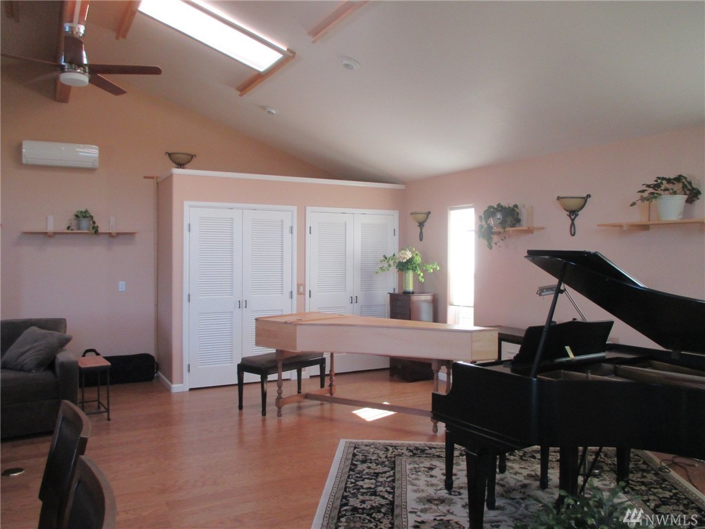 Looking for a great room with a formal dining area? Here it is and so much more! A well-planned kitchen with a propane cooktop, slide out drawers, corrian counters. Two ensuite masters, an office and one heck of a bonus room. Main home is 1690 s.f. with the bonus an additional 829 sf. The office connects the two. Fantastic mountain views, beautifully landscaped grounds with blooming lavender and e-z care landscaping. 692 sf garage, 12x32 heated/finished RV bldg w/loft/shop, 12x16 storage shed.