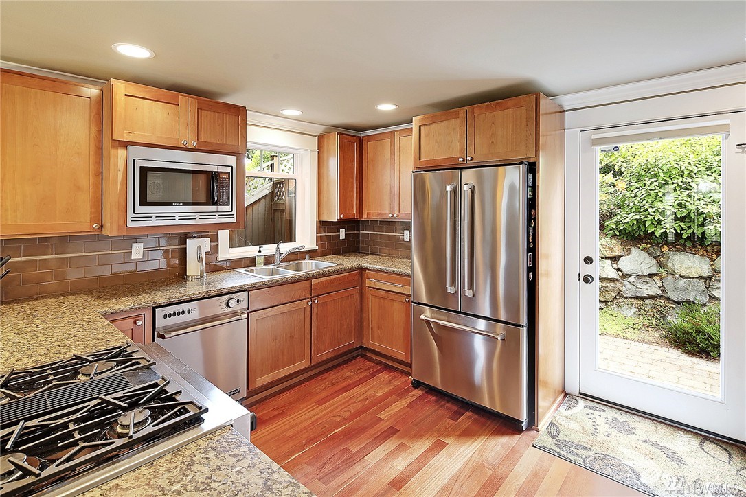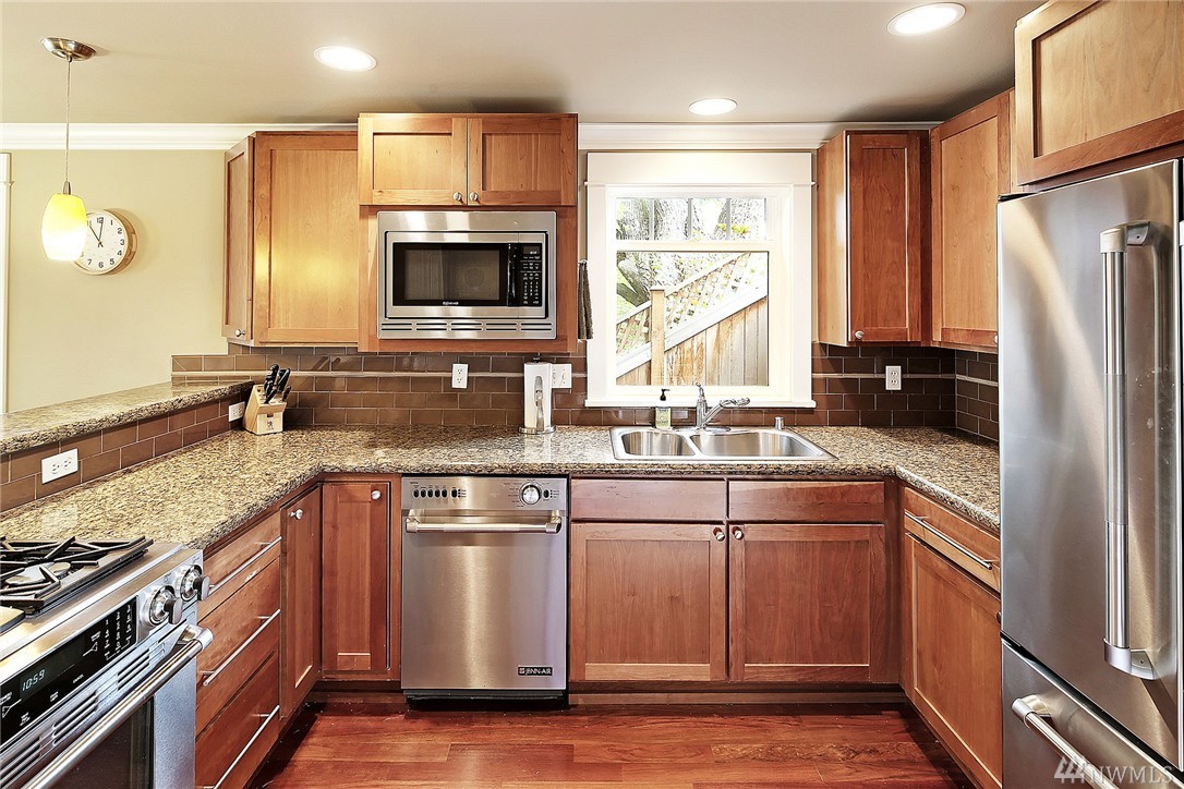 Custom quality built home with expansive views of Sound, mountains and golf course. Light filled, Craftsman style architecture features extensive use of painted millwork. Open floor plan features kitchen with slab granite and ss appliances. Decks and patios on each floor. Master suite features spa like bath and huge walk in closet. Impeccably maintained and move in ready. Heated driveway for those icy winter mornings. Minutes to Downtown and Ballard.