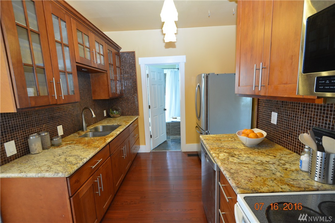 Charming home in desirable West Seattle! Remodeled w/wonderful taste. Gorgeous Kitchen w/granite countertops & new appliances. 2 bdrms & full bath on main floor, 2 bdrms & .75 bath on bottom floor. New paint inside & out w/bright living room & separate dining room. Yard includes new sod, small garden area, hot tub, a back deck & front porch for morning coffee. Alley in back w/parking & 1 car garage. Downstairs plumbed for kitchen addition if desired. Close to Alaska Junction & Alki Beach