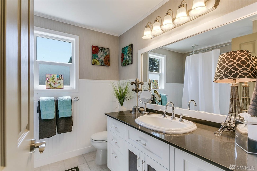 Two story residence presents light-filled living spaces boasting fresh interior paint and sophisticated style thruout. Fabulous kitchen features handsome cbntry w/under cbnt lighting, stone counters, filtered water. Two bdrms down; two up include master w/sitting area. Newly updated baths simply sparkle. More: Garden wndw; lighting is 90% LED; 4 camera sec sys; tons of strg. Expansive covered deck with swing; PLUS: Theatre rm w/projector in outbldg; dbl gate access to backyard. Prime location!