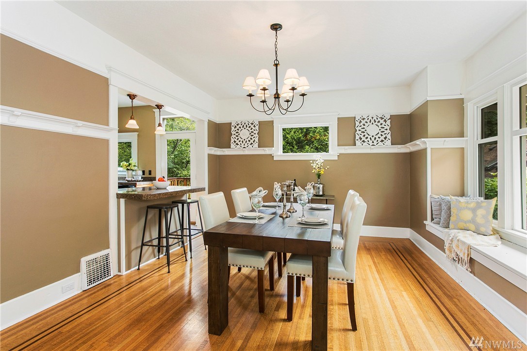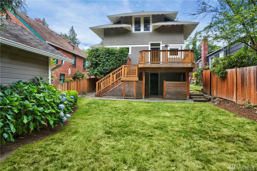 Craftsmen with character located on fantastic street in Montlake. The covered front porch and elegant entry welcome you to this beautiful home with detailed finishes. Open floor plan that's great for entertaining. Updated kitchen with eating bar and extra cabinet space. Four large bedrooms plus nicely finished basement with office space and bonus room. Well-kept detached garage would make a great shop. Large deck and fenced backyard back right up to the Arboretum! Come see today!