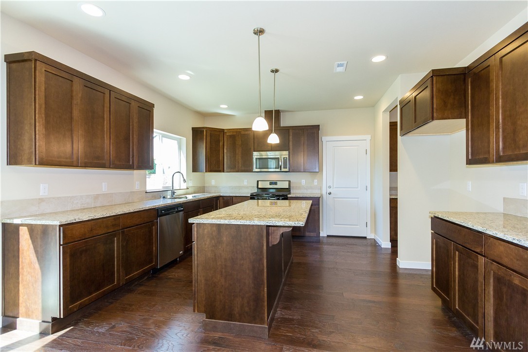 New 2-story craftsman home on nearly ¼ acre lot in desirable neighborhood. Master suite features vaulted ceiling w/ fan, 5-piece bath w/ soaker tub, large walk-in closet. Kitchen boasts granite counters, SS appliances, butler’s pantry and pass-thru to formal dining. Real hardwood floors in entry, kitchen and nook. Bedroom and ¾ bath on main floor. Gas fireplace in family room. Upper floor bonus room. Nook opens to patio and large yard. Minutes to shopping, local parks and easy commuting.