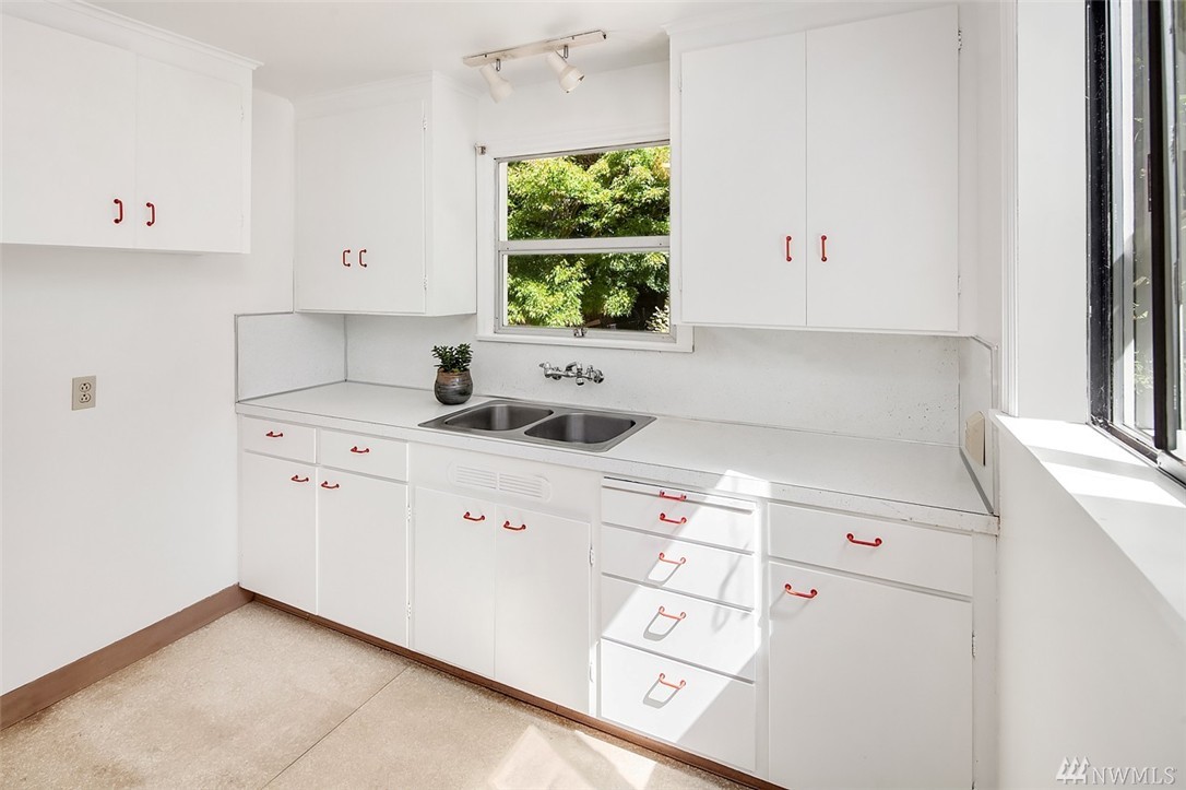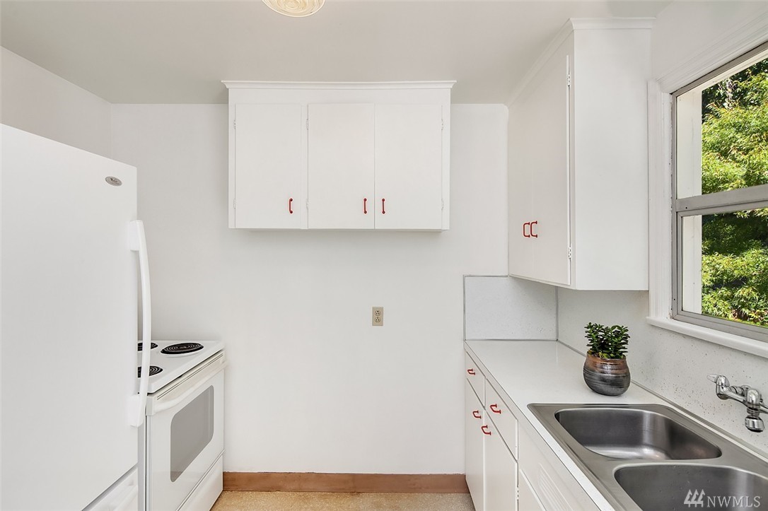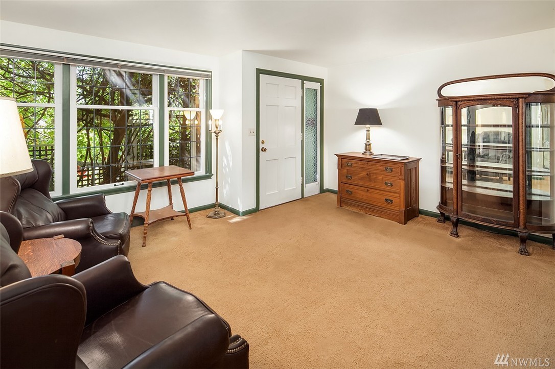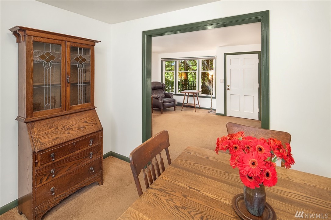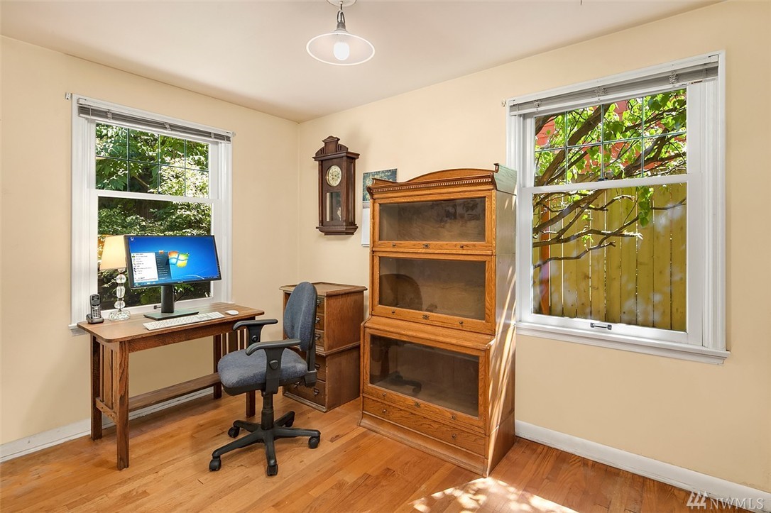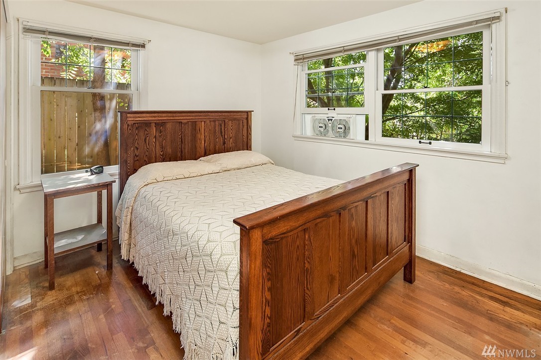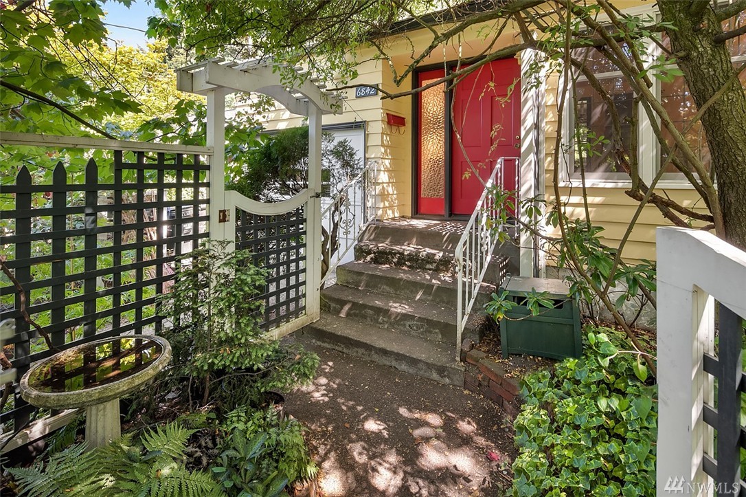 Adorable bungalow on a quiet street in Bryant features a very private entry with beautiful garden and patio. This 2 bedroom, 1 bath home has double pane, leaded glass windows, hardwood floors under carpet, formal dining room and an attached garage. Large, fully-fenced backyard with mature landscaping and lots of southern exposure for gardening. Unfinished basement with tall ceilings for instant equity. Home has been retrofitted for a 2nd story and earthquake. Close to U-Village, UW, and I-5.