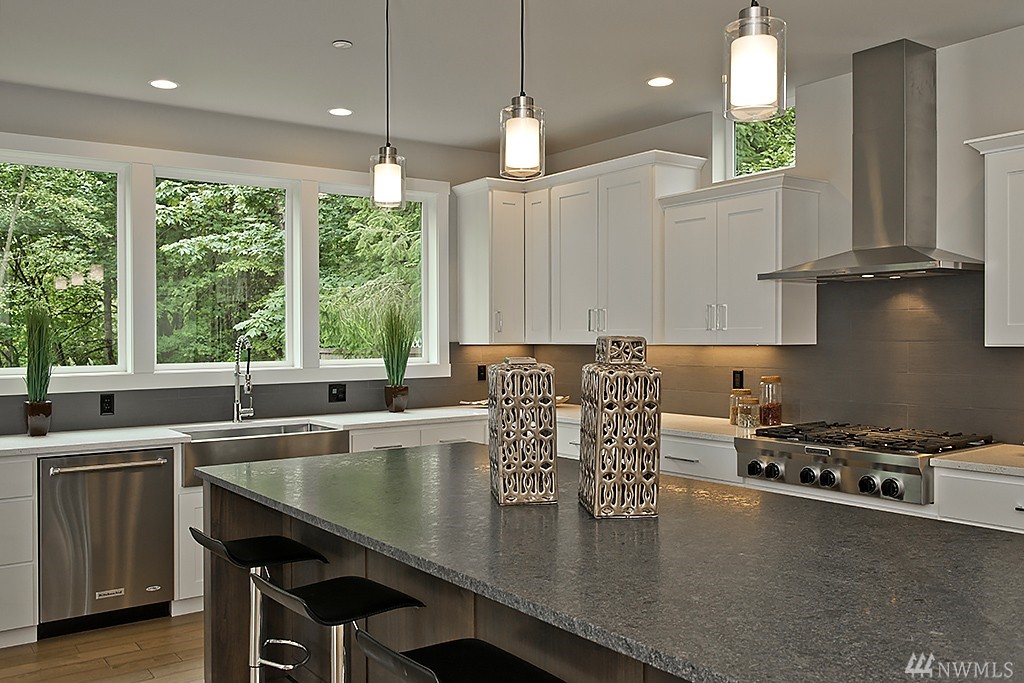 GPS- 16044 Simonds Rd. NE -Model Home Now Available! Refreshing & Thoughtful Design Showcased in this open concept floor plan. Chef's kitchen w/ Kitchen Aid appliance pkg. -Double Oven, 36" gas range top & French Door Refer. Slab Stone counters & huge island. Hardwoods throughout main floor. Oversize windows to covered outdoor living and private back yard space. Backs to greenbelt. Generously proportioned bedrooms w/ attached bath. Brought to you by award winning local builder-Legacy Homes of WA
