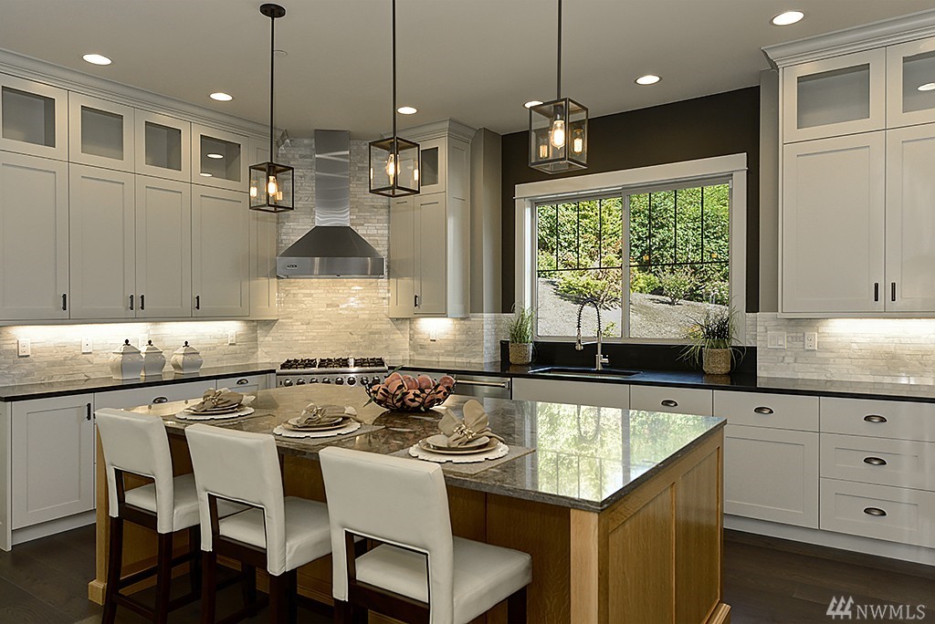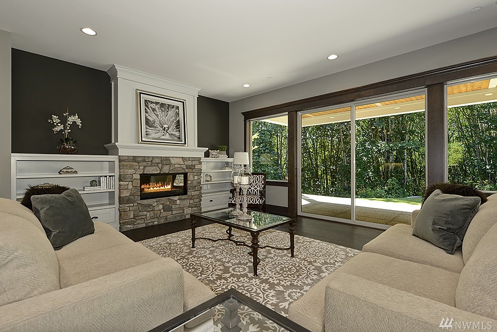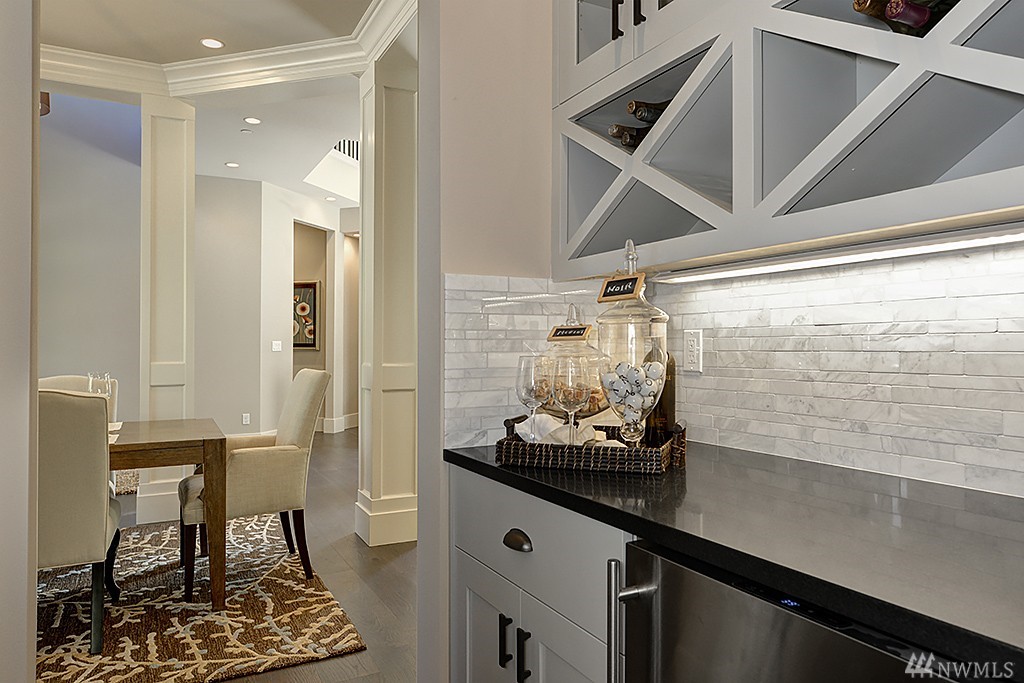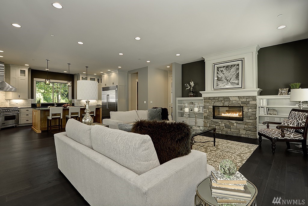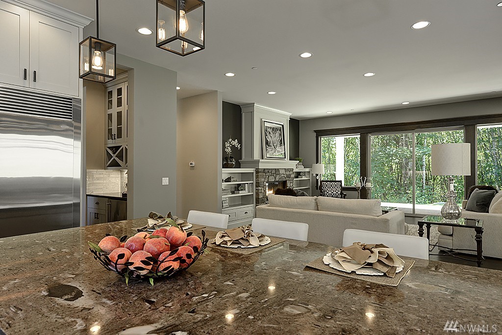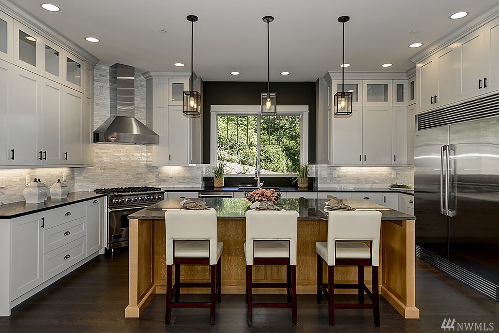 Privacy Defined in this half acre Kirkland estate. Sprawling main floor layout w/ 10' ceilings. Chef's kitchen featuring a massive island, walk in pantry and butlers pantry leading to formal dining room. Viking range and a full size 60" fridge freezer combo. Split staircase leads to the guest wing to the East (ideal for extended stays) and the owner's wing to the West. Covered outdoor living space with plenty of usable back yard space. Backs to a protected greenbelt. Newly constructed in 2015.