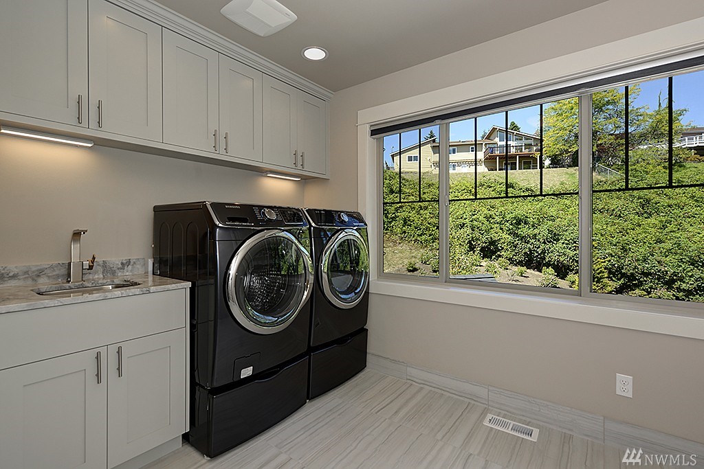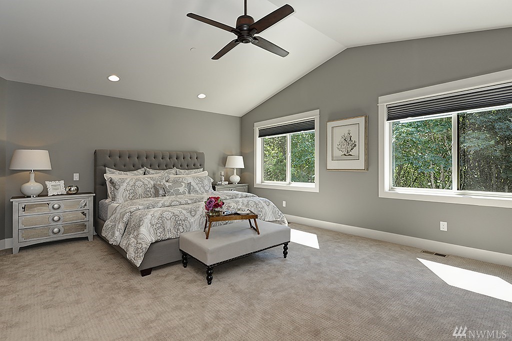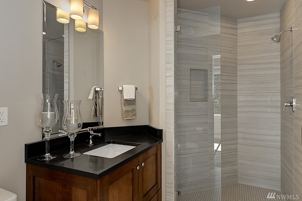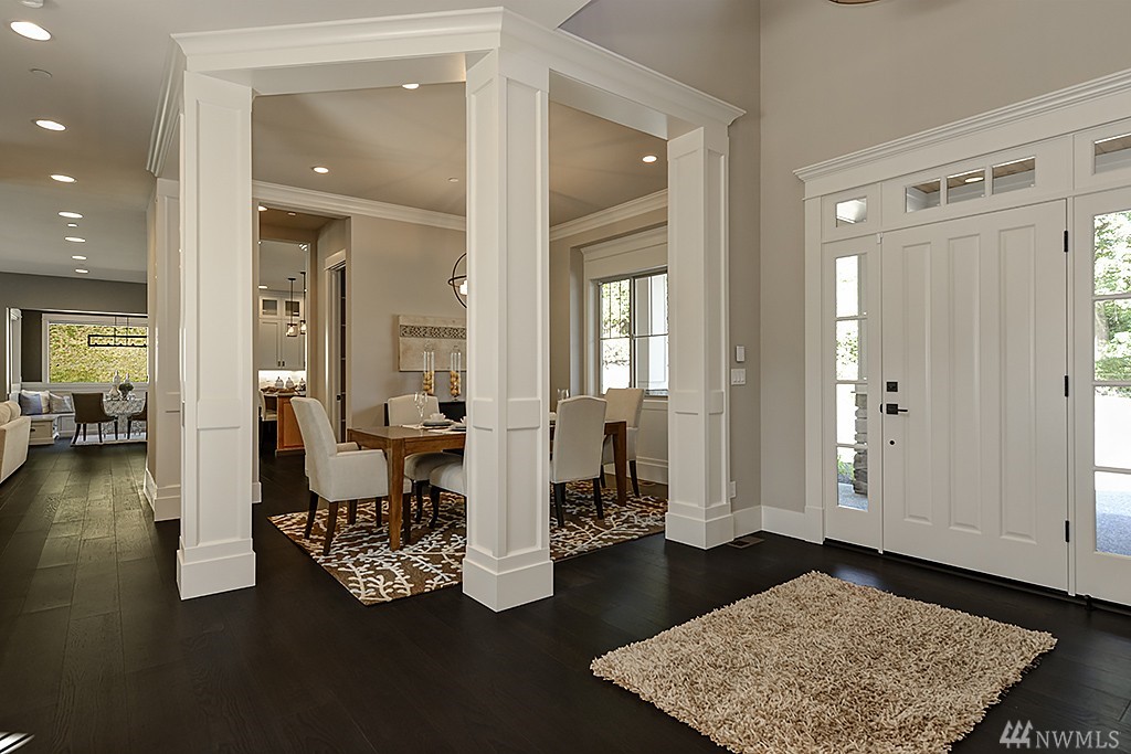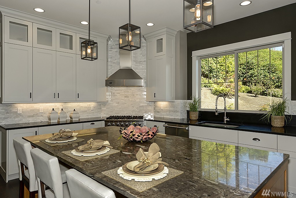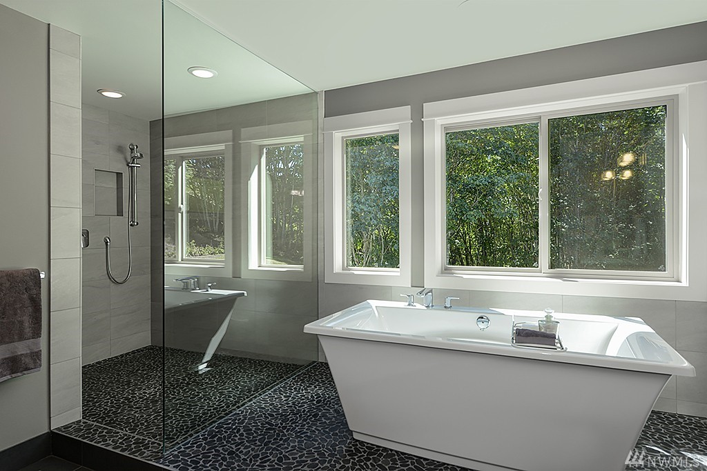 Privacy Defined in this half acre Kirkland estate. Sprawling main floor layout w/ 10' ceilings. Chef's kitchen featuring a massive island, walk in pantry and butlers pantry leading to formal dining room. Viking range and a full size 60" fridge freezer combo. Split staircase leads to the guest wing to the East (ideal for extended stays) and the owner's wing to the West. Covered outdoor living space with plenty of usable back yard space. Backs to a protected greenbelt. Newly constructed in 2015.