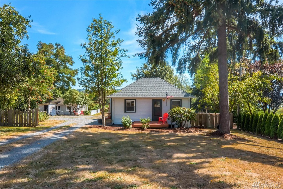 TWO Cottages on one lot. Main house is a 2 bed 1 bath w private fenced yard & basement for storage,additional living space or workshop. Additional 1 bed - 1 bath has full kitchen, living area, bedroom &full bath. Fresh paint & floors in both. Each home has updated electrical & plumbing. Larger lot/yardw mature trees. RV Parking. Ebey slough & territorial view. Endless opportunity awaits! Tiny house,Duplex, Condo, MIL alternative. A short commute & just minutes to shopping & dining.