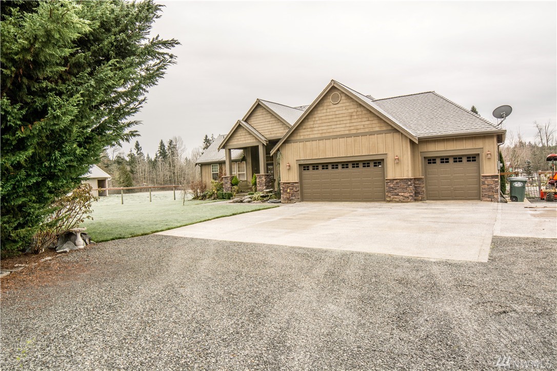 A Lifestyle to Appreciate! Craftsman Rambler just shy of 2000 sq ft...Sits on 2 Plus Acres. Three Bedroom, Two Bath, Plus a Office/Den/French Doors. A Kitchen that has Granite Counter Tops with Slate Floors in the Main Living Area. 5 PC Bath off the Master Bedroom with Walk in Closet/Linen. Gated Entry into a 3 Car Garage with a Pole Barn for 2 to 3 Horses. Green House,plants,fruit trees & Beautiful flowers and trees. Plus a Gunite Pool in back Patio Area for Added Enjoyment. RV Parking too!