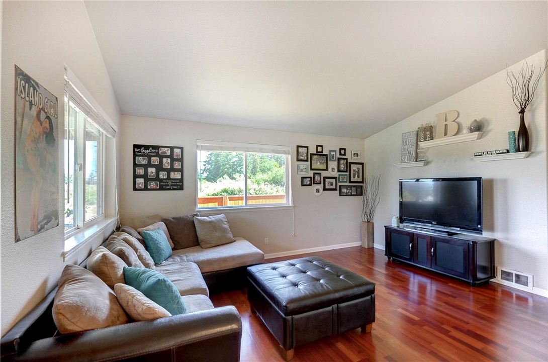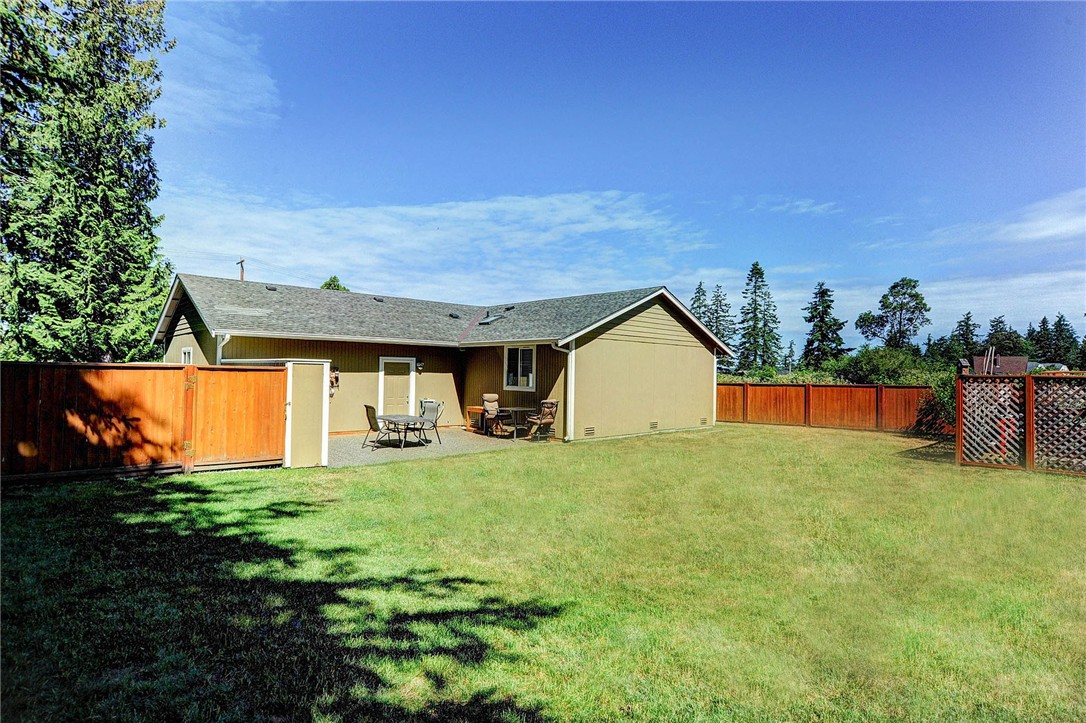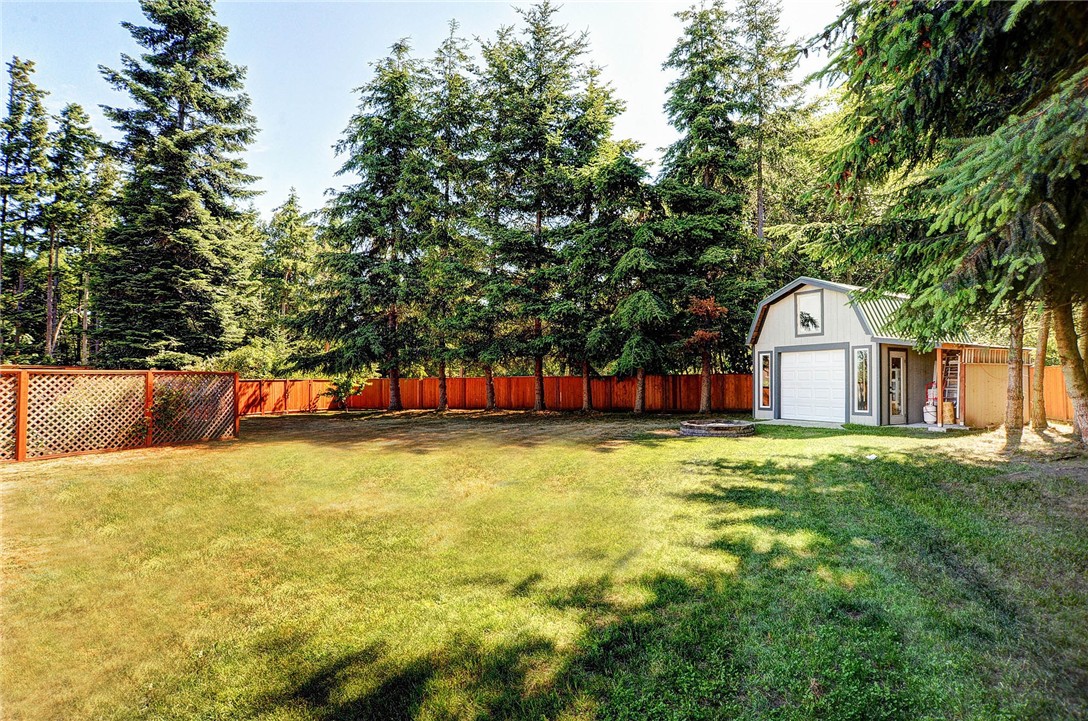 Immaculate 3 bedroom 2 bath rambler with partial sound views! Open floor plan w/ hardwoods throughout, stainless appliances in the kitchen, updated bathrooms & designer painted interior, this home really is move-in ready! Oversized 2 car garage & plenty of room on side of house for add'l cars/RV/boat parking. PLUS a 2 story studio/shop/private retreat in fully fenced yard perfect for entertaining, gardening, and nights around the fire pit! A must see today!