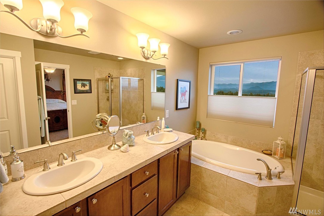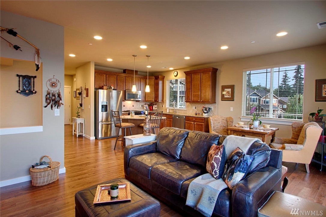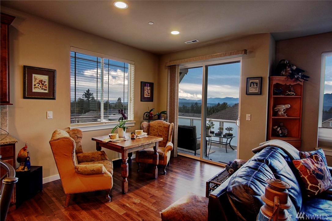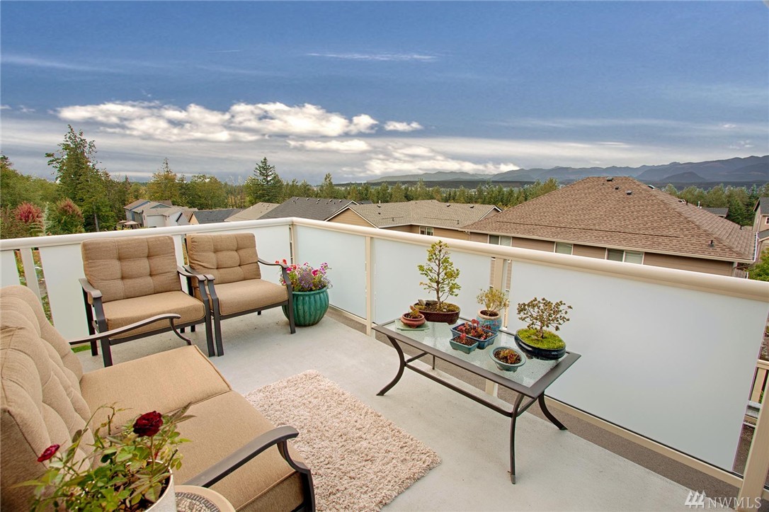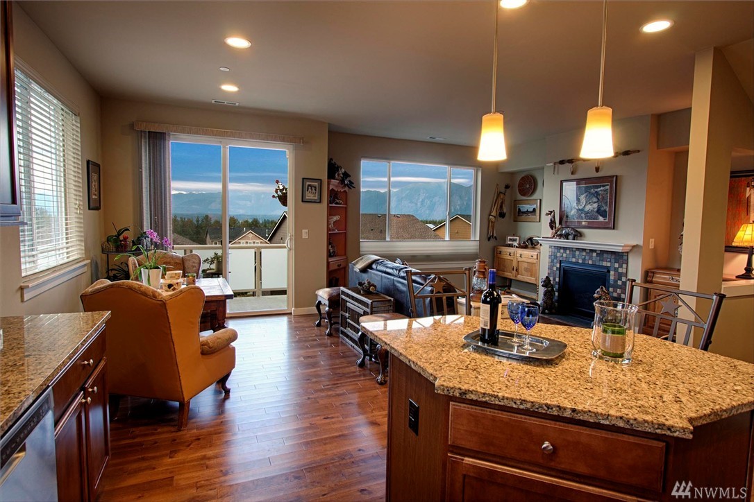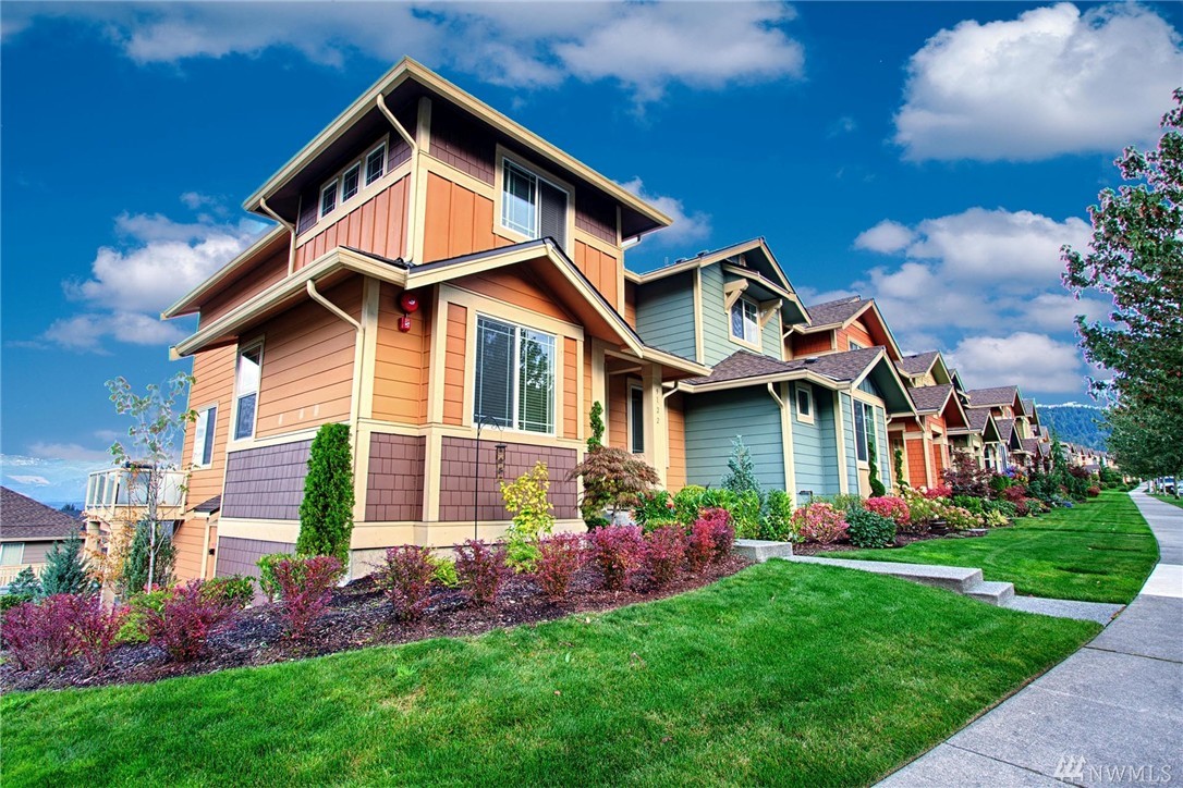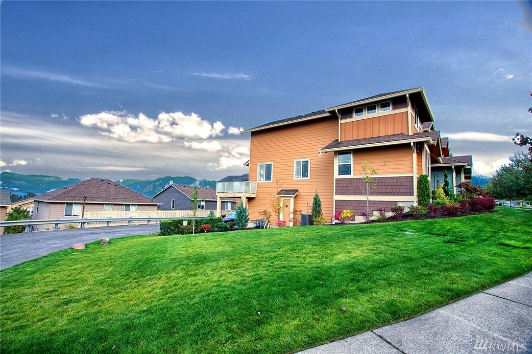 Exquisite Ridgestone townhome features 2 Master Suites, spa inspired baths, plus main floor bedroom with 3/4 bath. Corner location taking in sweeping views of the mountains. Open concept living w/ hardwoods throughout main floor. Corner kitchen w/ island, granite counters, tile backsplash & SS appliances & breakfast bar. Main floor den & beautiful gas fireplace in family room & sliding glass doors to a wrap around deck w/ privacy glass railing. 2 car garage & A/C, $50K lot premium built in 2013!