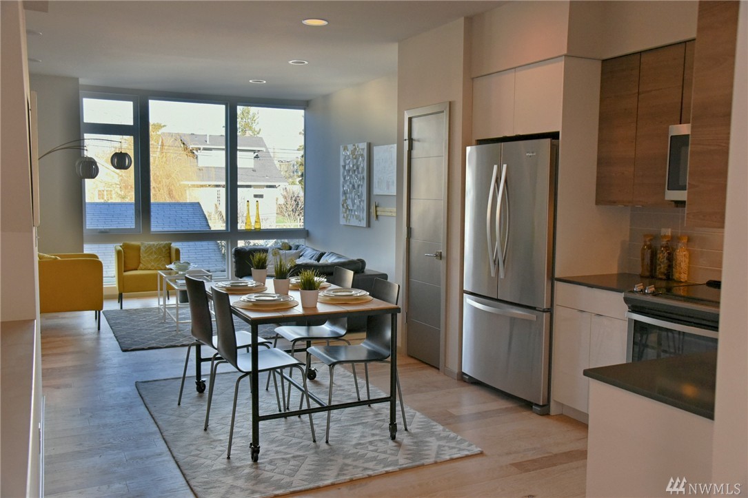 New Custom Townhomes in Columbia City minutes away from light rail. In close proximity to restaurants, coffee shops in a sought after neighborhood. 1300+ sqft of contemporary design, 2 bedrooms + den, 1 full bath on upper and powder room on the main, hardwood floors, quartz countertops and stainless steel appliances + pantry, mini-split / air conditioning. Spacious rooftop deck and one car garage.