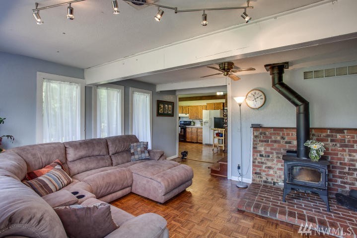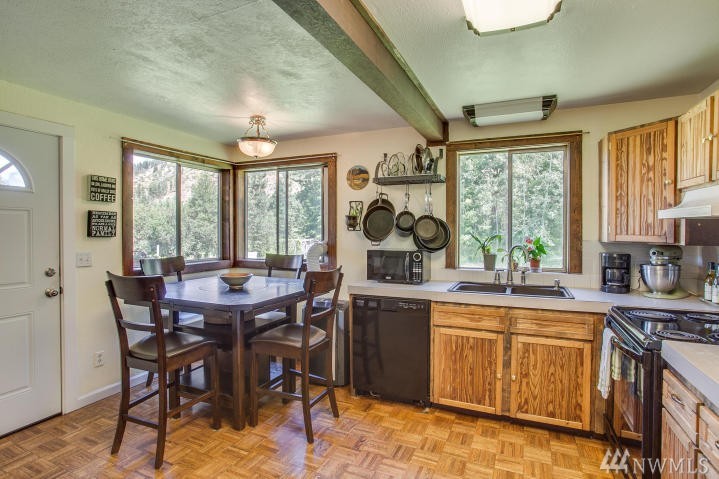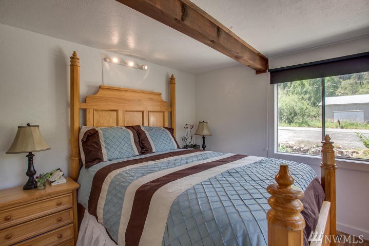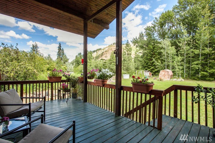 Quaint country home, perfect setting of foothills of Mountain Home. Breezy living room spills into ample kitchen, deck attached for easy moments of peace. Garage/shop has space for apt. Yard is spacious, beautiful established plants & flowers, garden space, shed, private sauna, pond & plenty of level space for outdoor play. Creek side of plat is across street. Property has so much potential, is move in ready! Level acreage and income potential make this property a great investment for anyone.