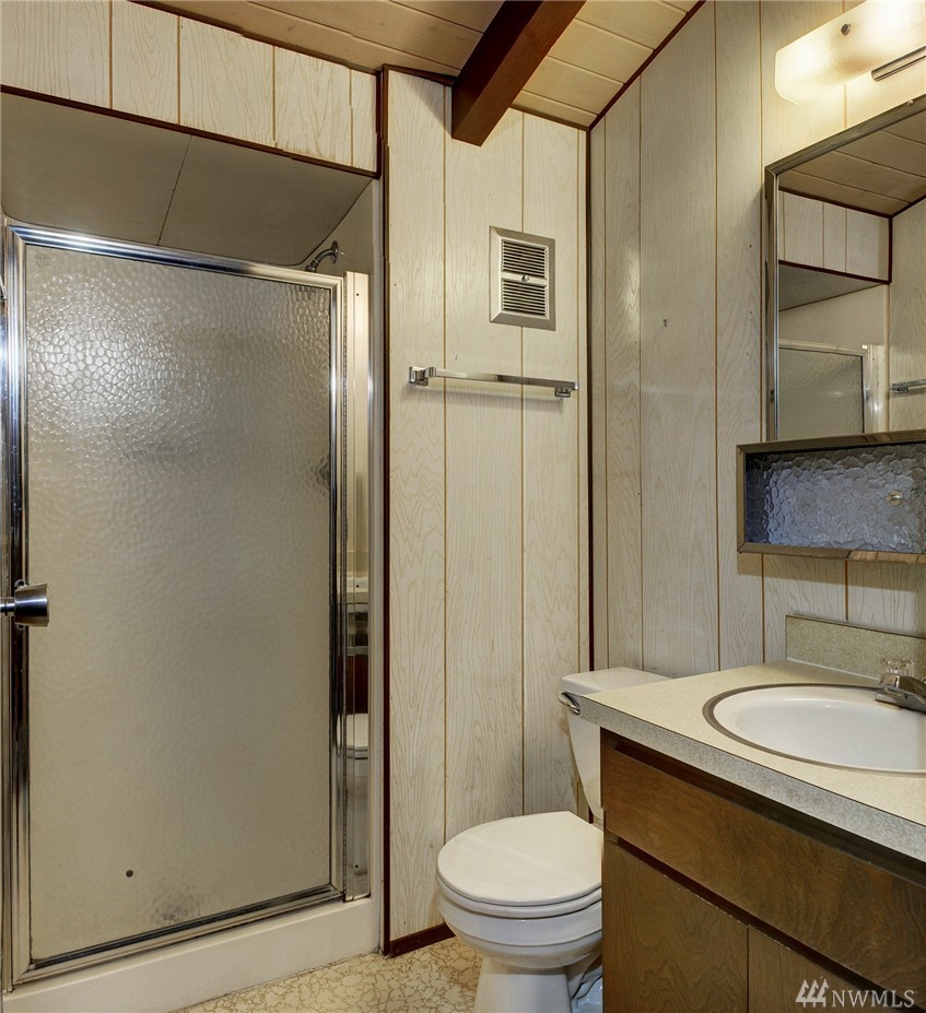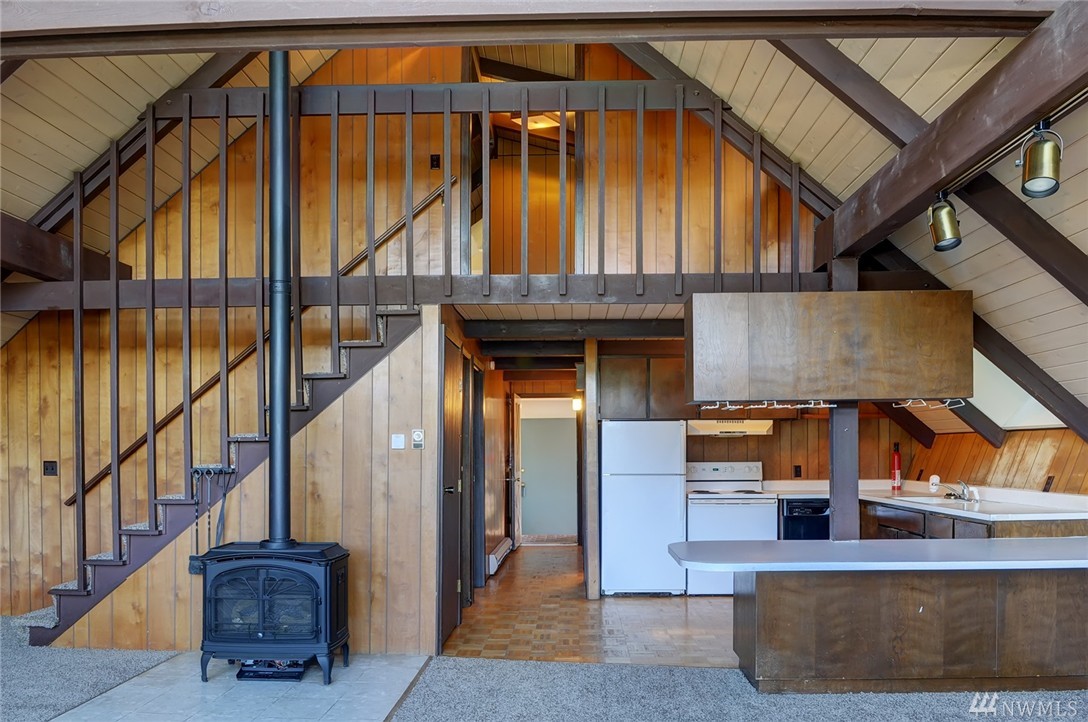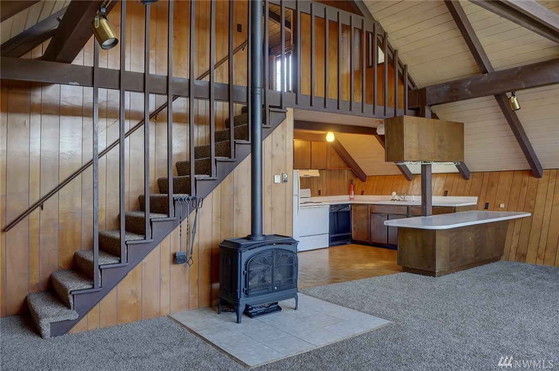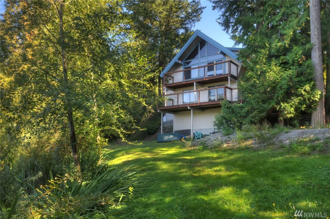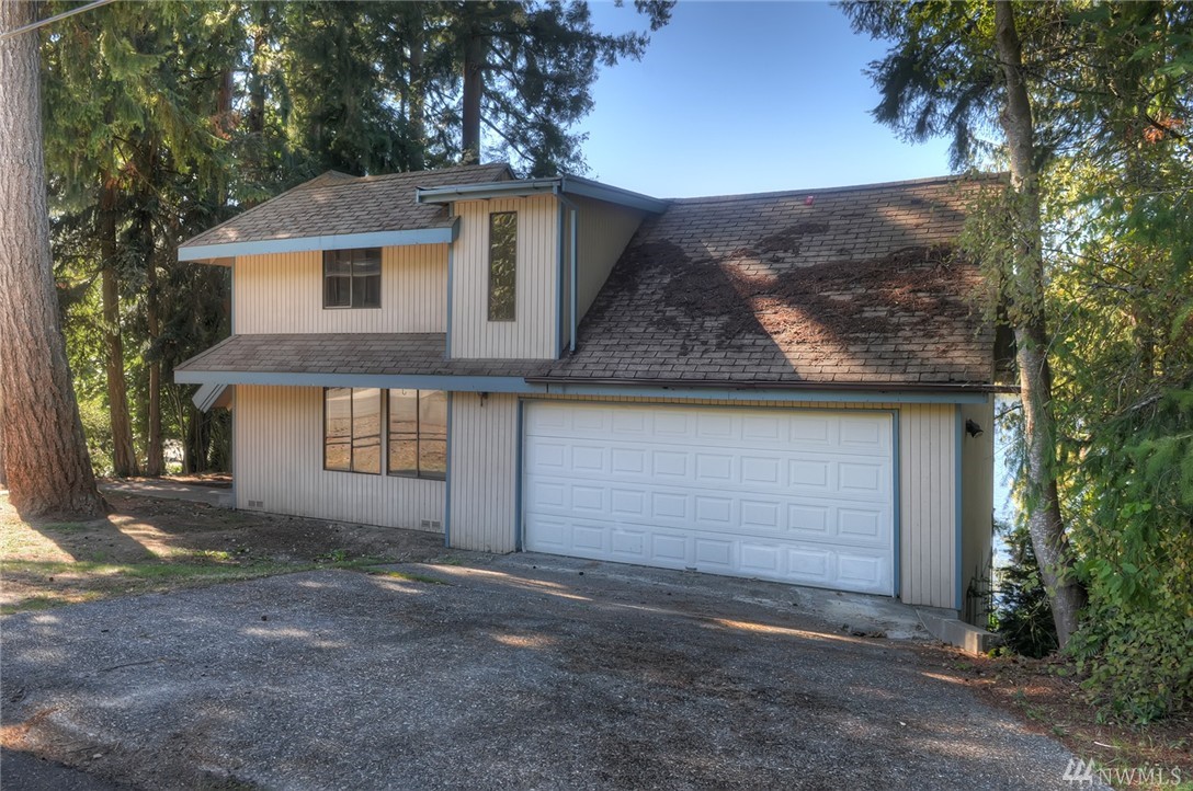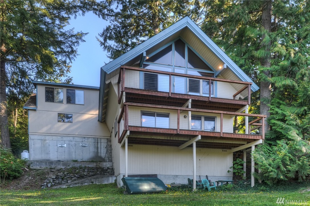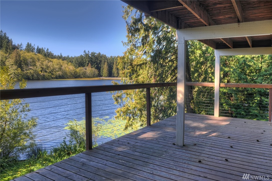 Island Lake Waterfront! True Chalet 70's style, approx 1442 sq ft, wood and light! Lightly updated with new carpet. Roll up your sleeves to make this affordable lakefront home or getaway your own. Beautiful large trees, waterfront access, corner lot - with extra parcels included! Two large newer decks and views of the lake from most rooms. Located just minutes to Silverdale, Keyport Bases, and Highways. This could be your own little piece of paradise. Unique property for buyers with vision!