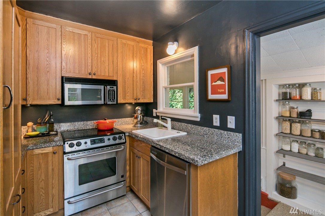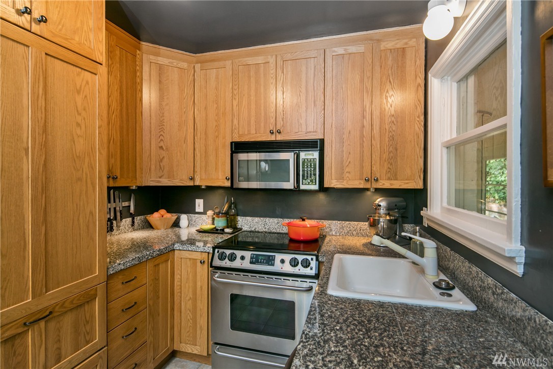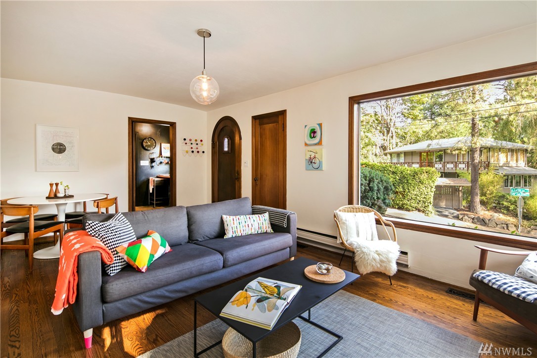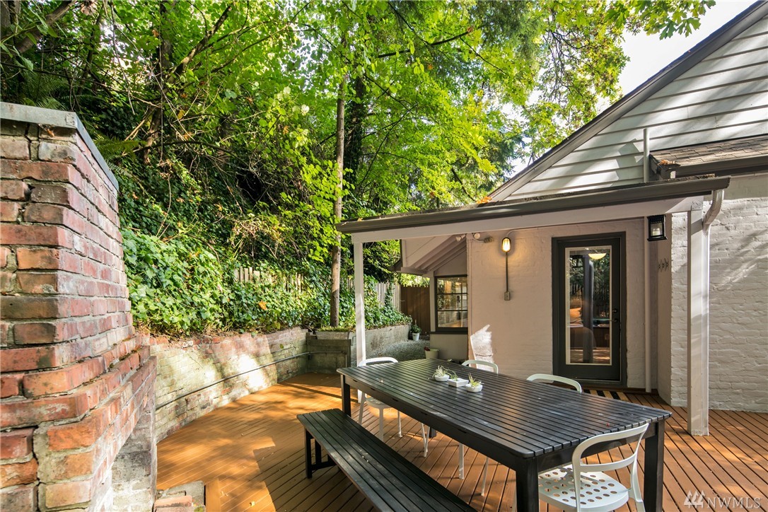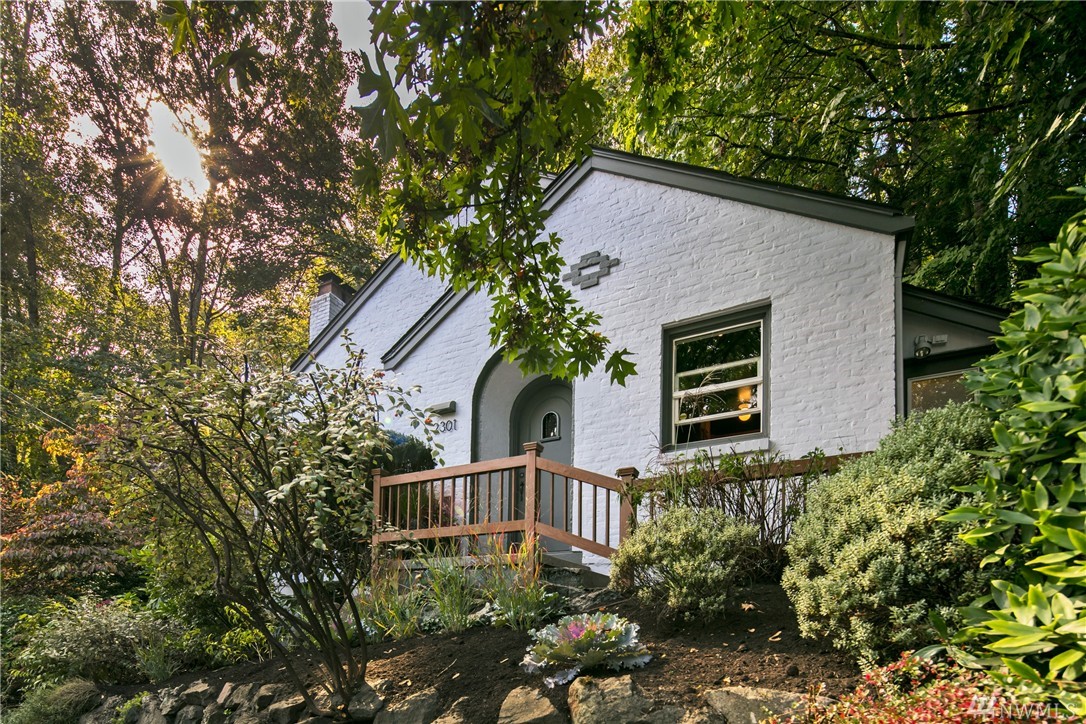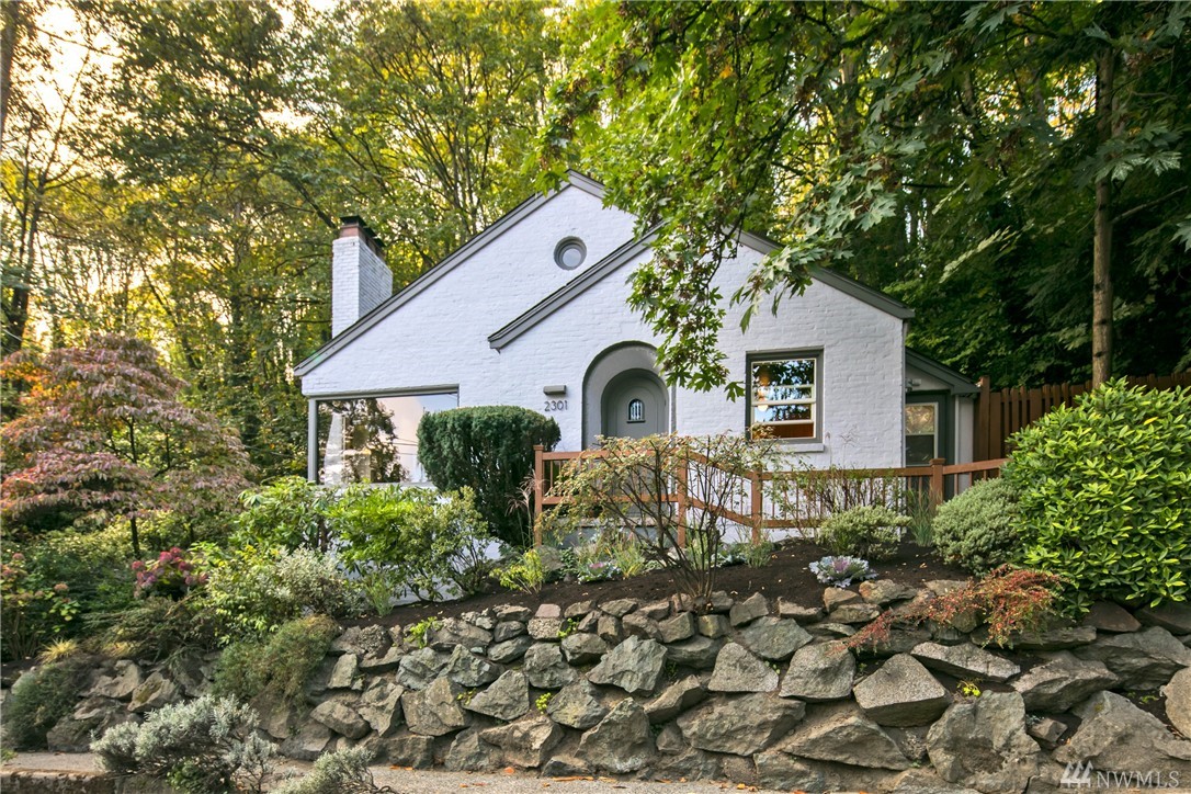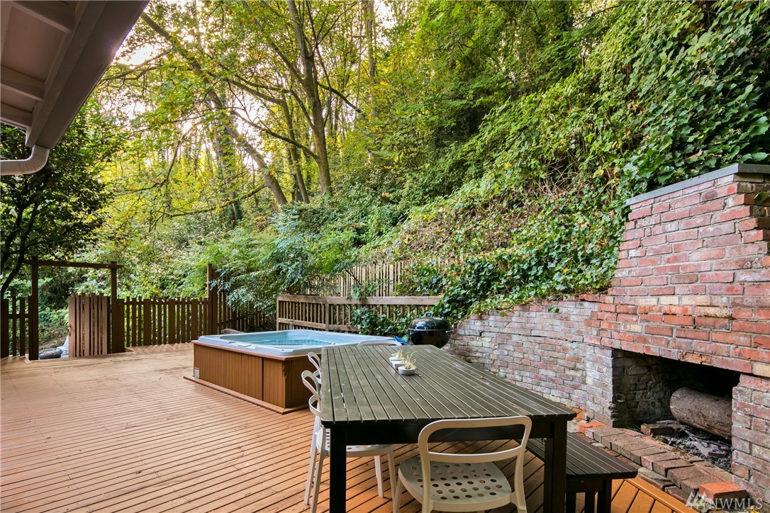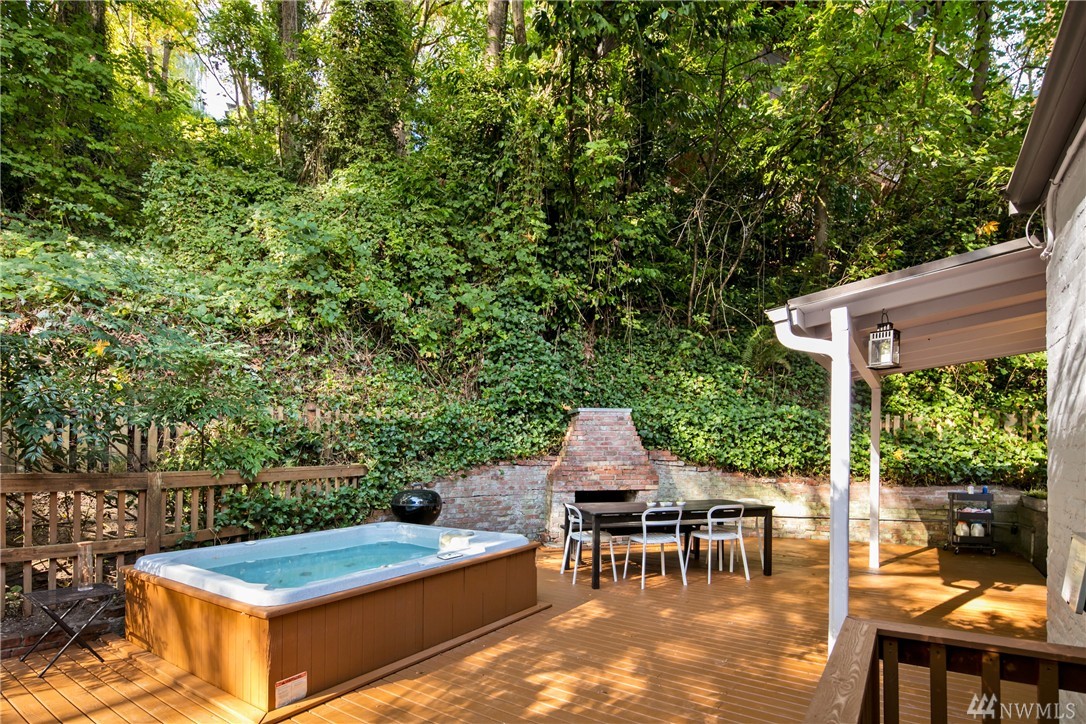 Charm overload! 1930’s storybook cottage w/private backyard oasis. Hardwood floors, wood-burning fireplace, arched doorways, picture windows. Updated kitchen w/raised bar area. 2-BR’s & full bath on main floor. Unwind or entertain in fully-finished basement. Large rec room, wet bar, 3rd BR (non-conforming) plus ¾ bath. Incredible private back deck is an extension of the living space w/cozy brick fireplace, hot tub & room to garden - surrounded by lush greenery! 5-min to UW, 520 and I-5. See it!
