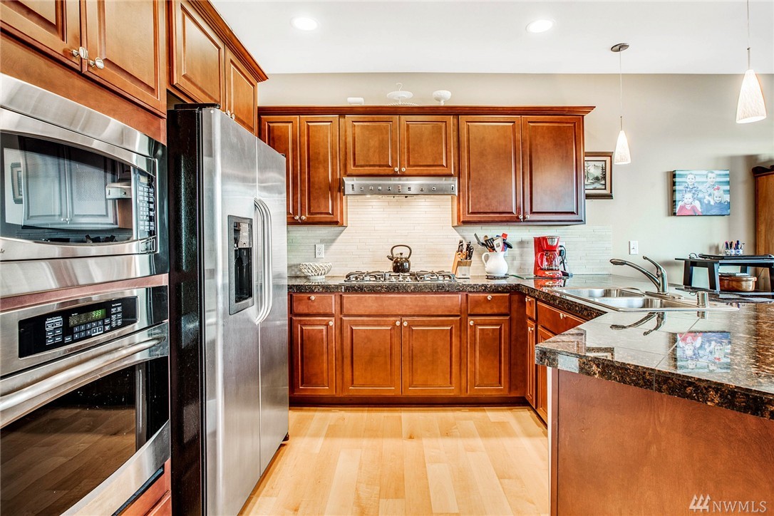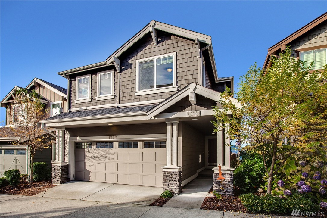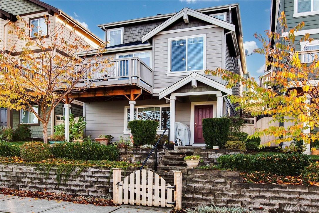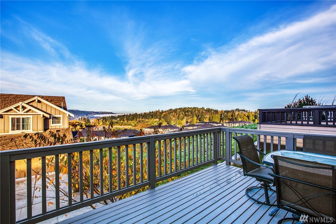 Impeccable Vista Park DR Horton VIEW home close to everything in Issaquah Highlands! First time on market, hardwoods grace entire main, open kitchen design w/nook, dining & living plus large VIEW deck! The Madrona plan offers 3 bedrooms & open office upstairs, 3.25 baths, a walk-out daylight basement family room or guest suite with 3/4 bath & includes a 2-car garage at main. Extraordinary westerly views of Olympic Mtns & sunsets! Next to Grand Ridge Plaza & park-n-ride. A/C, all appliances stay.