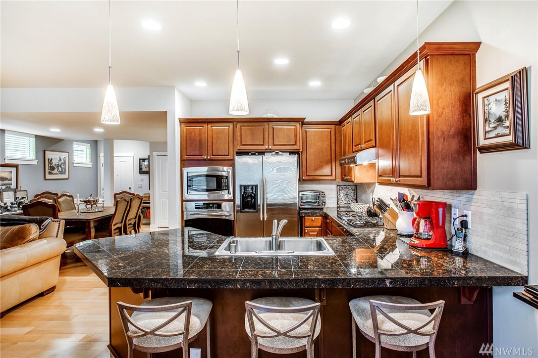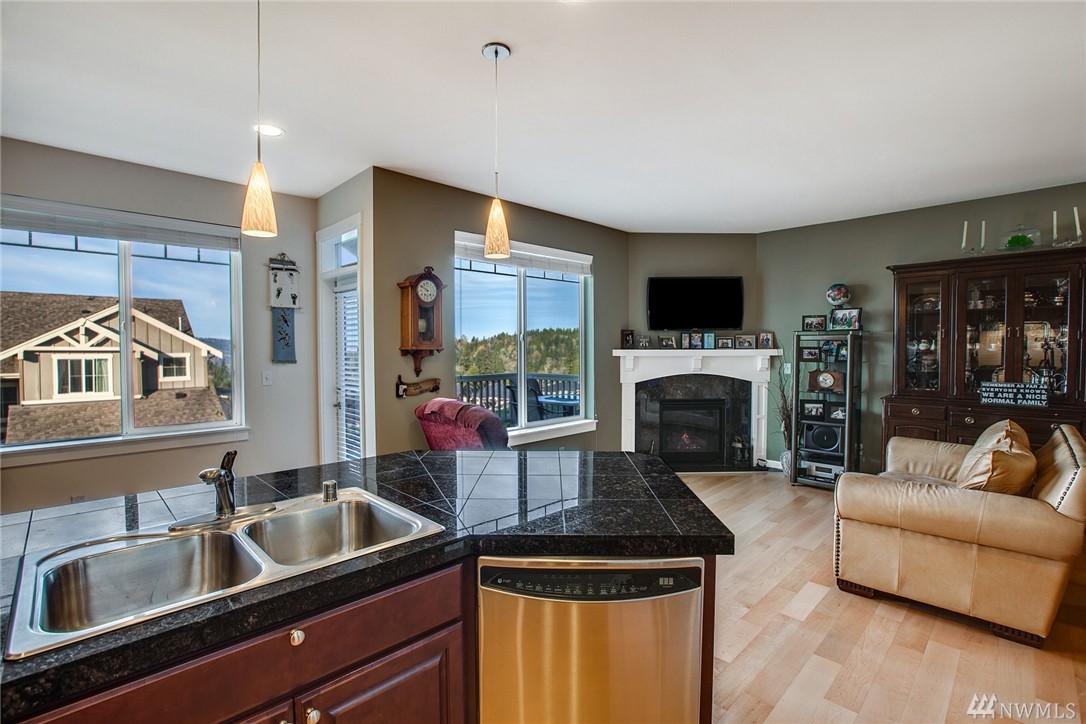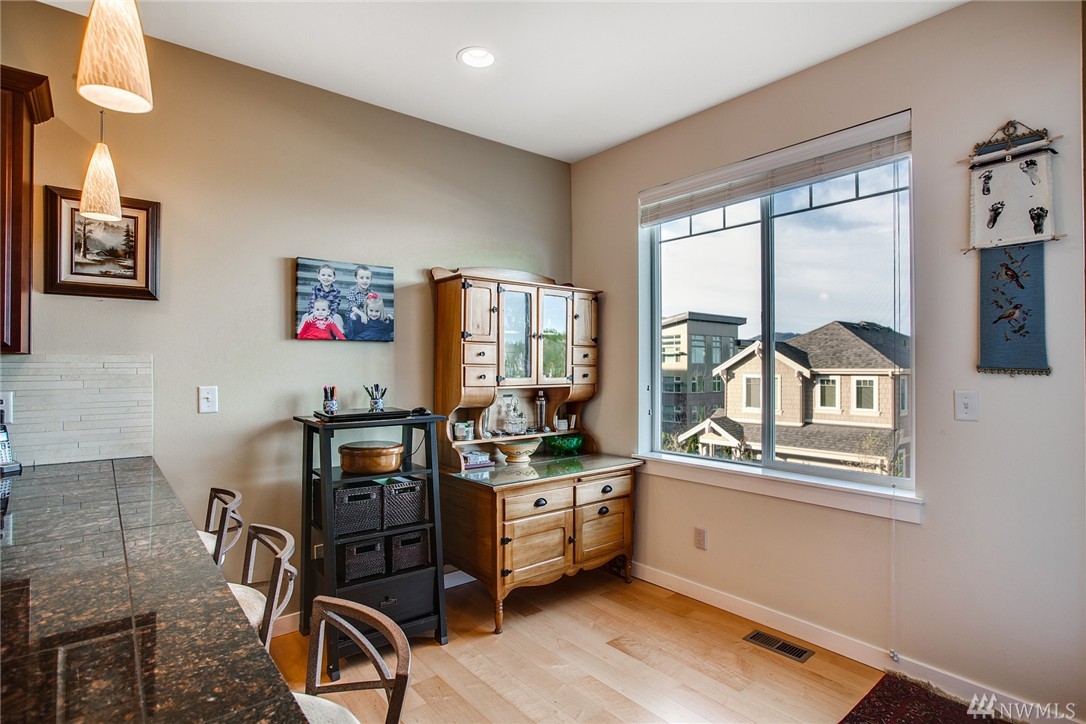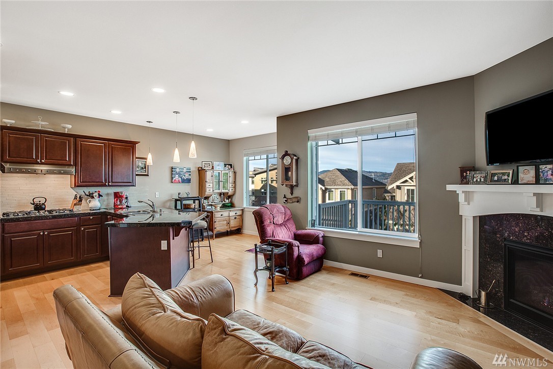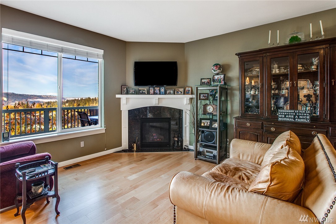 Impeccable Vista Park DR Horton VIEW home close to everything in Issaquah Highlands! First time on market, hardwoods grace entire main, open kitchen design w/nook, dining & living plus large VIEW deck! The Madrona plan offers 3 bedrooms & open office upstairs, 3.25 baths, a walk-out daylight basement family room or guest suite with 3/4 bath & includes a 2-car garage at main. Extraordinary westerly views of Olympic Mtns & sunsets! Next to Grand Ridge Plaza & park-n-ride. A/C, all appliances stay.