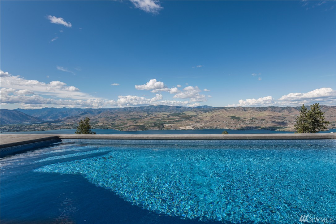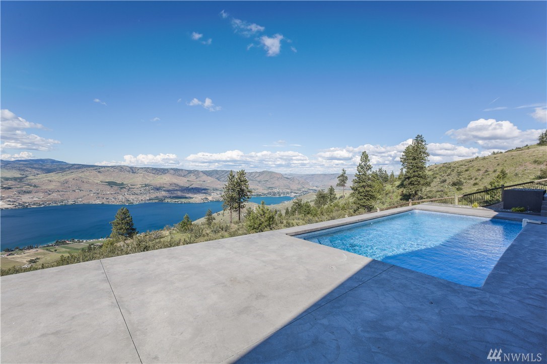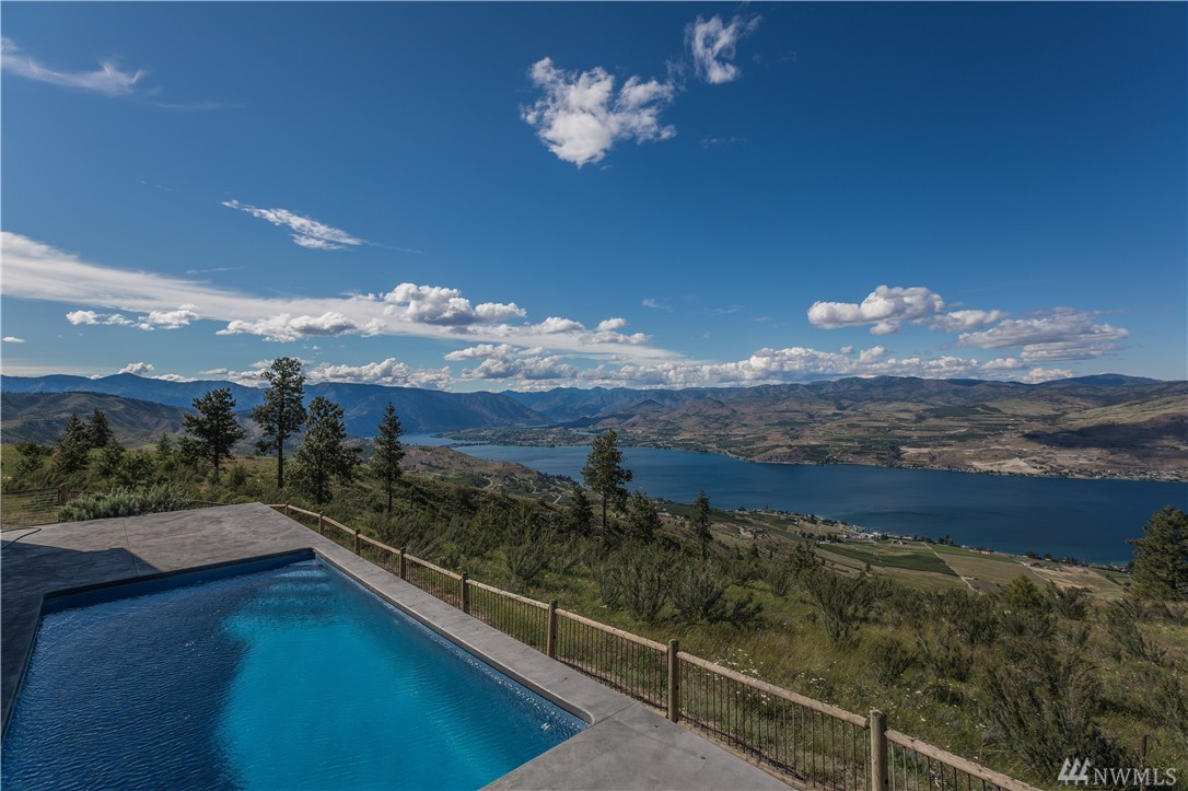 Sprawling custom on 24+ acres of natural beauty in Lake Chelan's premier gated community, Hawks Ridge! Unrivaled privacy & 360 degree lake, mtn, & territorial views from this estate property. Modern rustic, 3400sq+ open floor plan home offering high end feat incl: aluminum clad windows, solid fir doors, rock fireplace, & reclaimed timbers. Massive ceilings & windows allow abundant light & views over the expansive patio & pool. Opportunity to own an irreplaceable legacy home.
