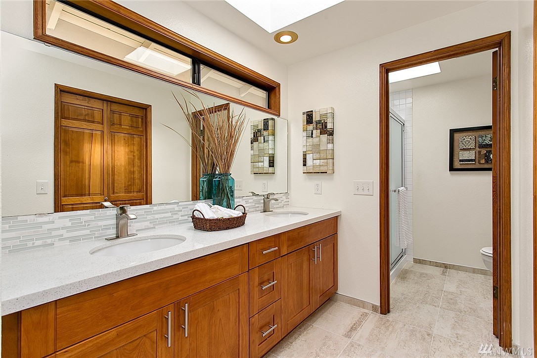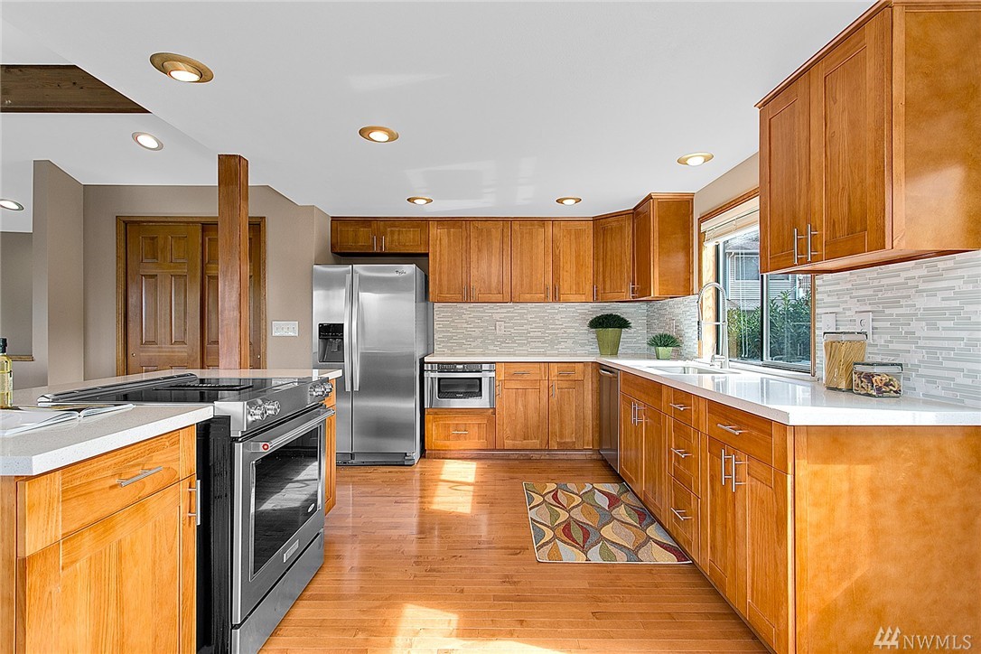 Fabulous tri level home in Edmonds Bowl w views of Sound & Mtns. Open concept living with new hardwoods combine living, dining & kitchen. Brand new kitchen with new cabinets, quartz counters, tile backsplash and stainless appliances. 3 spacious bedrooms, 3 ba. Master w/ new shower, tiles, vanity. New carpet and hardwoods throughout. Lower level showcases great room with fireplace, private office, 3rd bath, and laundry. New Int/Ext paint. Tankless water heater. Check out the 3D tour link!