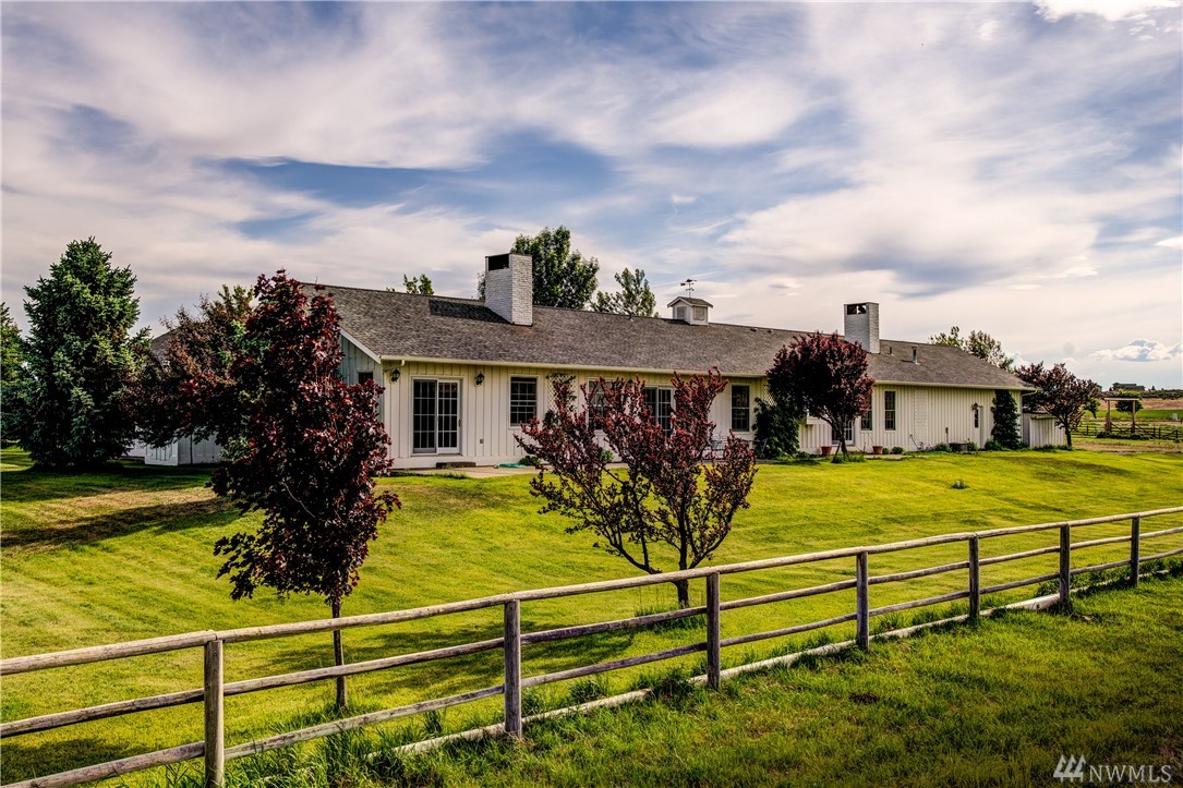 Equestrian Estate on 29+ irrigated acres. For your horses there is a large 5 stall barn w/heated tack room & wash room, outdoor arena, fenced pasture & riding trails. Private guest quarters w/kitchen & full bath. Beautiful ranch style home features a spacious great room w/fireplace, wet bar & vaulted ceilings, gourmet kitchen w/granite counter tops, comfortable family room off kitchen w/built in shelves, large owner's suite w/soaking tub & walk in closet & guest bedroom w/bathroom. Great views!