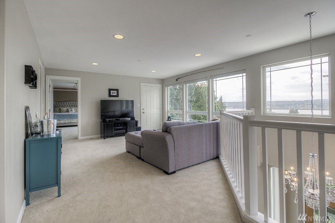 Enjoy the gorgeous westerly views of Lake Washington and Olympic Mountains! A sunny, contemporary, tri-level home, recently updated, boasts many upgrades. New paint, granite, lighting, furnace/AC, solar blocking window shades, PVC roof, French doors, generator hook up and much more! From the kitchen & bedrooms, 10ft ceilings & oversized wrap around decks you'll love this spacious 5 bedroom, 4 bath home with sunset views from almost every room. Lake Washington Schools, & waterfront park nearby!