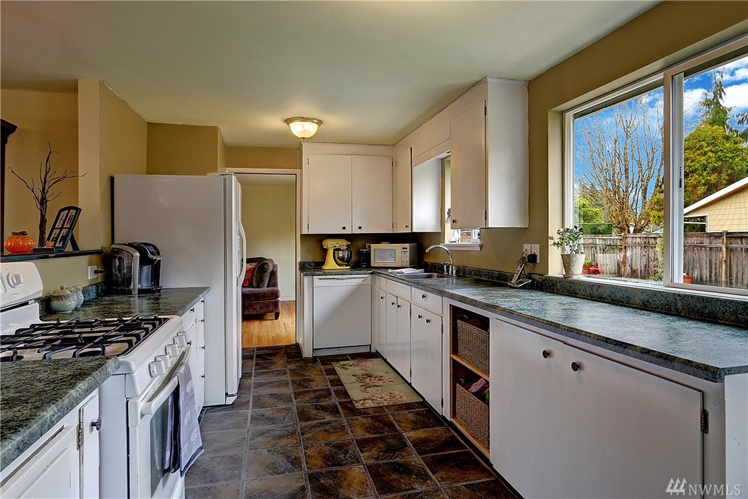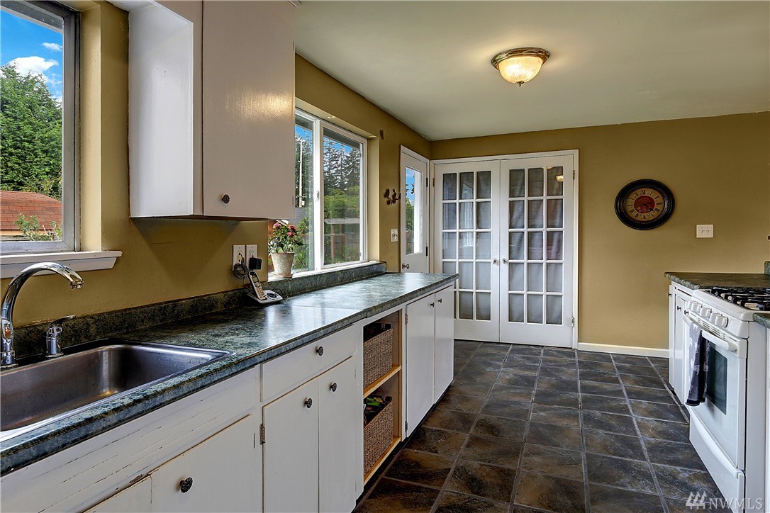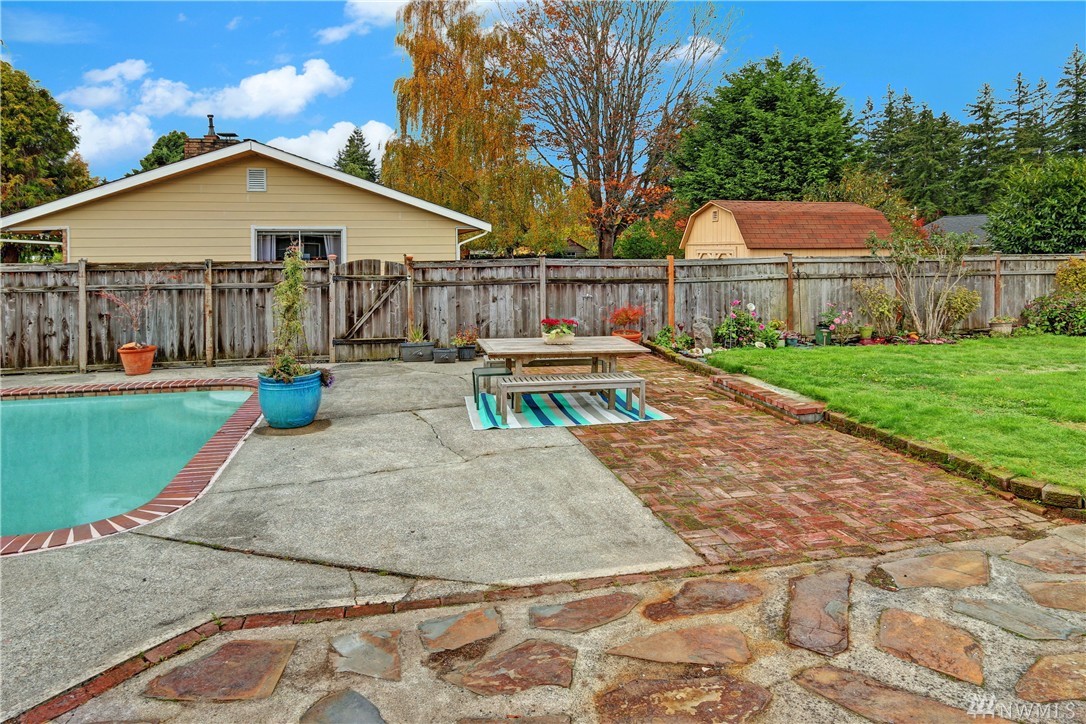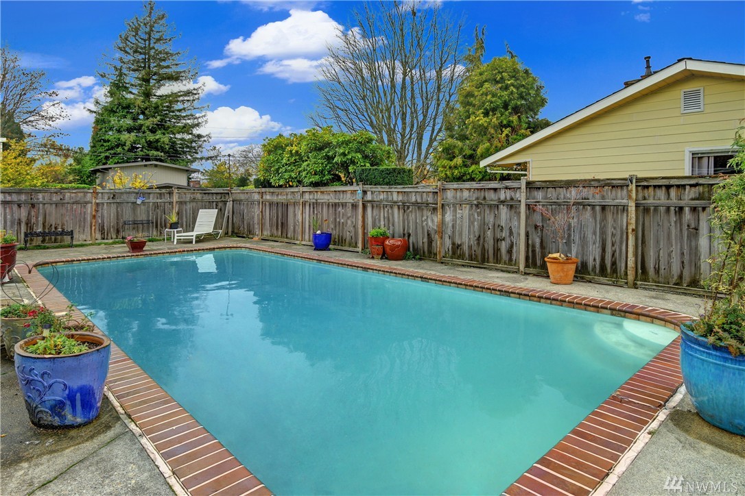 This darling rambler is located just minutes from downtown. Enjoy all Edmonds has to offer from shopping, restaurants and entertainment. This south facing home is bathed in light and offers a circular floor plan that is perfect for entertaining. Other features include an open kitchen/dining room, 3 bedrooms, 1 3/4 baths, gas heat, wood burning fireplace, all situated on a large corner lot. Enjoy your summer days and evenings relaxing by the pool in this completely fenced back yard.
