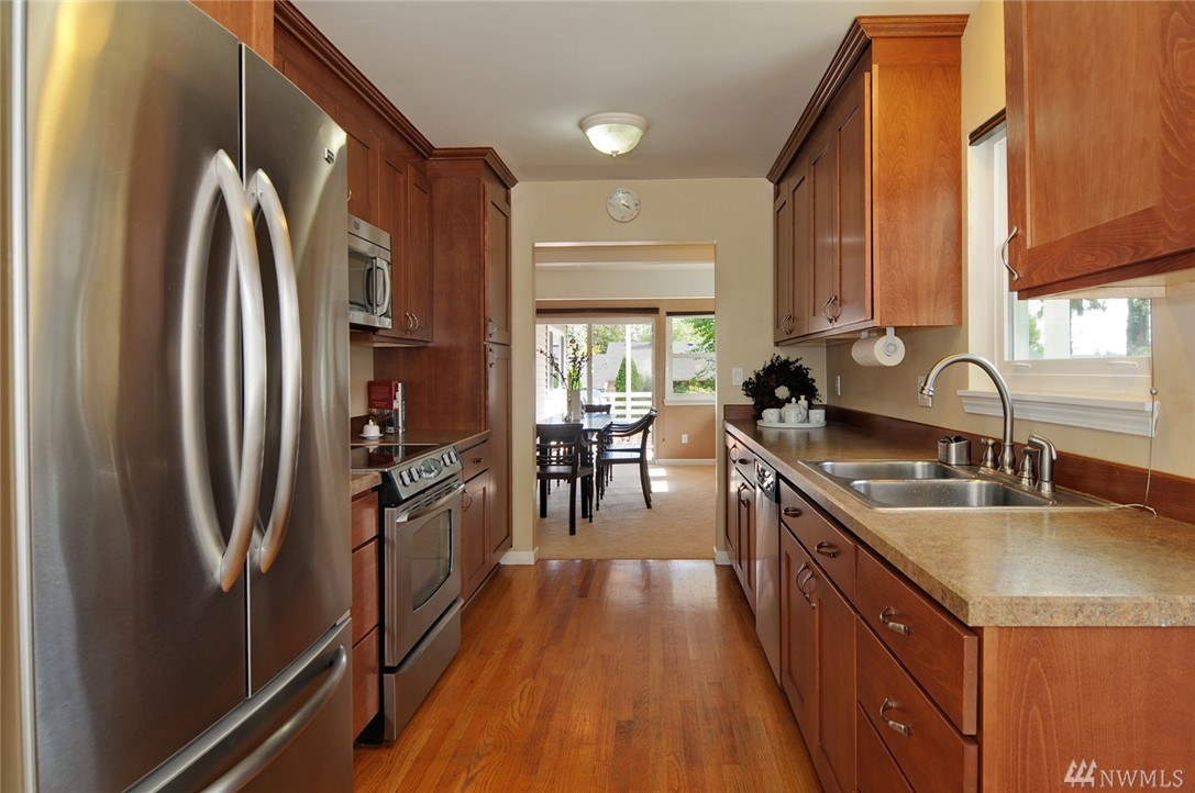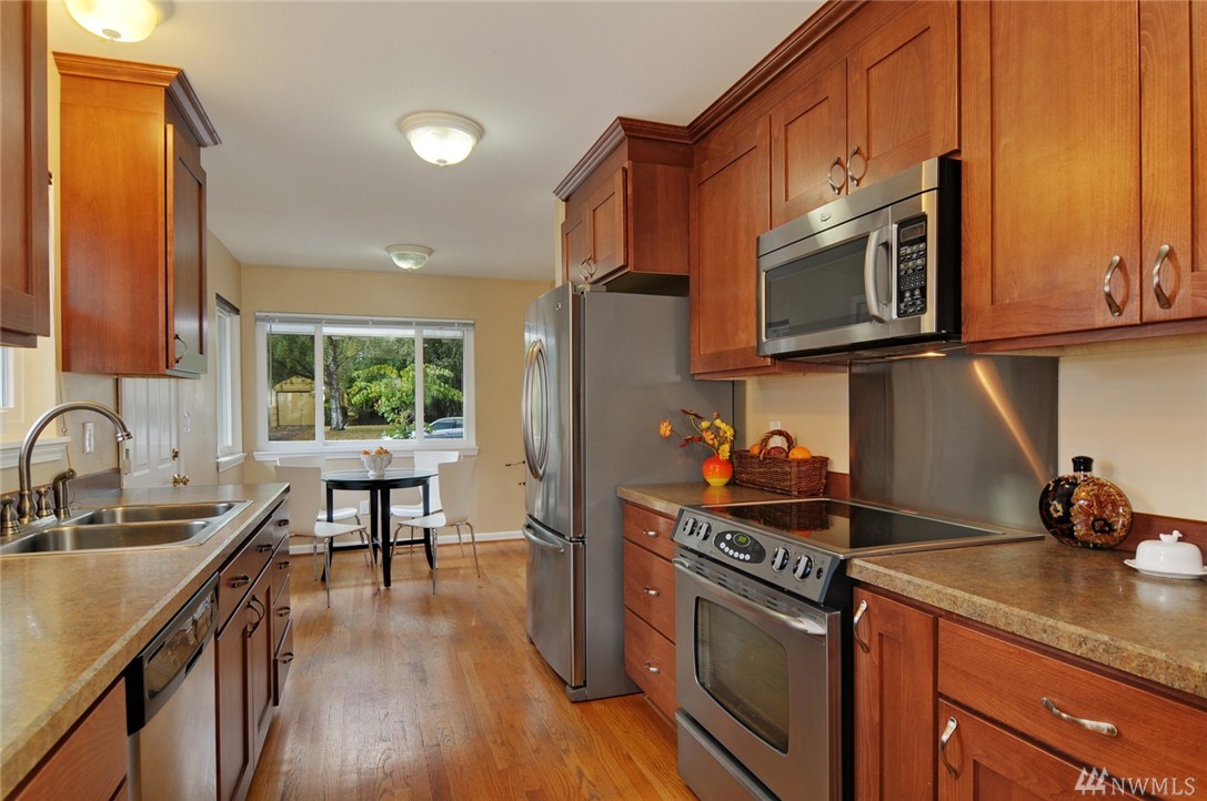 Tranquil & inviting Wedgwood home with many upgrades. Remodeled newer kitchen with stainless appliances. Nice master suite on main floor with 3/4 bath, 2 additional beds on main floor (3 total). Clean basement with additional room/office & extra storage. New windows, copper plumbing & newer electrical. Large level lot & detached garage. Quiet street in the heart of Wedgwood.