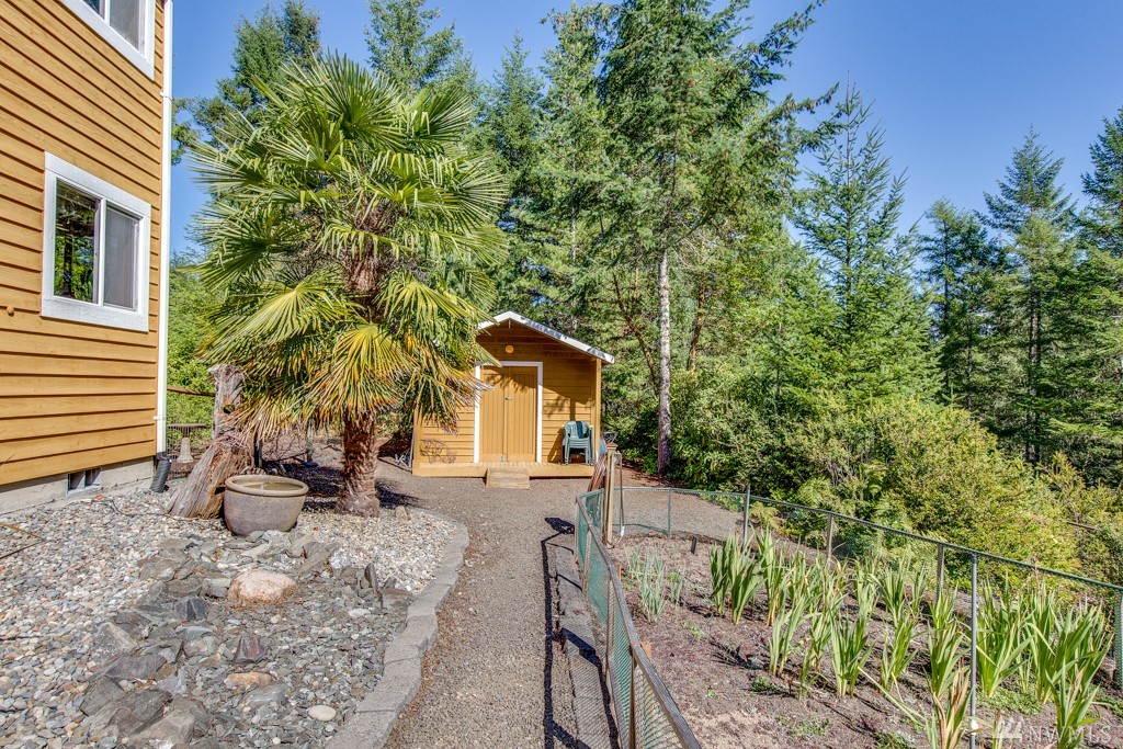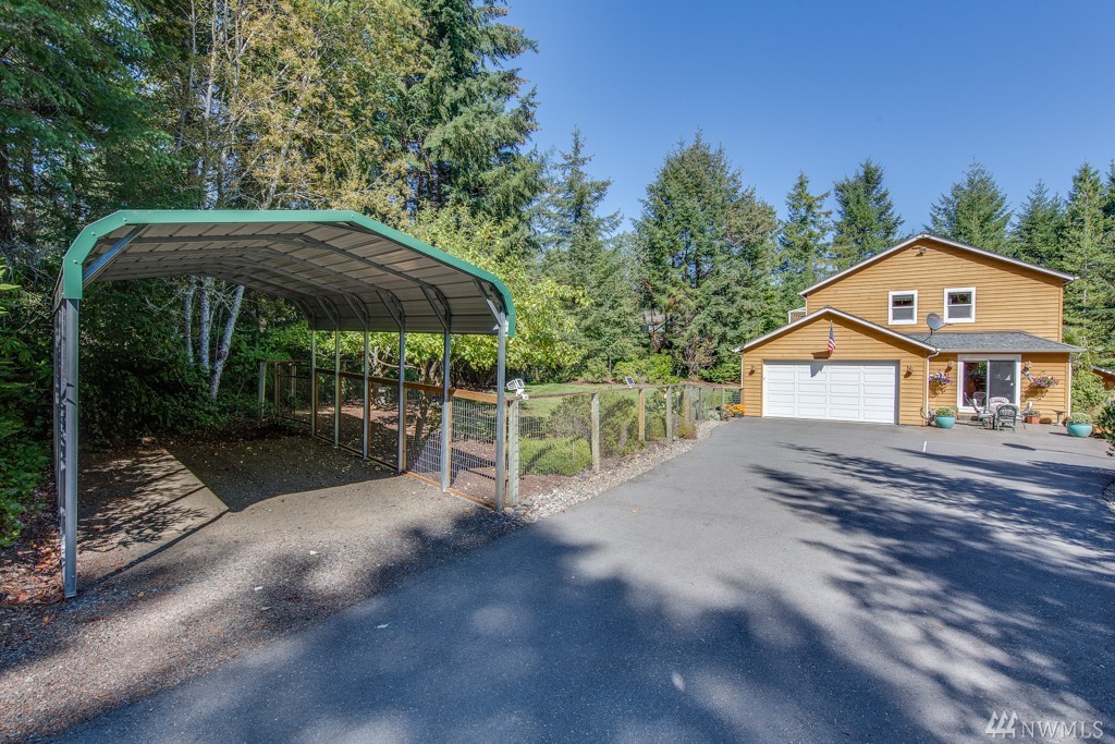 Custom built on 5 acres! This property offers trails to explore, beautiful grounds & ownership in Community Beach for bonfires, oysters & clams! 3 beds+bonus rm & laundry rm upstairs! Kitchen has TONS of maple cabinets, tile floors, large island & is open to great room w/ propane fp & built-ins. Sunny solarium off master for peaceful morning coffee. Quality features such as heat pump, cedar siding, wired for generator. Fully fenced front, fruit trees, garden space, sprinklers & large shed. CKSD