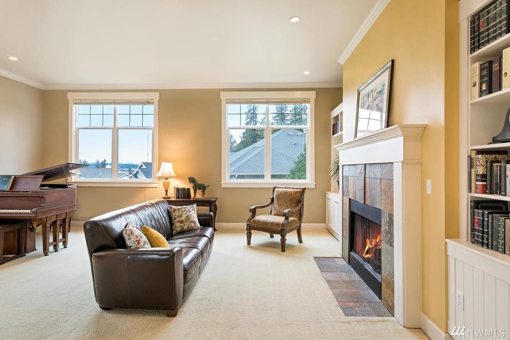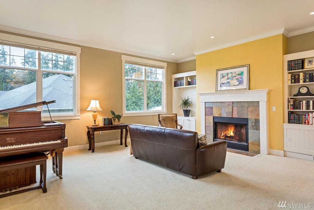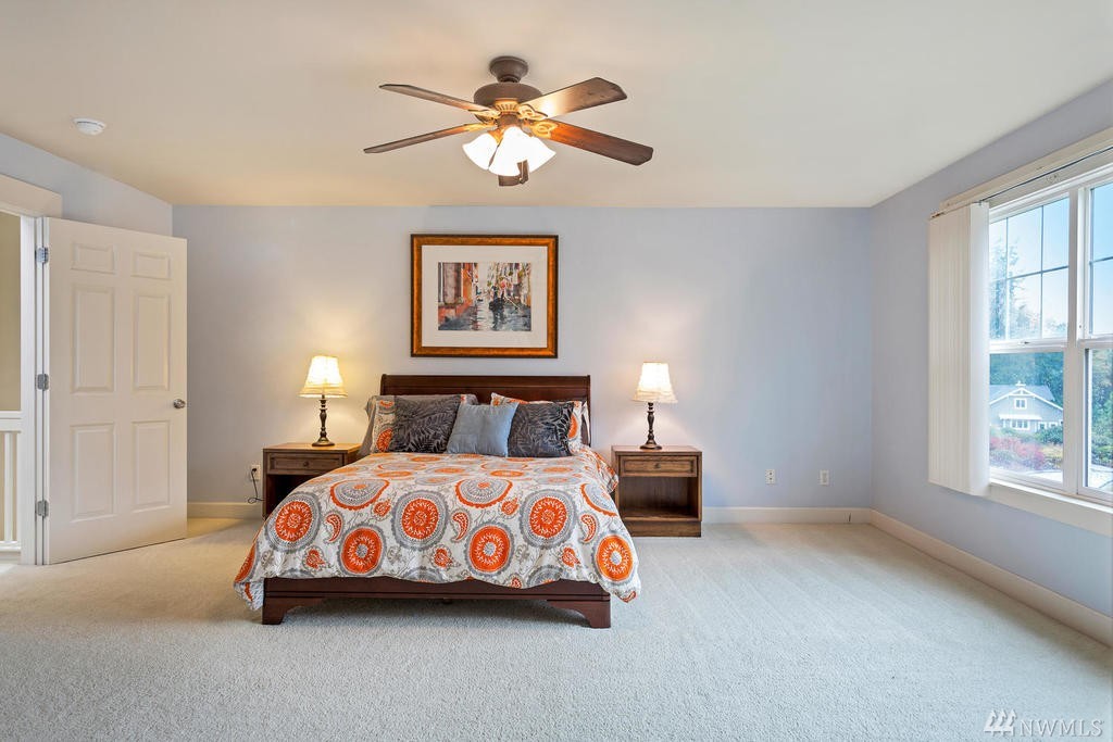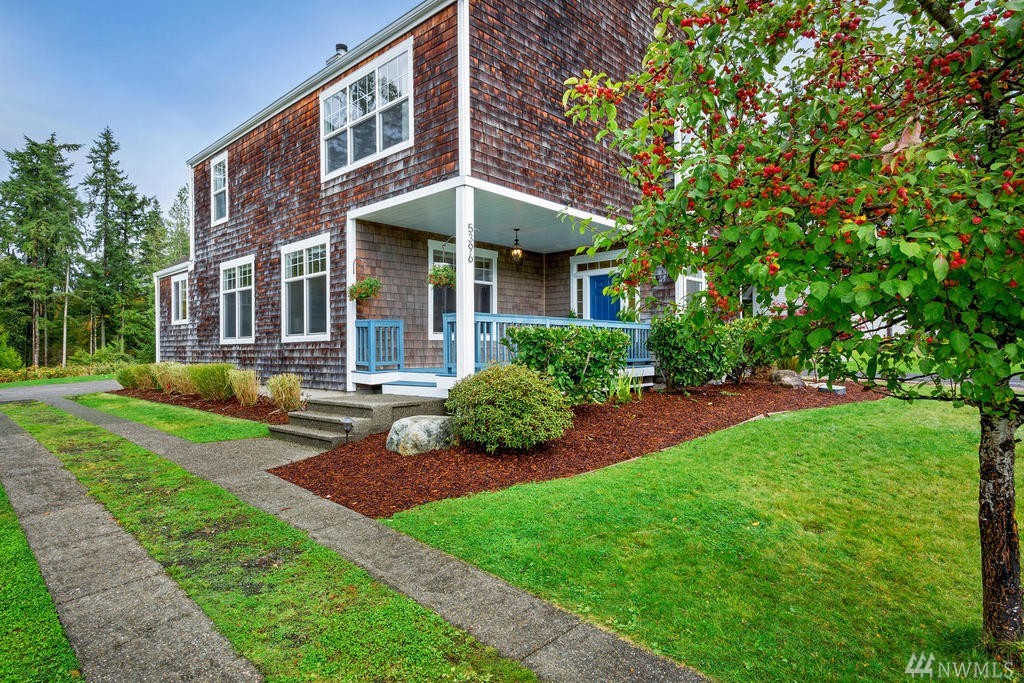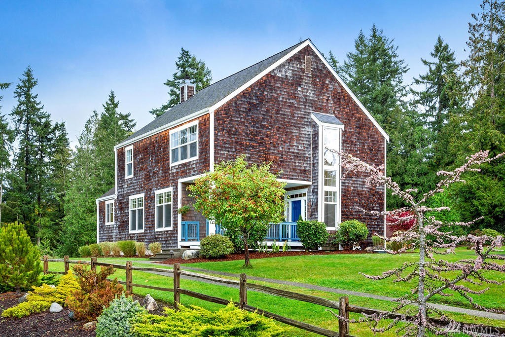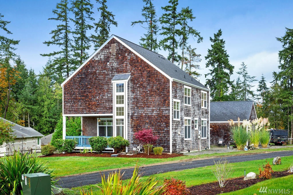 Beautiful Cape Cod style home overlooking the Mountains & Sound, this unique property is turn-key. Cozy up to the propane fireplace in the spacious sunken living room. Features include: New granite countertops, interior paint, REAL hard wood flooring, office/den on main level, built-in bookcases, lots of windows & high ceilings. Master Bedroom w/ sparkling water views, 2 walk-in closets & large bathroom w/ jetted tub. Relax or entertain on the upgraded patio. Community beach rights included!