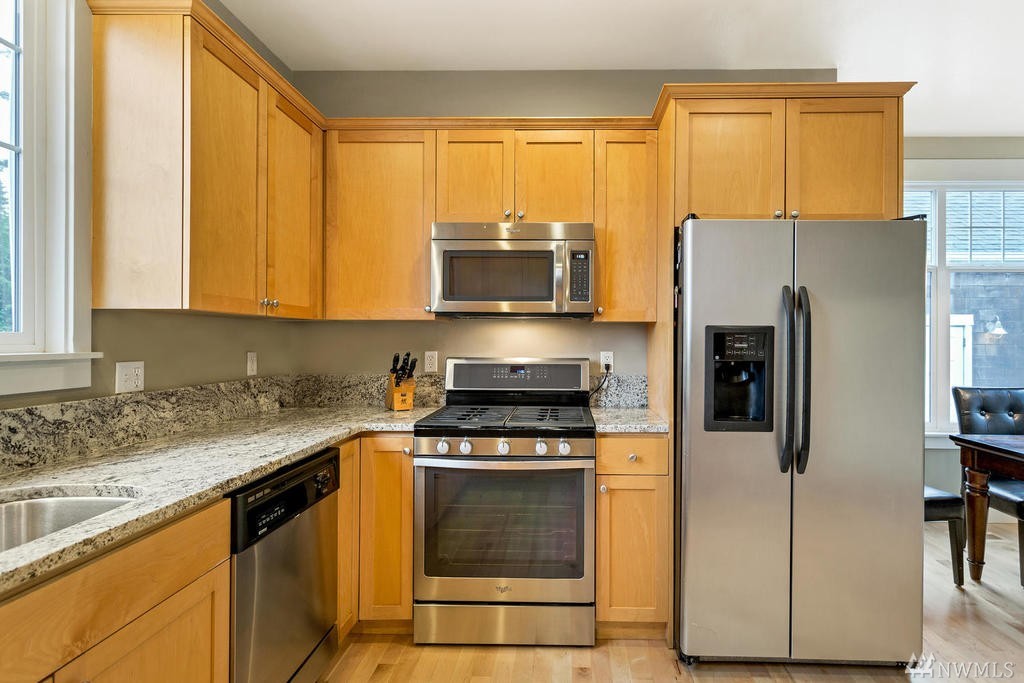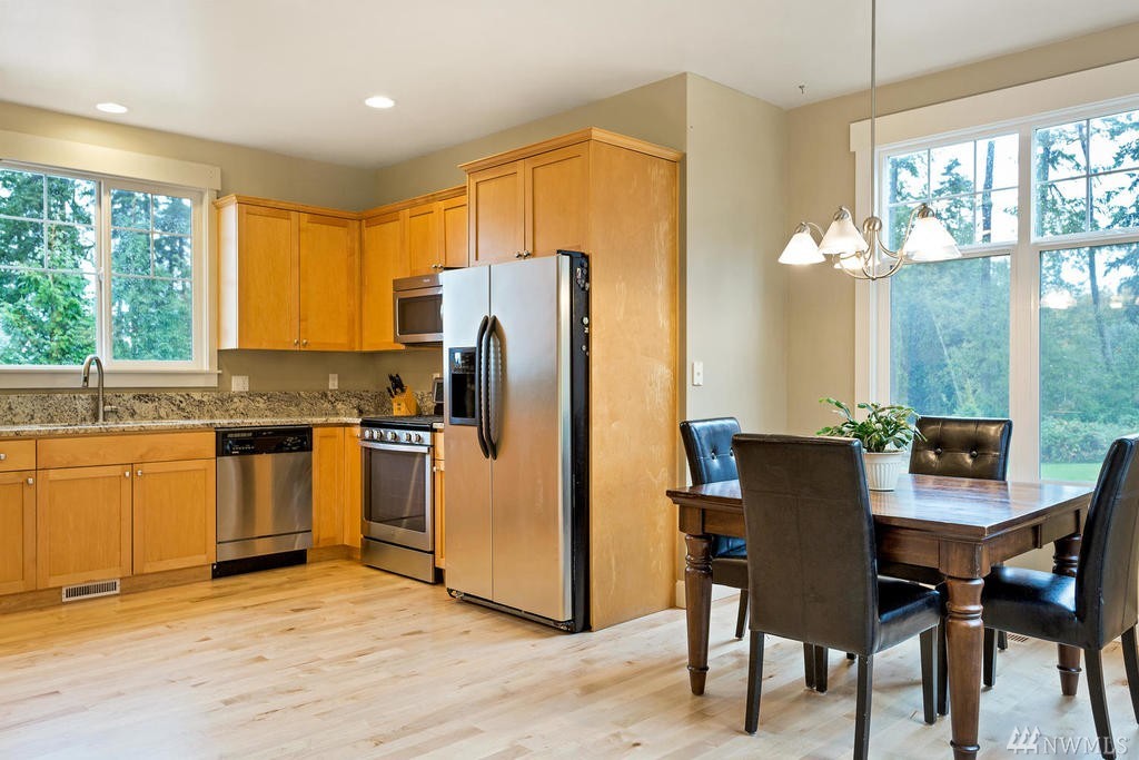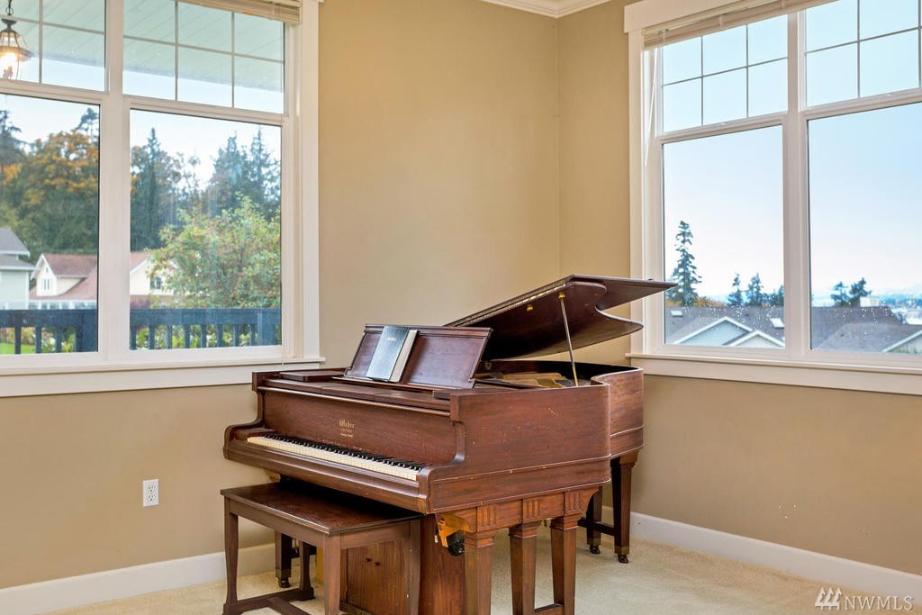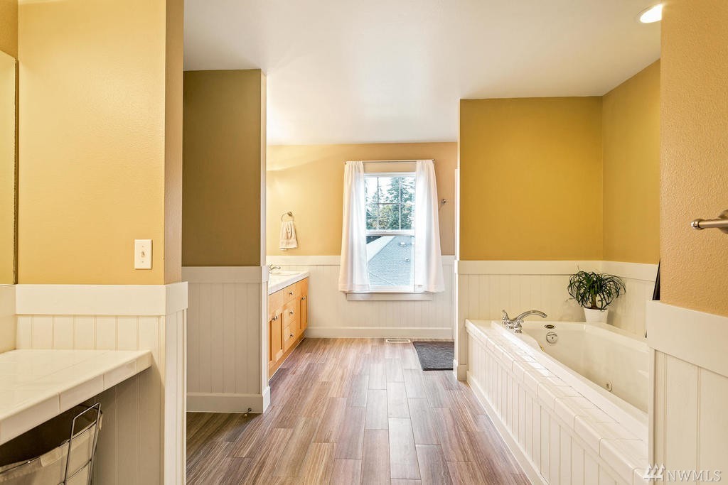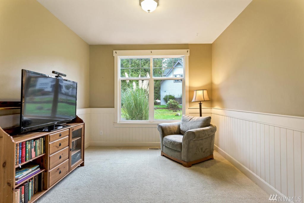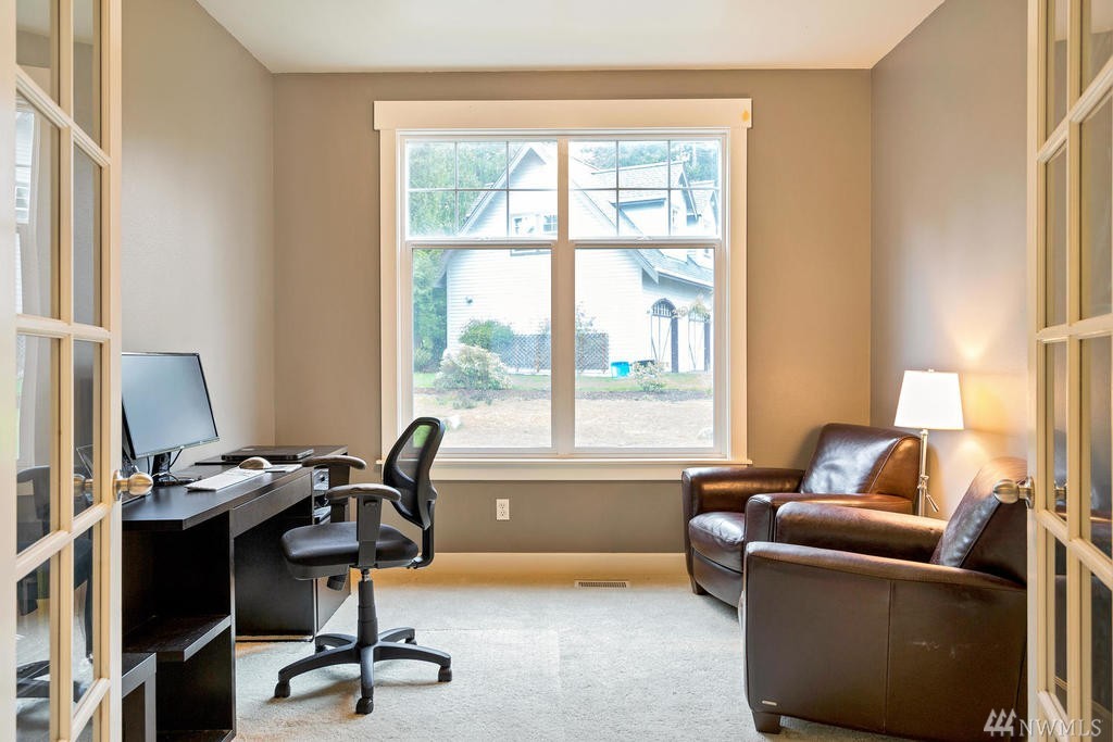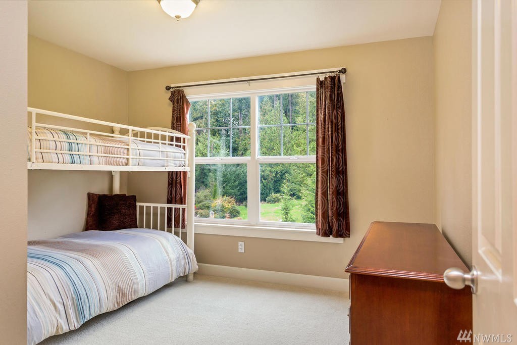 Beautiful Cape Cod style home overlooking the Mountains & Sound, this unique property is turn-key. Cozy up to the propane fireplace in the spacious sunken living room. Features include: New granite countertops, interior paint, REAL hard wood flooring, office/den on main level, built-in bookcases, lots of windows & high ceilings. Master Bedroom w/ sparkling water views, 2 walk-in closets & large bathroom w/ jetted tub. Relax or entertain on the upgraded patio. Community beach rights included!