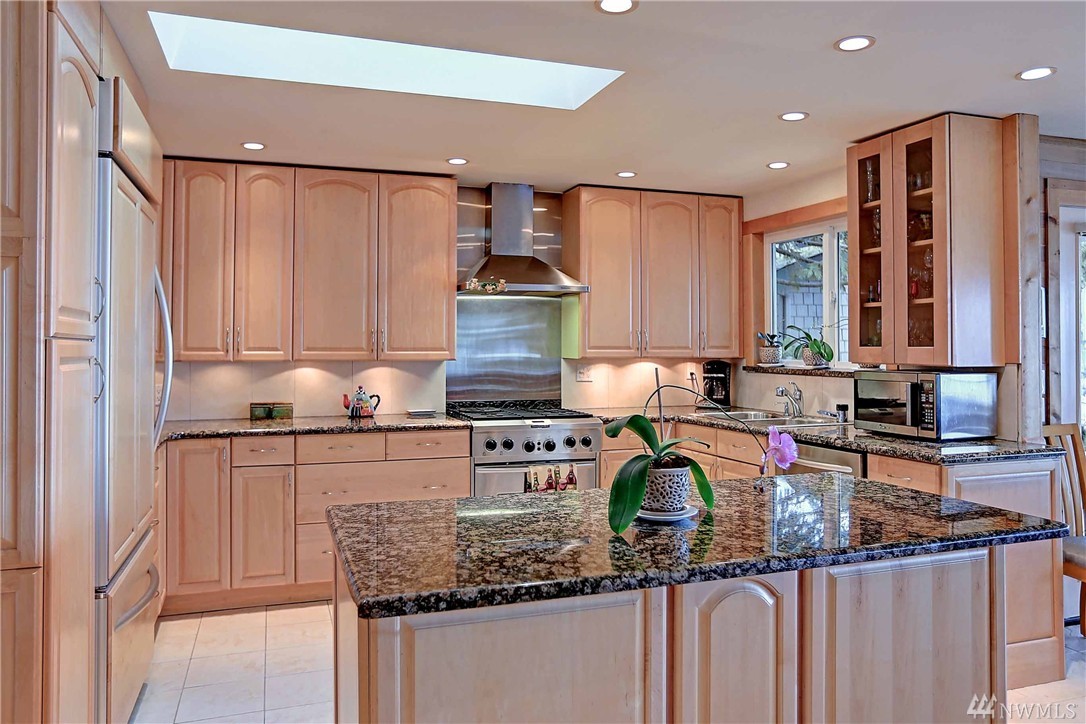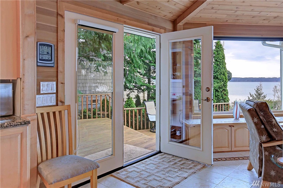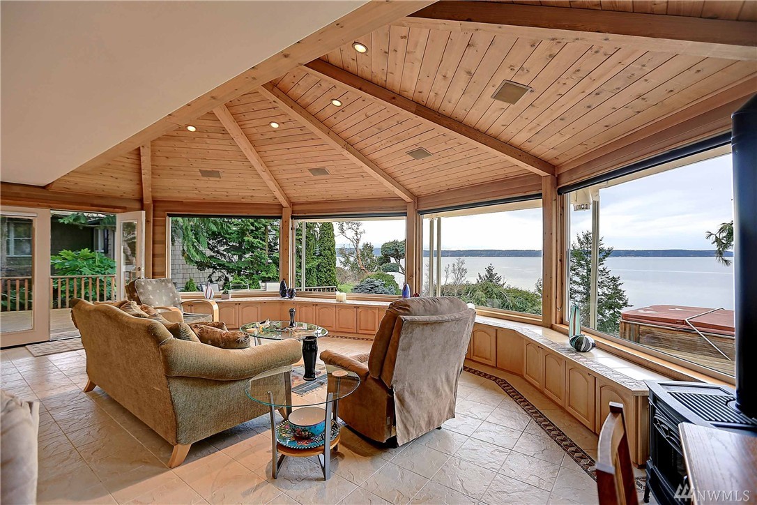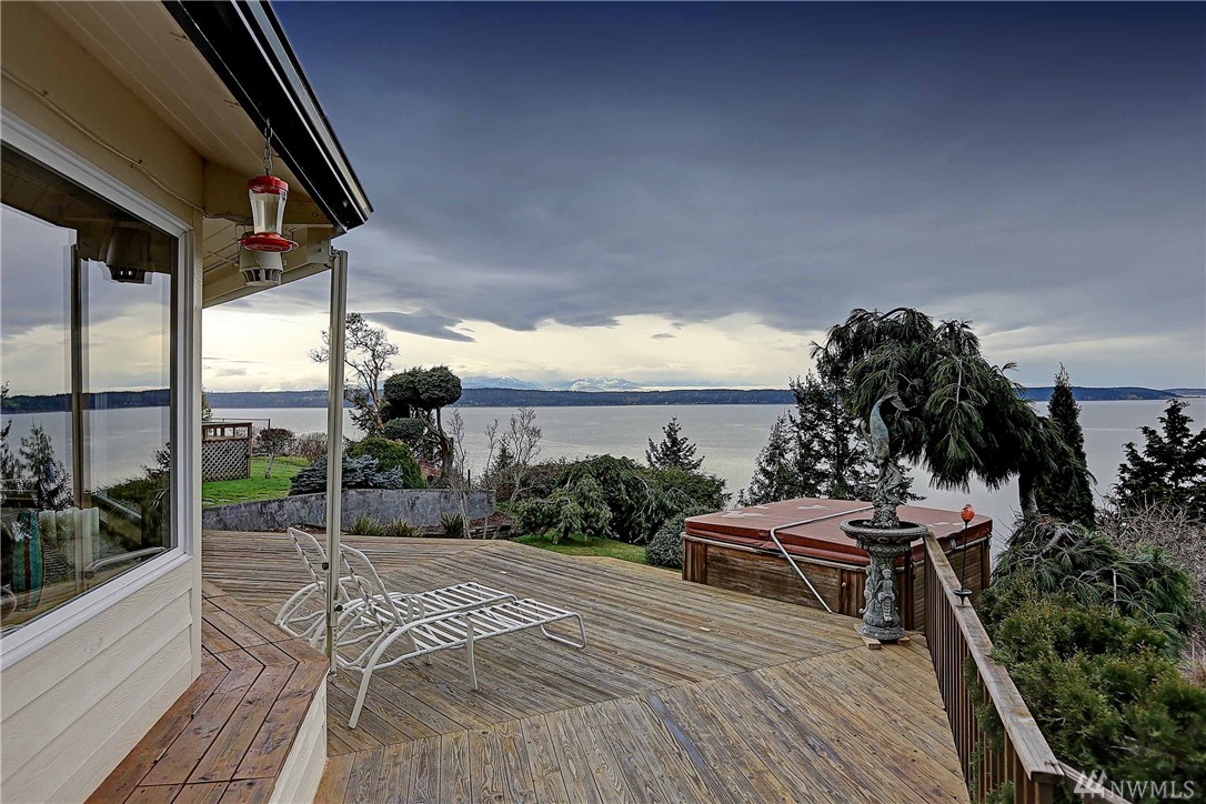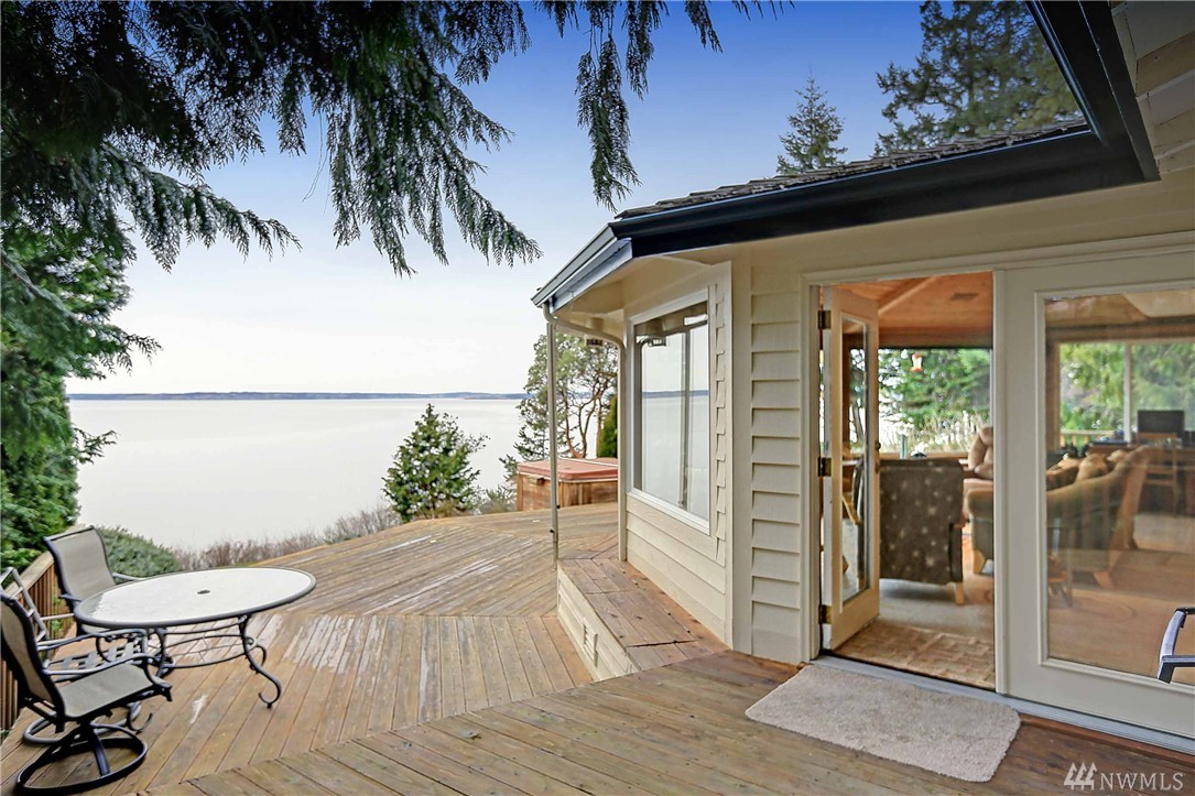 Enjoy the breathtaking views of Puget Sound & Olympic Mtns from this high-bank waterfront home. West facing windows takes full advantage of the view! This home has been completely updated, beautiful kitchen w/built in wine cooler, granite counters, & gas stove. Exquisite finishes including built-in cabinets for storage, custom glass doors, vaulted ceilings, & beautiful porcelain tile thru out. Spacious multi level deck, perfect for entertaining & relaxing! Private setting on N. End of Camano Is.