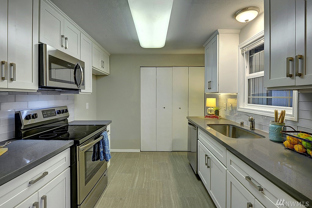 Like new 2Bd/1Ba duplex rambler condo in Everett's Hidden Lane community! Updated condo features all new: kitchen w/custom cabs, quartz slab counters & stainless appliances, designer tile in kitchen & bath, craftsman door & millwork pkg, wood laminate floors throughout living & bedrooms, updated plumbing & electrical trim & more! Other features include fully fenced backyard & 2 storage sheds. Great Silver Lake location is just minutes from Boeing, I-5, I-405 and the Silver Lake Shopping Center.