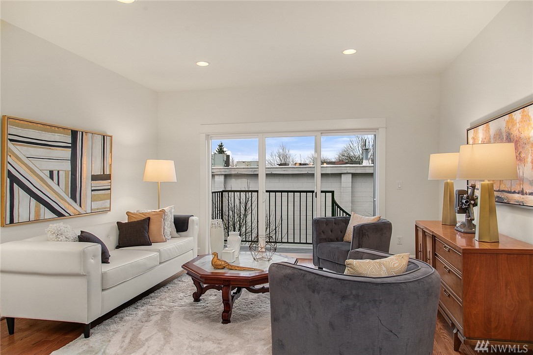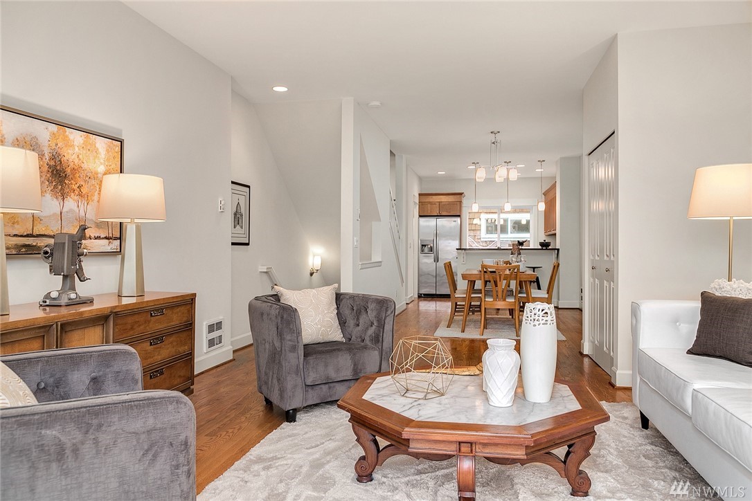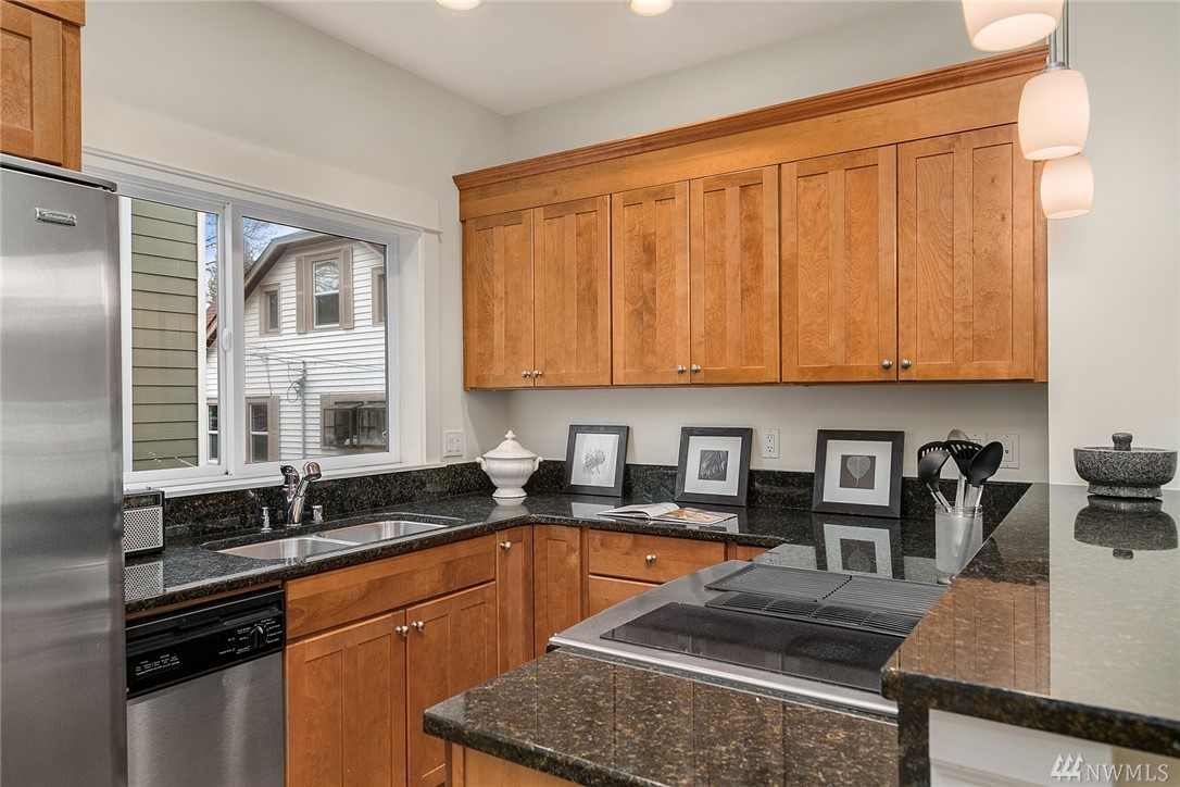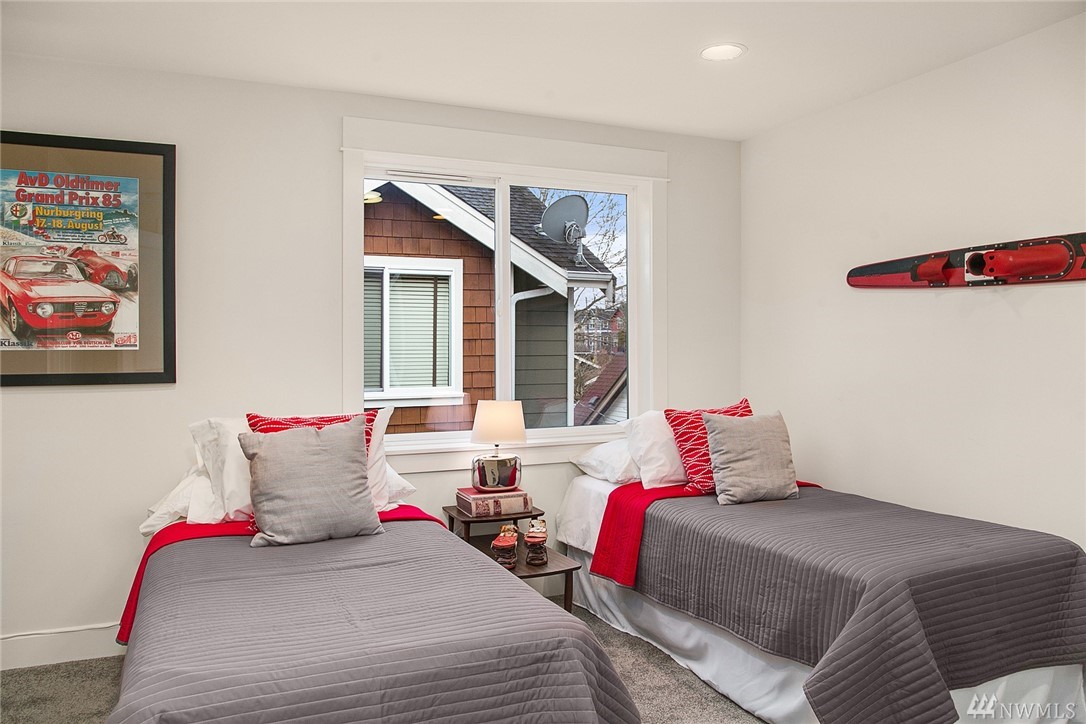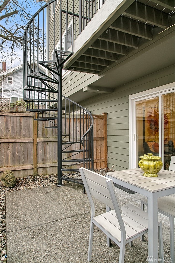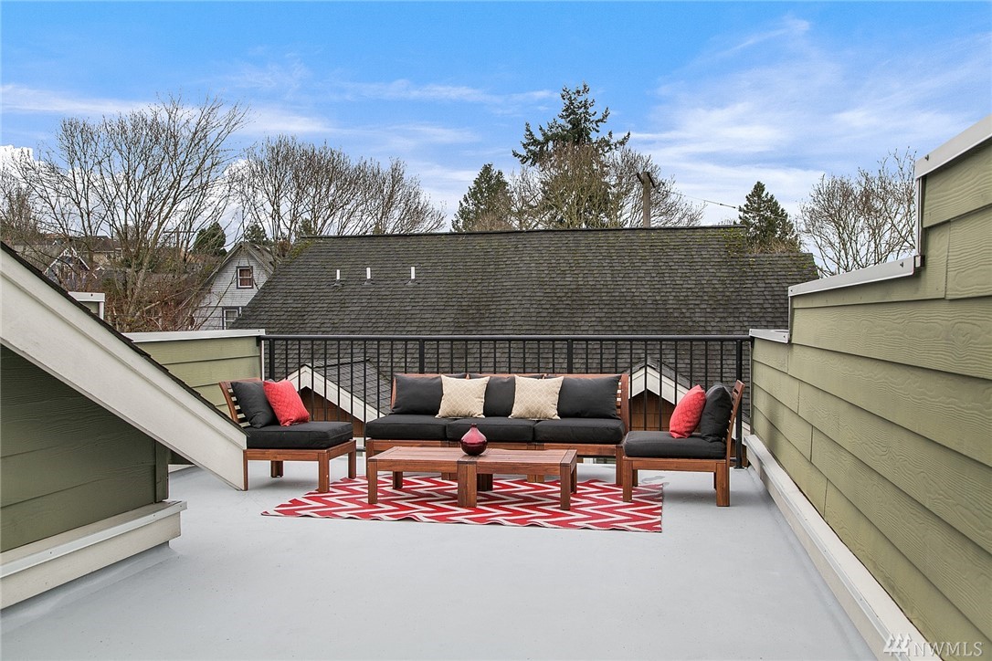 Situated on a tree-lined street in Seattle's historic Madrona neighborhood just blocks from shops, cafes & Farmers Market. This 2 BR/2.25 bath home boasts 1425 sf of spacious living plus sprawling private rooftop deck, spiral exterior staircase to patio, bonus room. Large master suite with vaulted ceiling. All new interior paint & carpet. Hardwood floors, slab granite counters, stainless appliances. Awesome soundproofing! Full garage. Easy commute to DT & UW. Only .6 miles to Lake Wa.