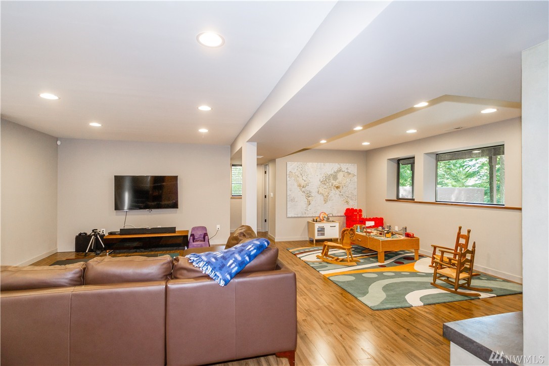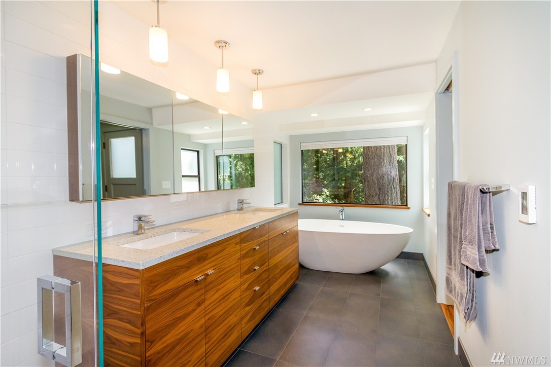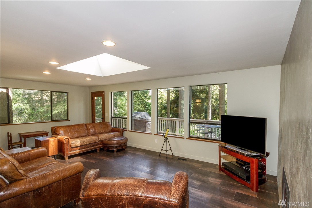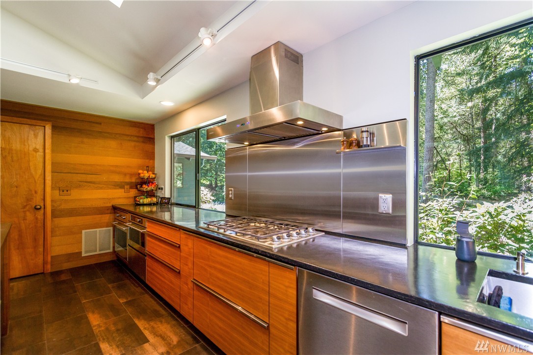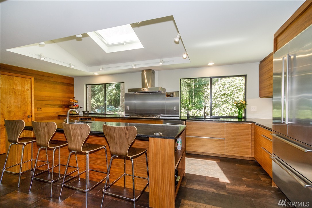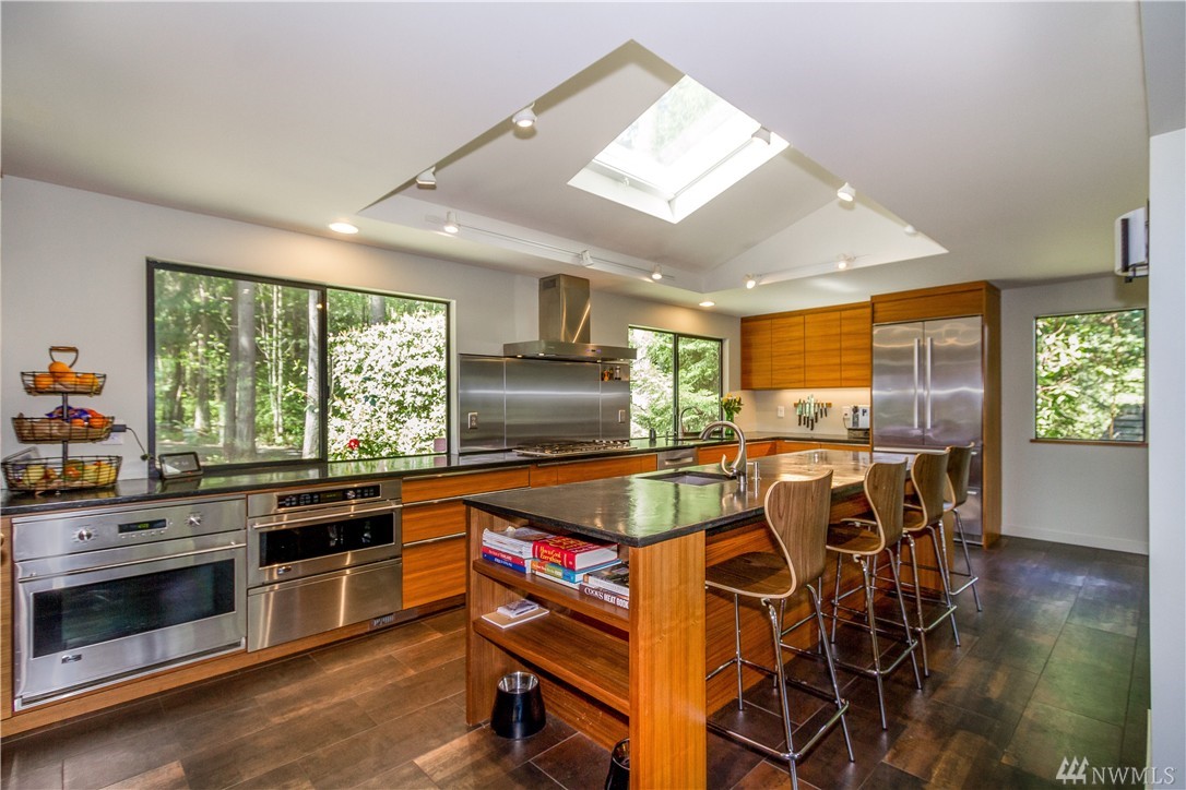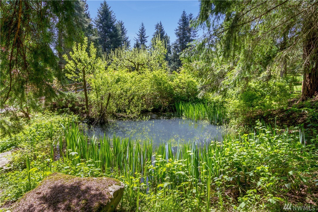 Gorgeous remodeled, daylight rambler, nestled on a tree-lined private lane. Nearly an acre, this Cougar Mountain retreat features a seasonal creek, pond, fruit orchard, flowering trees & evergreens. New high-end kitchen w Henrybuilt cabinets, Liebherr, & Monogram appliances, porcelain tile & bamboo flooring. 3 bedrooms on main + 1 bedroom with 3/4 bath on lower level (New 3 bedroom Septic system installed), bonus rm, 2.75 baths, 3 FPs. Truly an incredible home in an enchanting paradise setting.