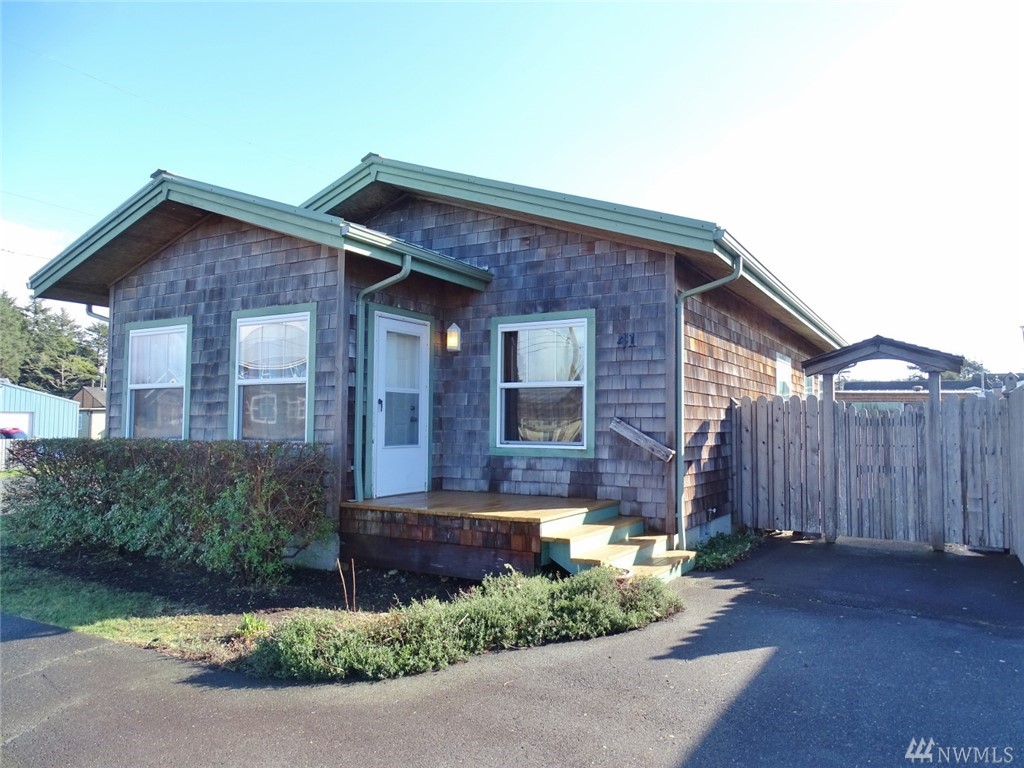 1 OWNER! This Home was built in 2003 and located a short distance to the Ocean in the Quaint Downtown of Pacific Beach! Located at the CORNER of Central Ave and 3rd St S. w/ a pull-thru Asphalt Driveway and a landscaped yard. It features 2 BD, Office/Entry Area, 1 BA, 1044 ASF. Solid Wood Doors, Vaulted Ceilings and Laminate Flooring thru-out (vinyl in the BA). Great Room design w/ a Propane Fireplace & 2 sliders to the Rear Deck and Backyard. Metal Roof. Want income?...rent out nightly/weekly.