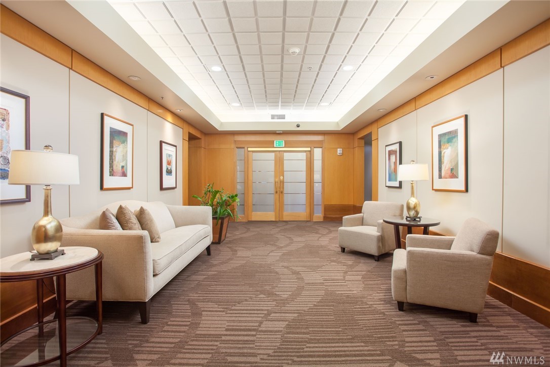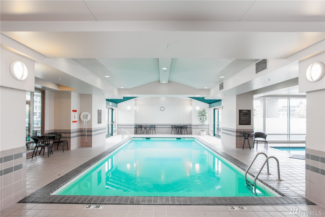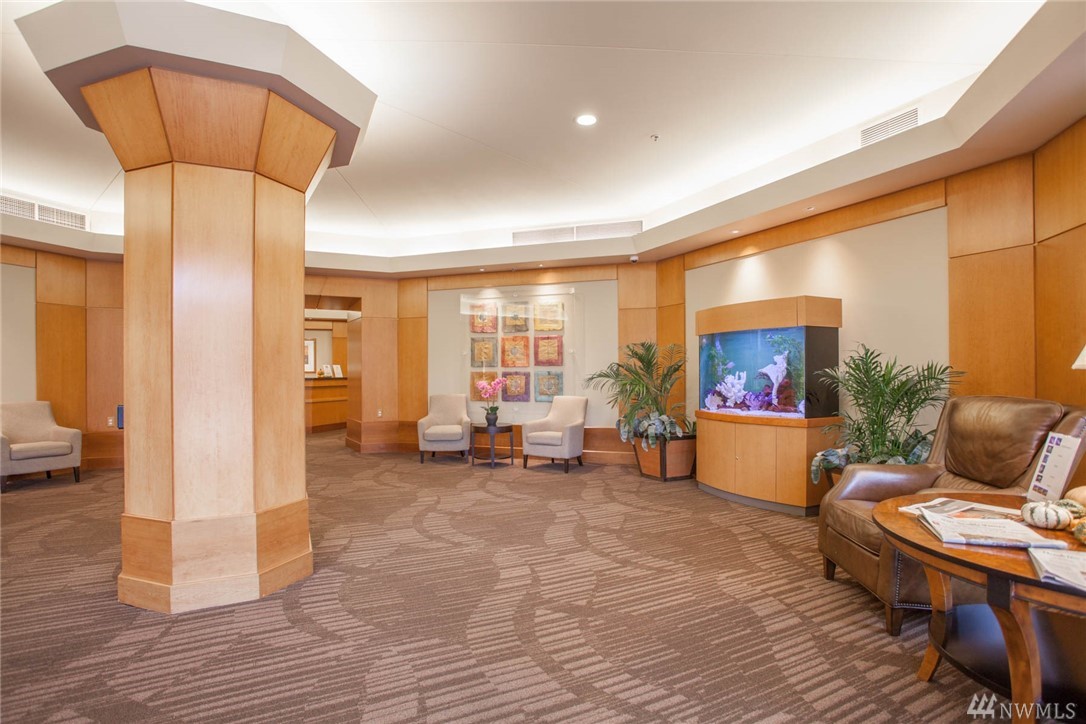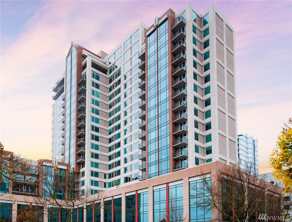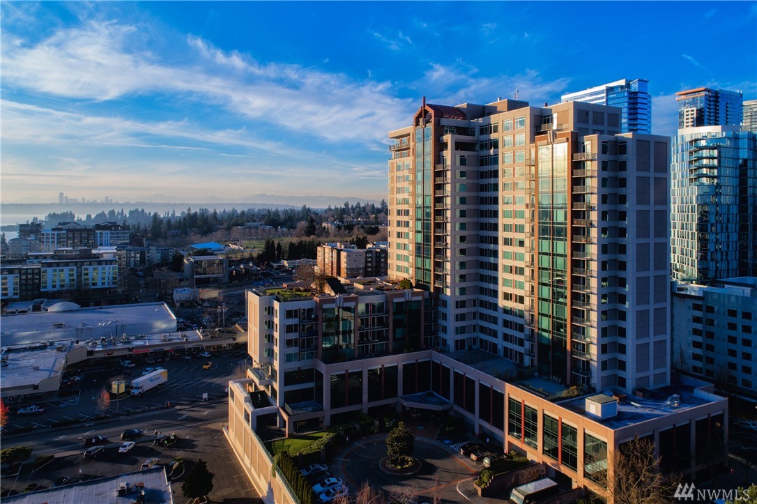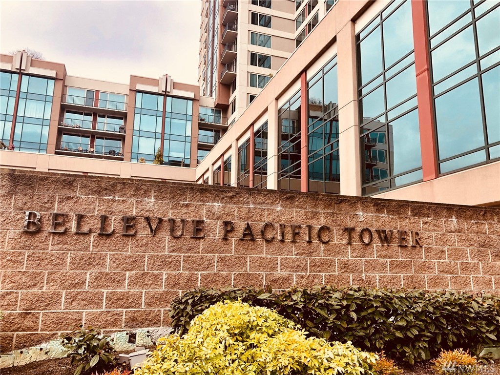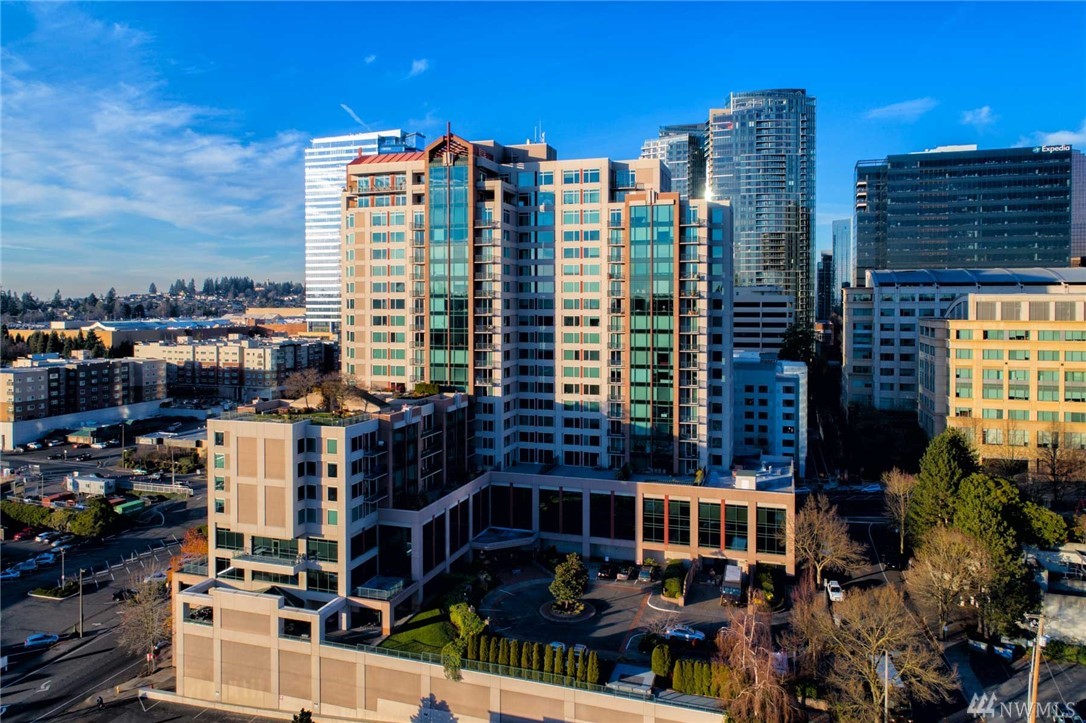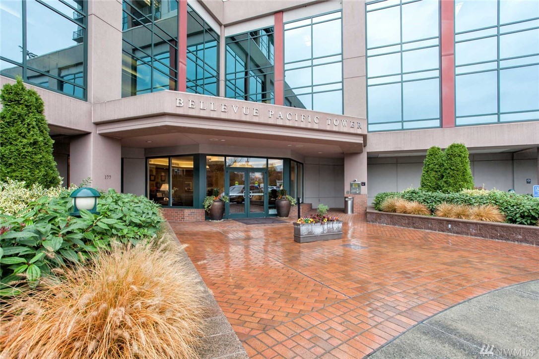 Handsome 7th floor large efficiency w/attached terrace! Bright & spacious this home has a large terrace, full bath and spacious kitchen. Bellevue Pacific Tower is like no other w/24 hr concierge & resort quality amenities - fitness center, indoor pool, sauna, banquet room & 11th floor rooftop deck w/grassy view patio overlooking Lake Washington & Downtown Bellevue! Low HOA includes cable, heat/central AC, water/sewer, garbage - No rental cap & incredible investment opportunity!
