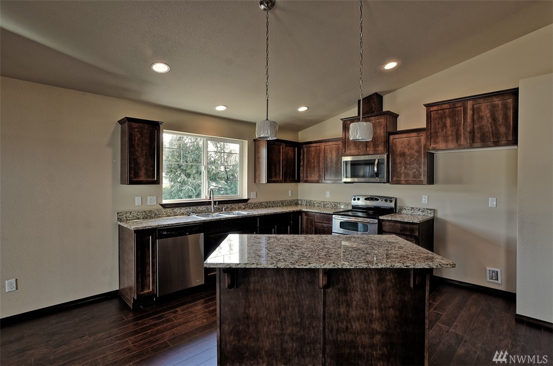 New construction in Arlington on 1/2 acre +! Great location close to all amenities. Primrose floorplan ~ 3 bedroom rambler. Features include ~ Granite slab in kitchen/bath counters with tile backsplash, maple cabinets with crown molding stainless & black appliances. Master with walk-in closet & 5 piece BTH, gas F/P, hardwood flooring thru living areas, Hemlock craftsman style molding & 2 panel interior doors. HUGE existing detached shop for all of your future projects!!! And a mini orchard too!